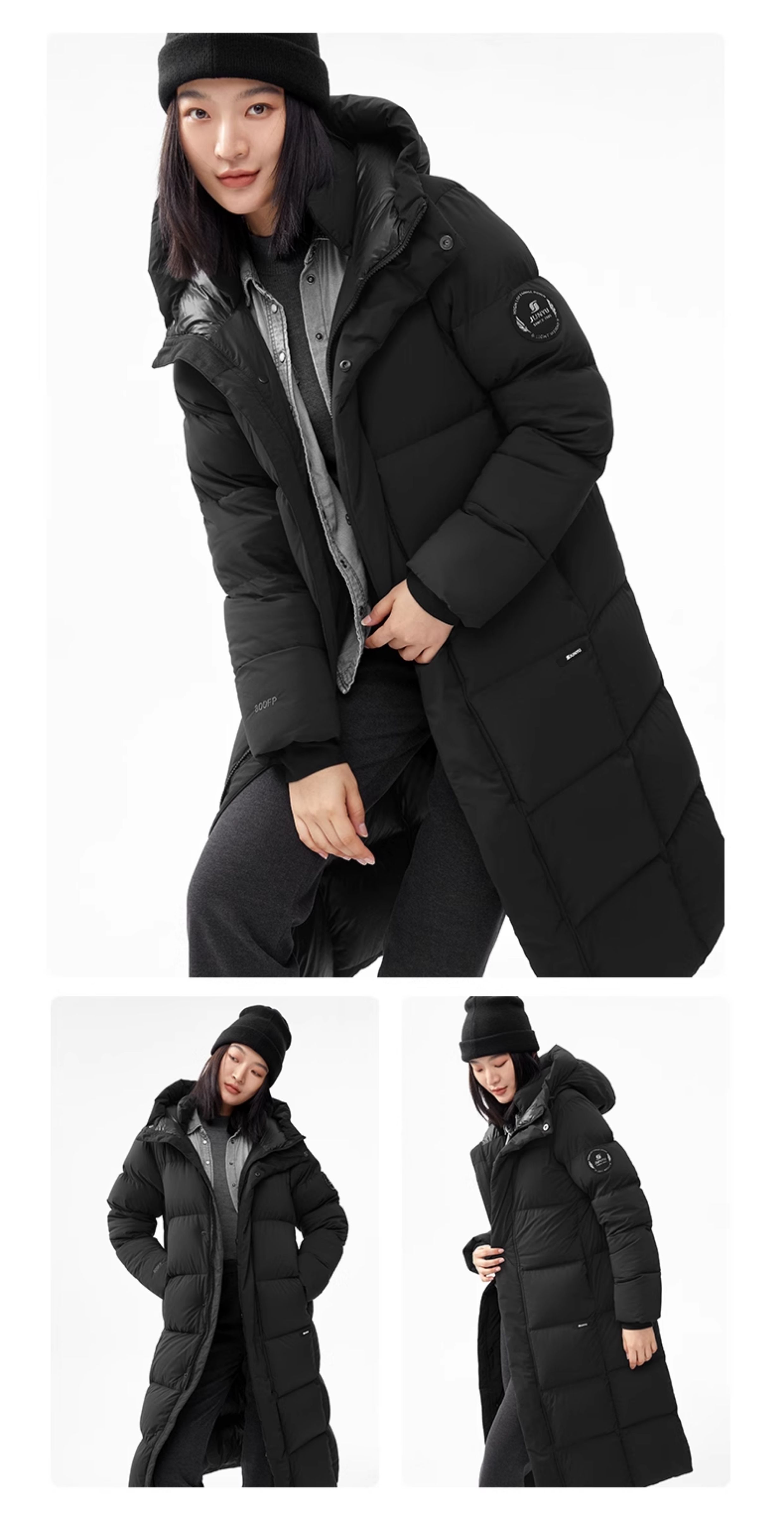 Junyu 800 Fill Power Goose down Jacket for Women, Over-The-Knee Long Style, Winter Thickened Cold-Resistant Warm Goose down Jacket for Men H52295