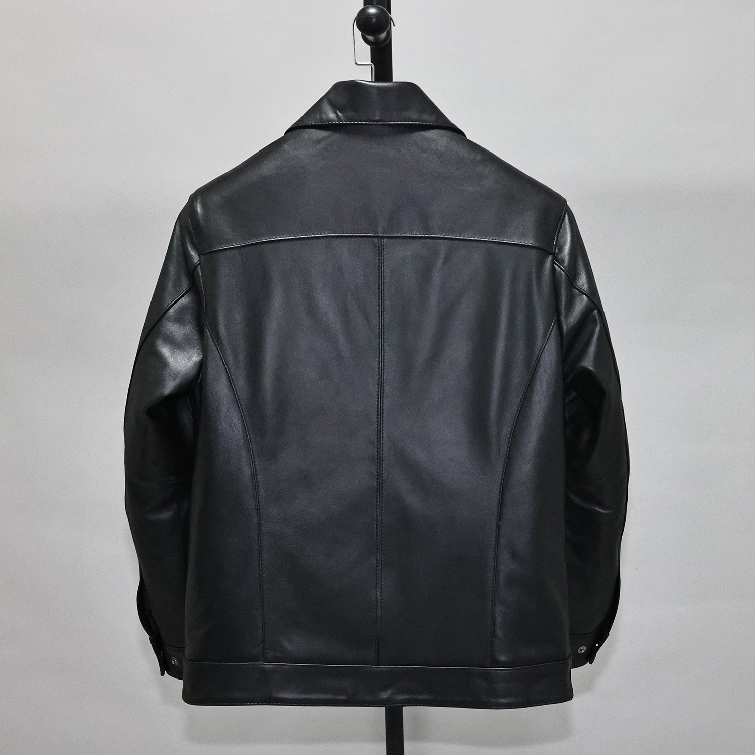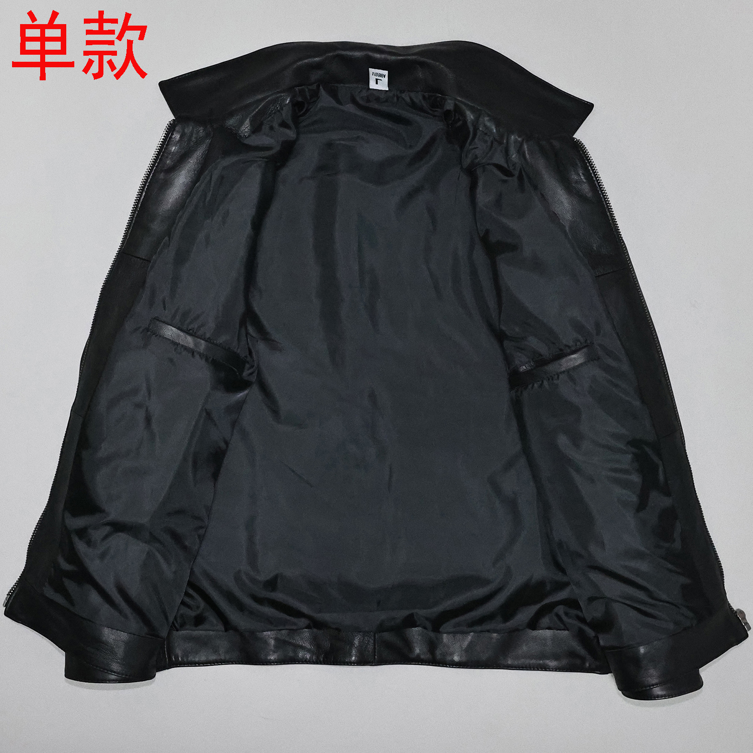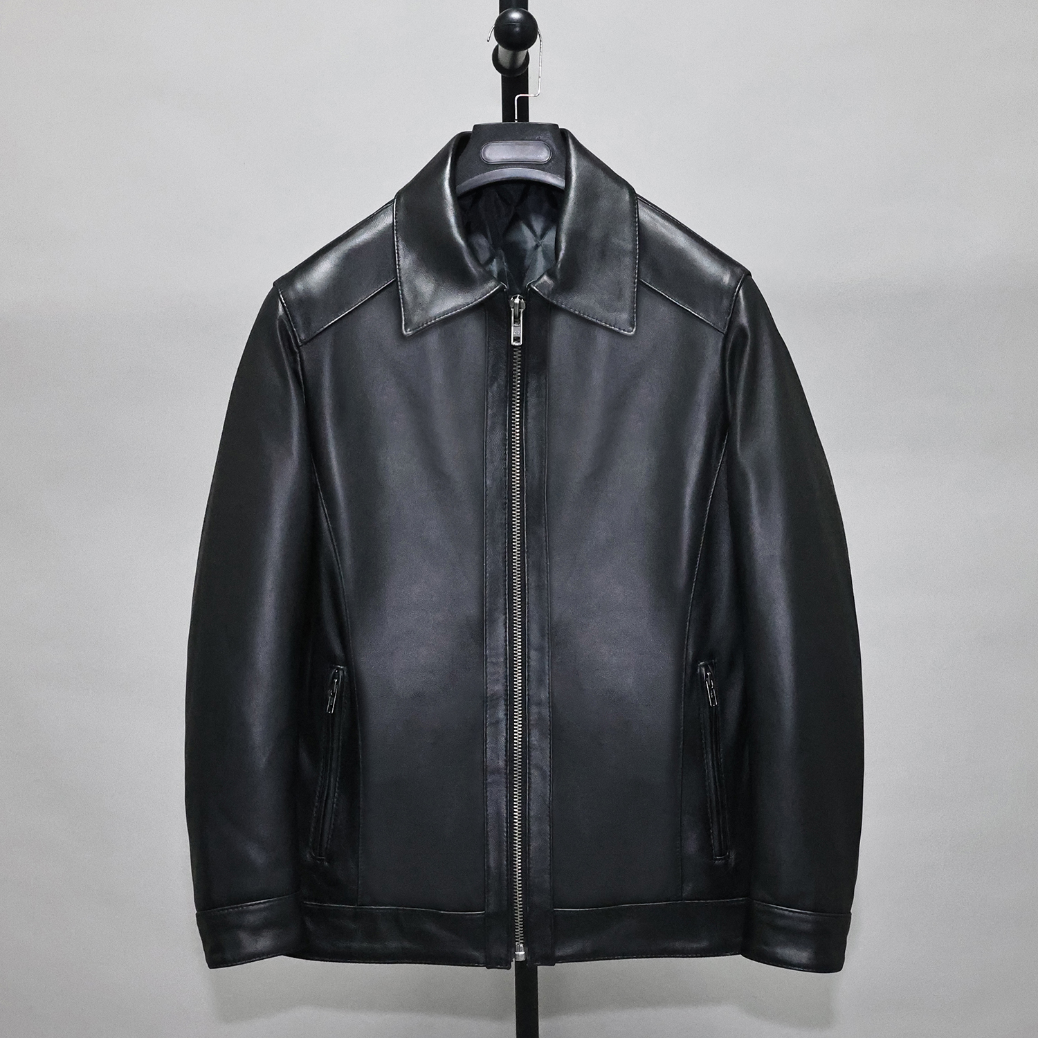 Soft First-Layer Sheepskin Leather Jacket for Men, Extended Length, Turn-Down Collar, Casual, Simple, Business-Style, Nylon Jacket