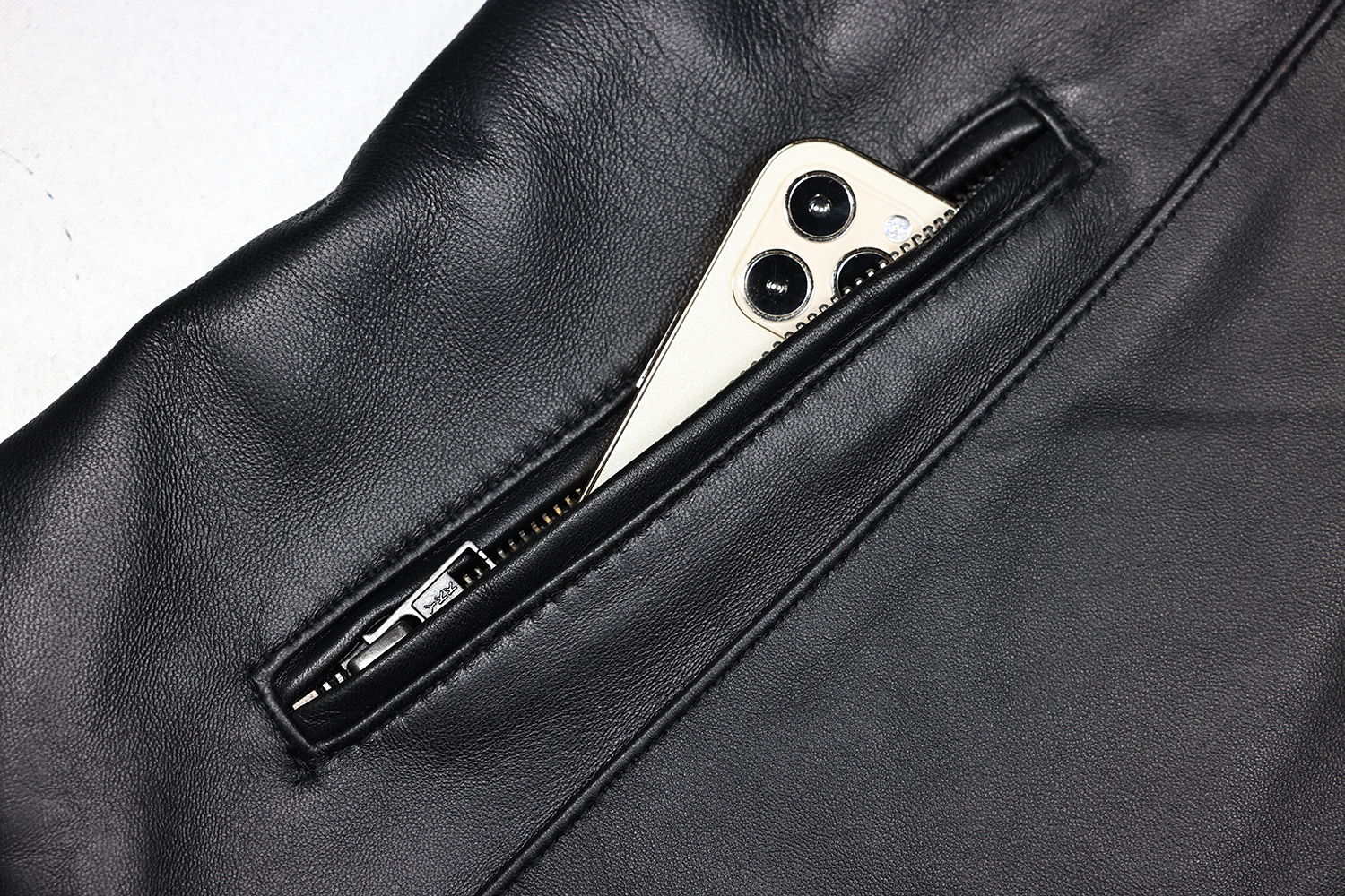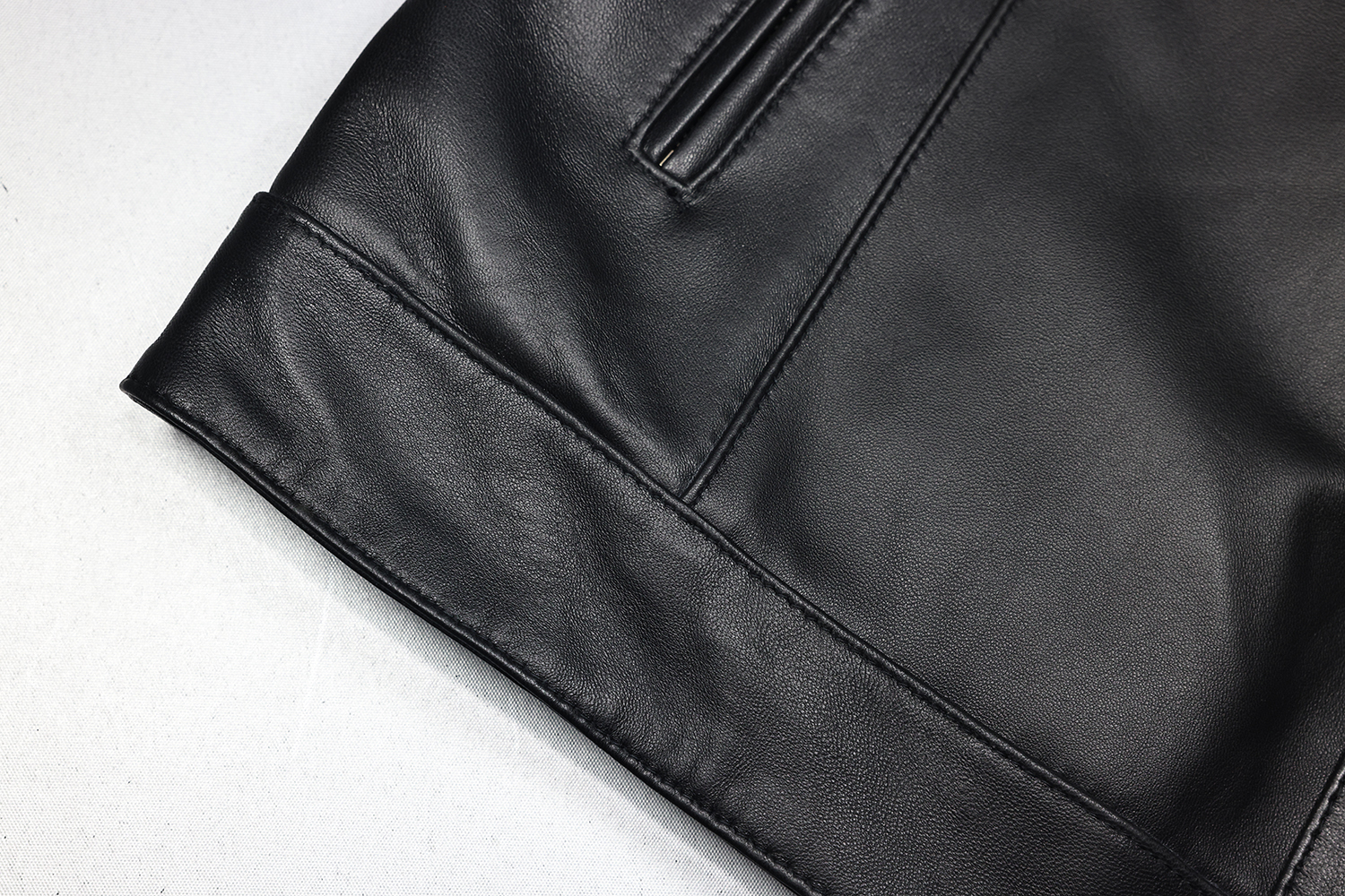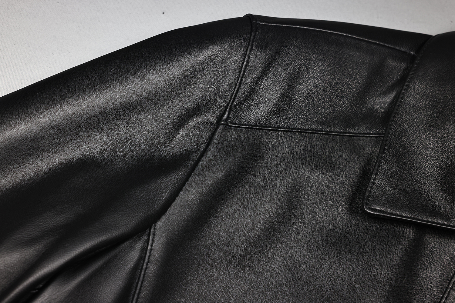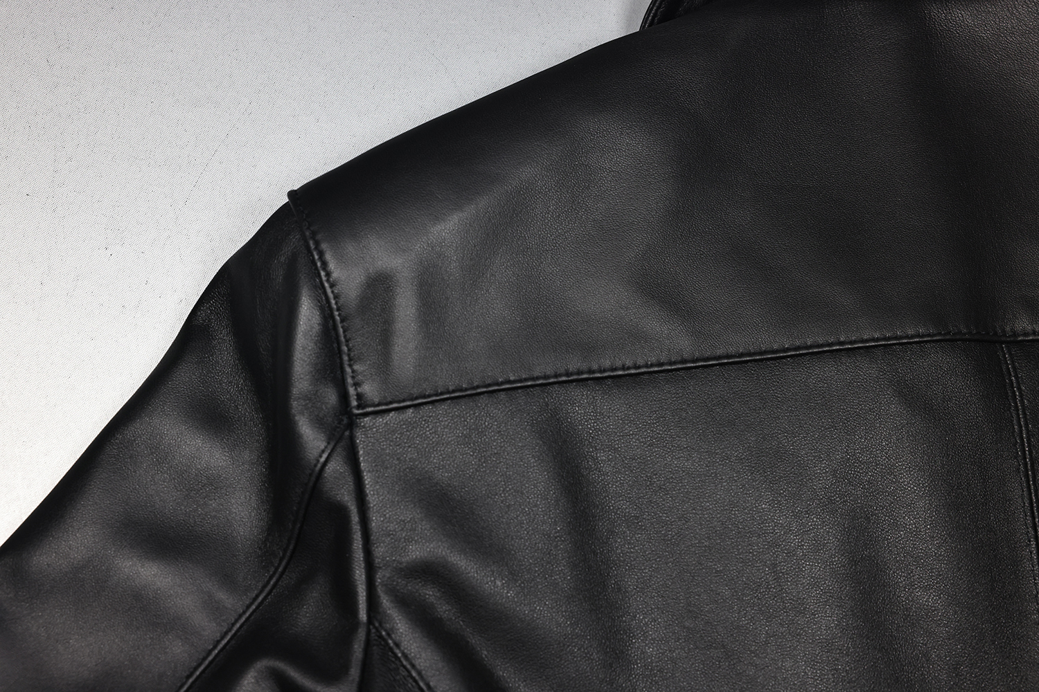 Soft First-Layer Sheepskin Leather Jacket for Men, Extended Length, Turn-Down Collar, Casual, Simple, Business-Style, Nylon Jacket