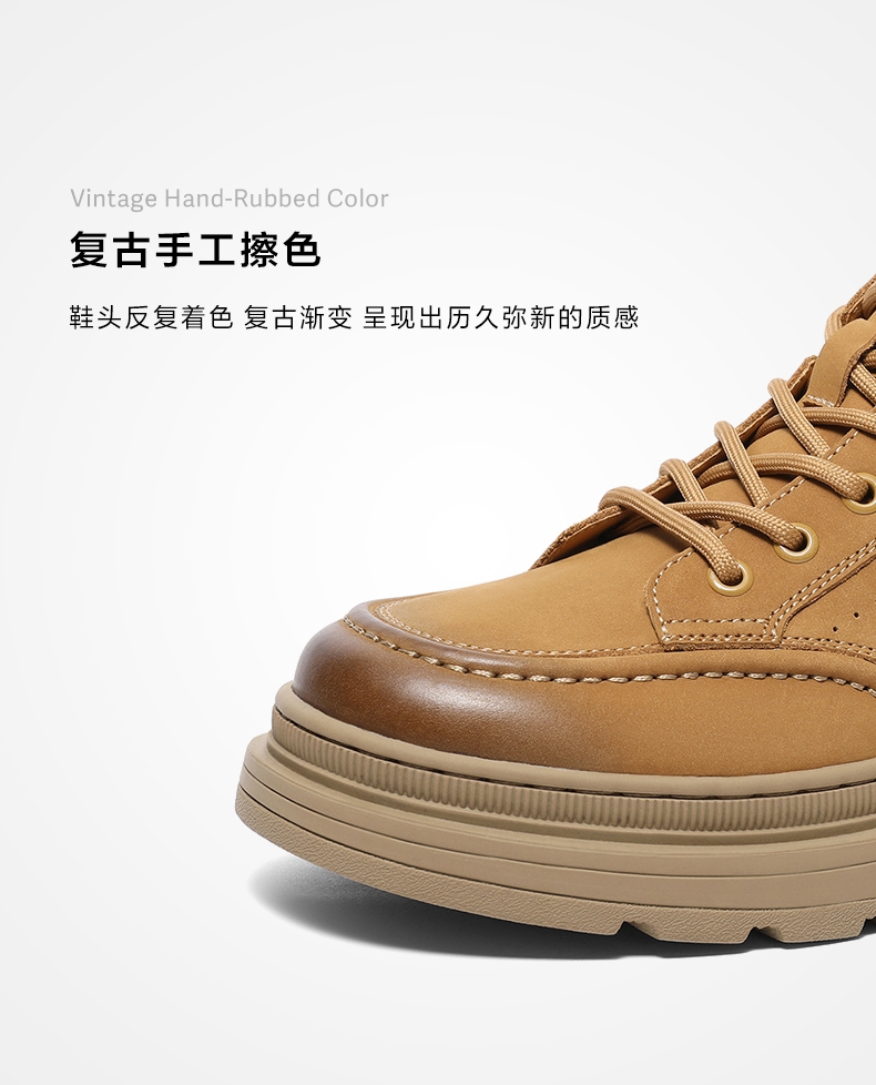 Belle Men's Shoes, Fleece-Lined Casual Shoes, Genuine Leather, Thick-Soled Height-Increasing Martin Boots, High-Top Sneakers, Short Boots A1332Dd3