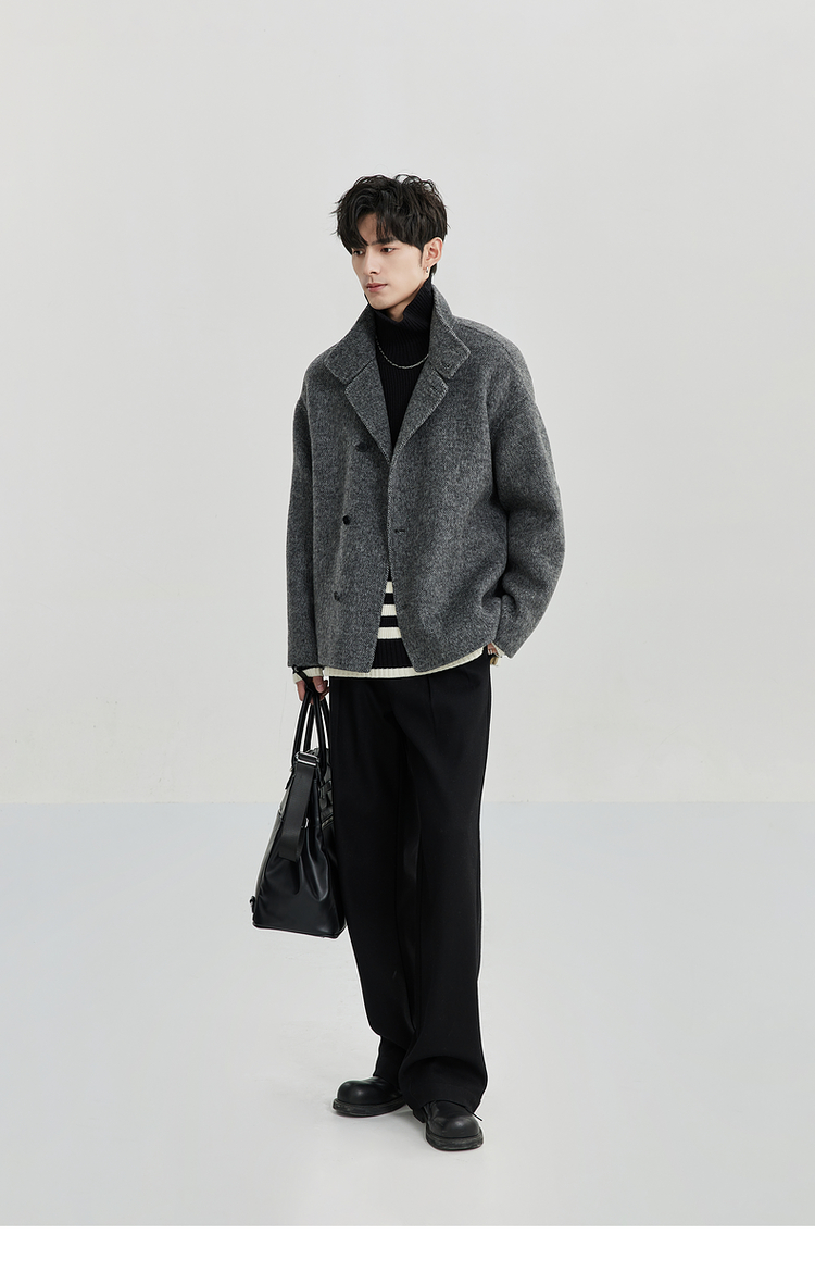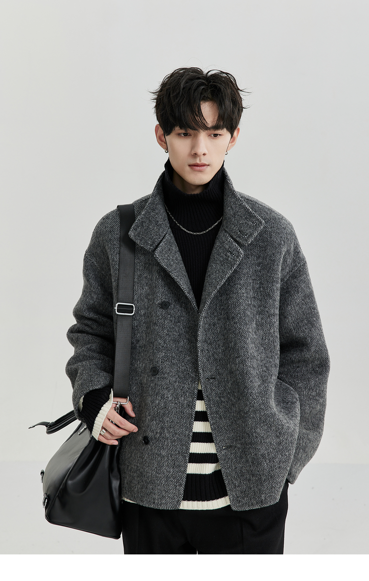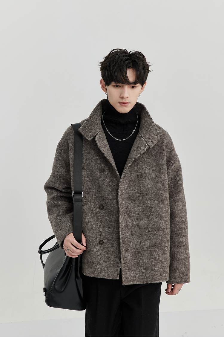 Bjze Men's Winter High-End Wool Double-Sided Jacket with Large Lapel Design, Non-Cashmere Short Coat