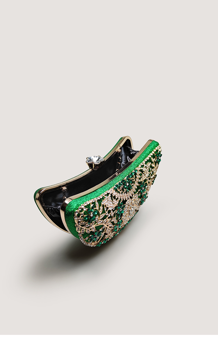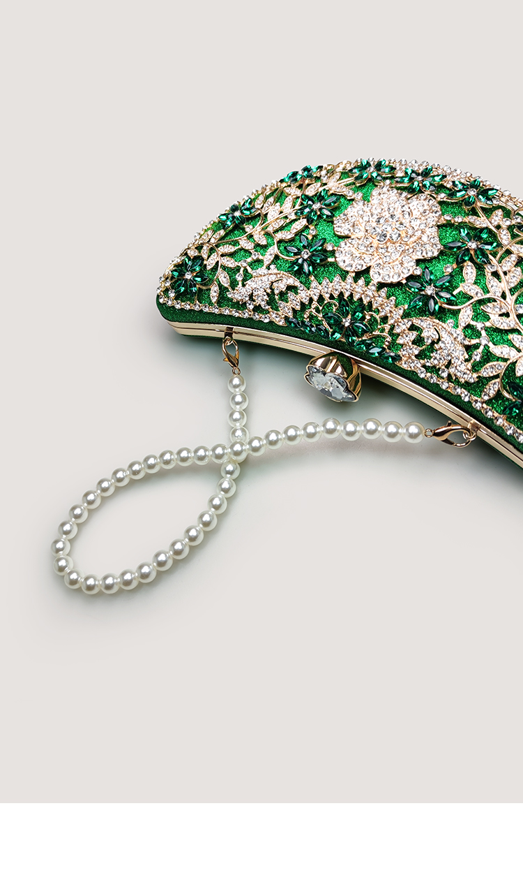 High-End Glitter Green Diamond-Encrusted Banquet Clutch Bag, Light Luxury Evening Dress Decoration, Hollow Flower Bag, Cheongsam Handbag
