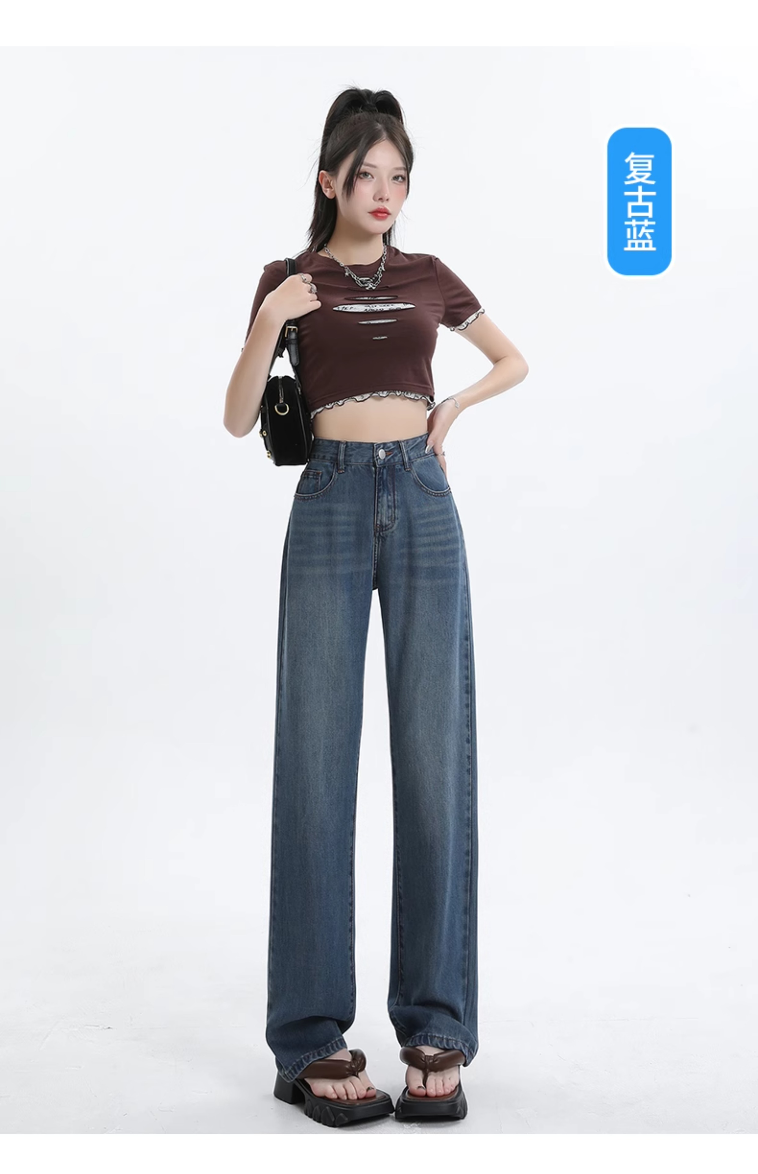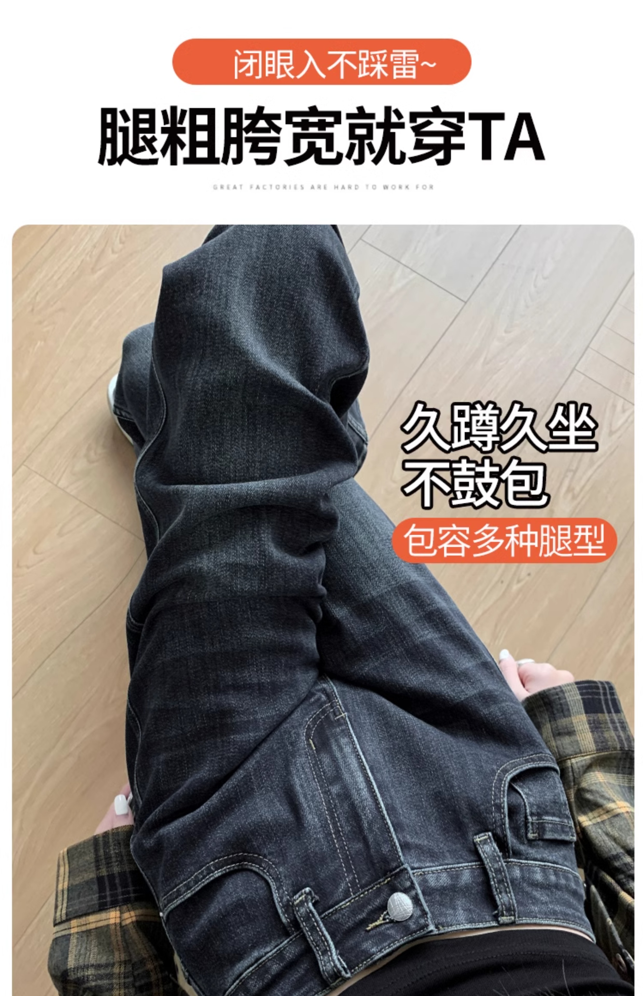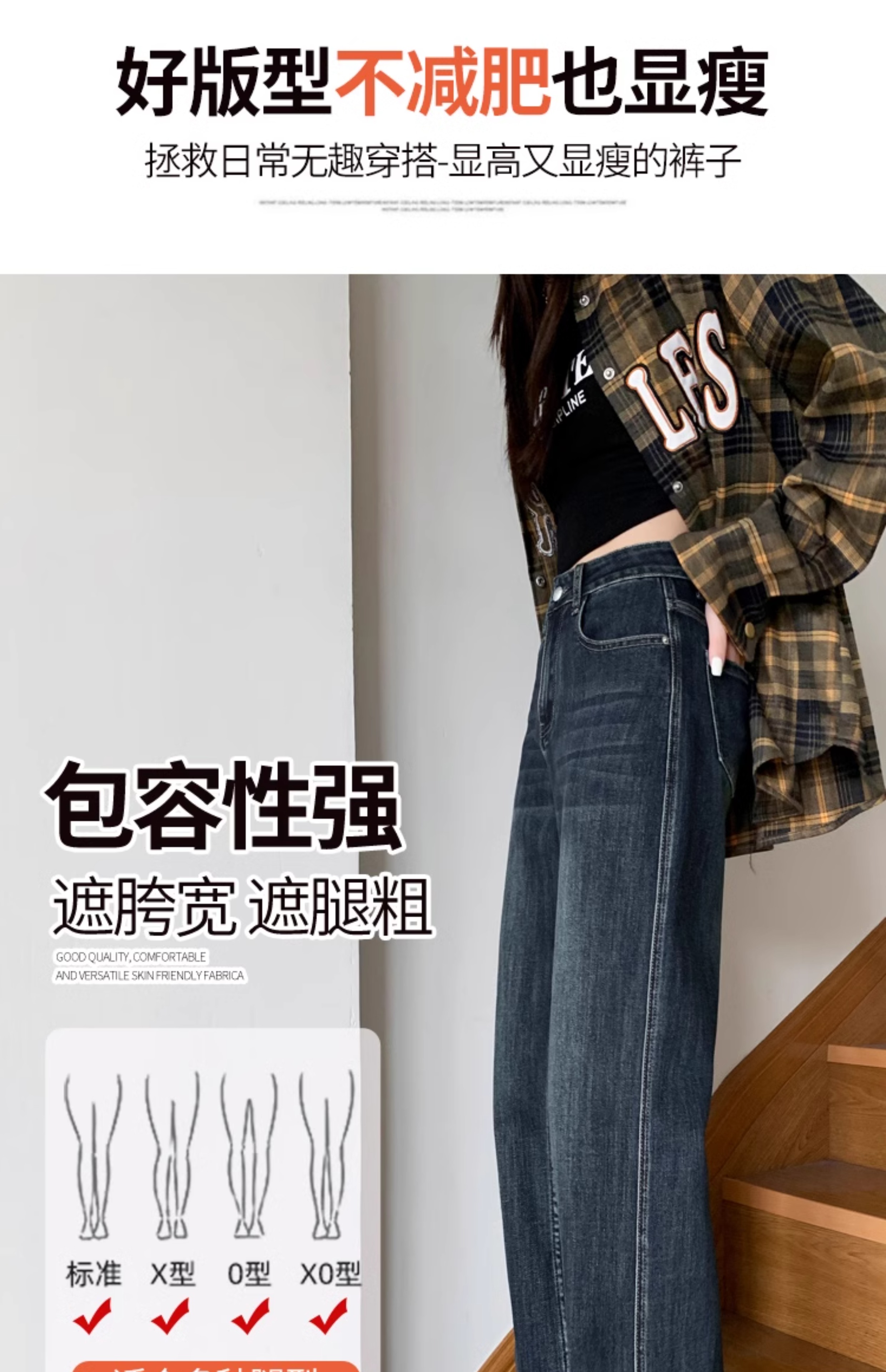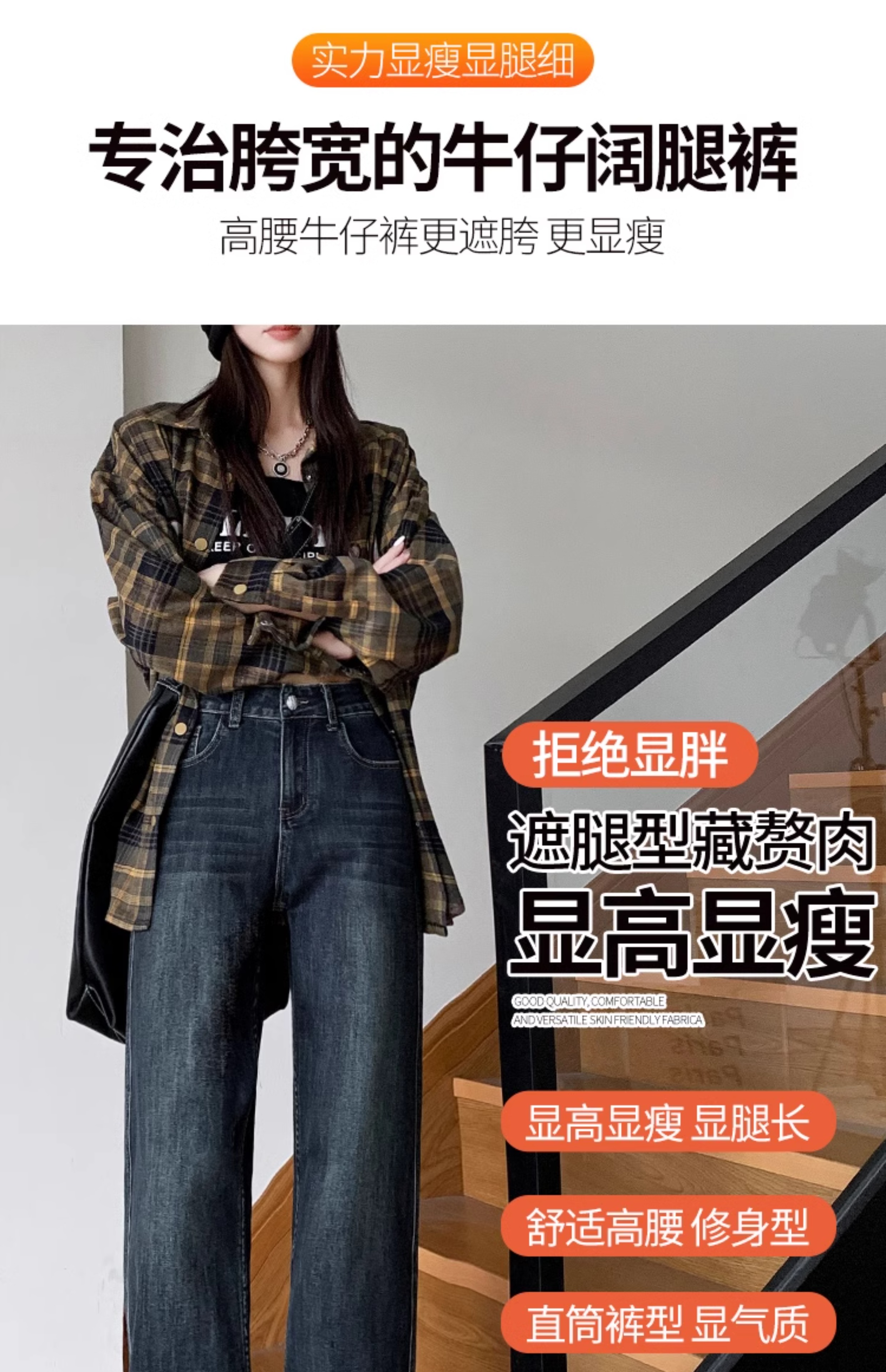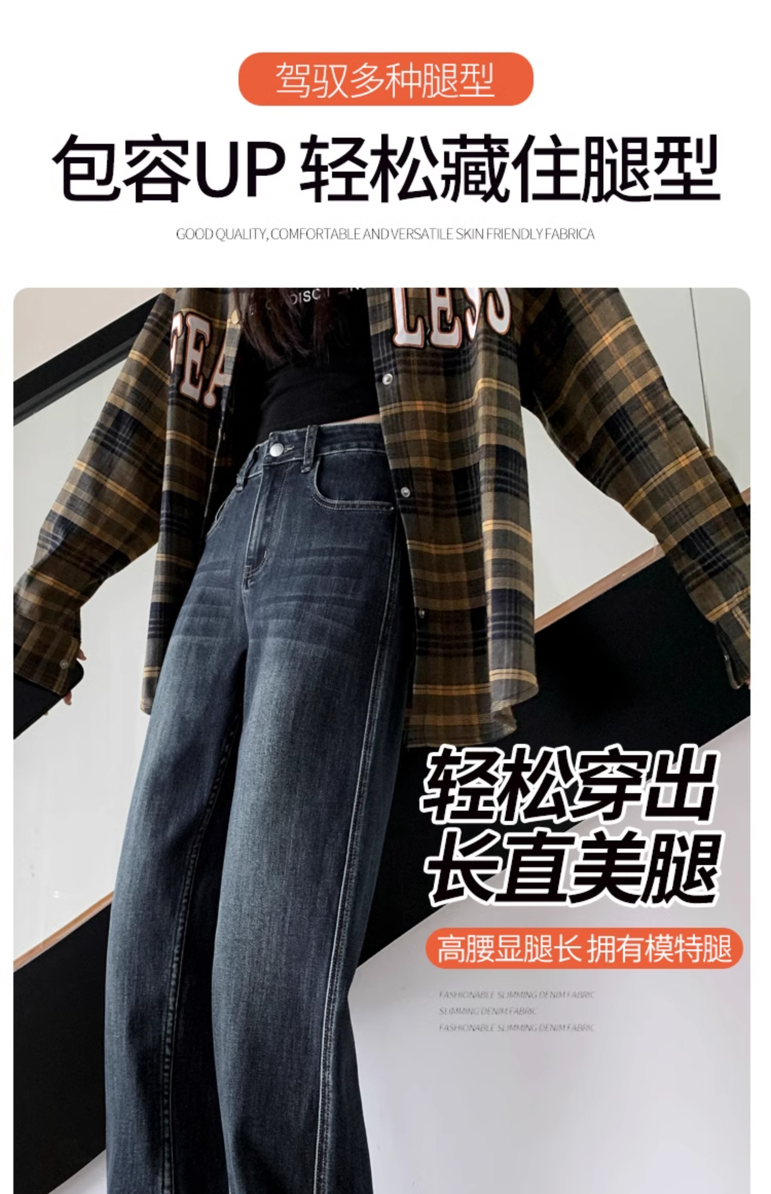 Long Denim Pants for Tall Women, Straight-Leg Pants with Fleece Lining, 2025 New Style, High-Waisted, Floor-Length, Narrow Wide-Leg Pants