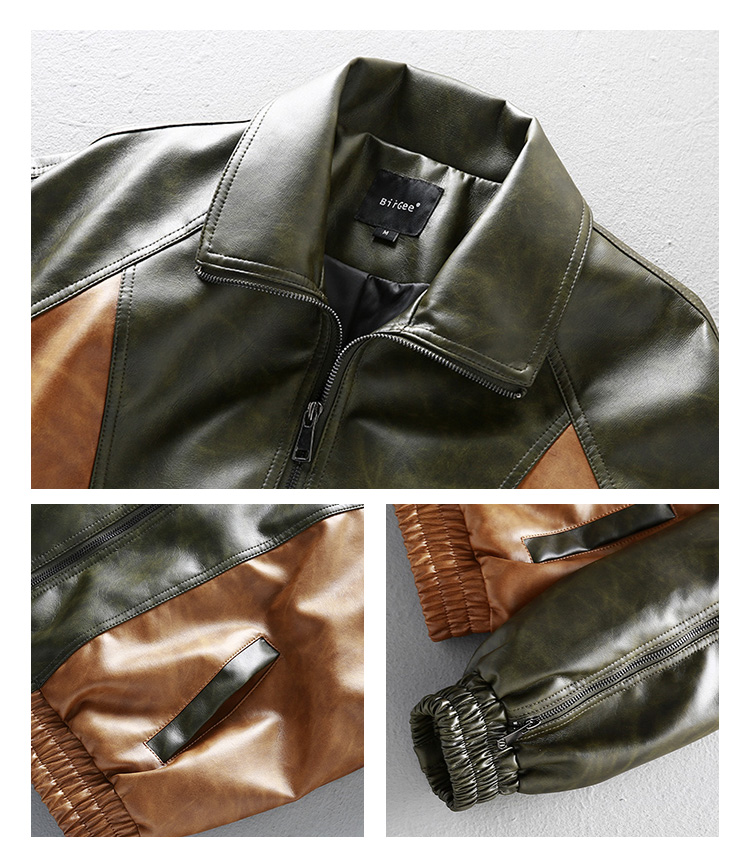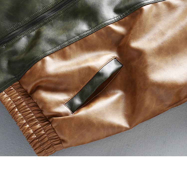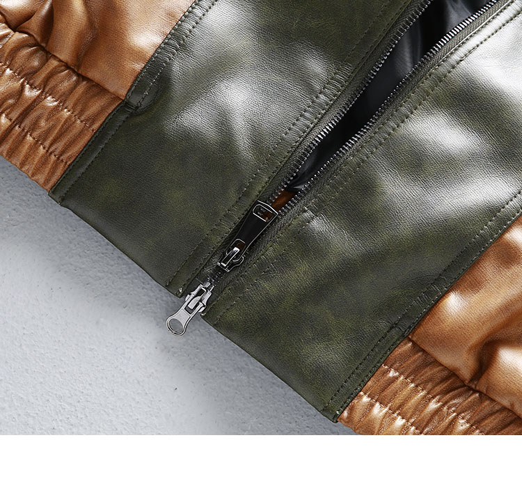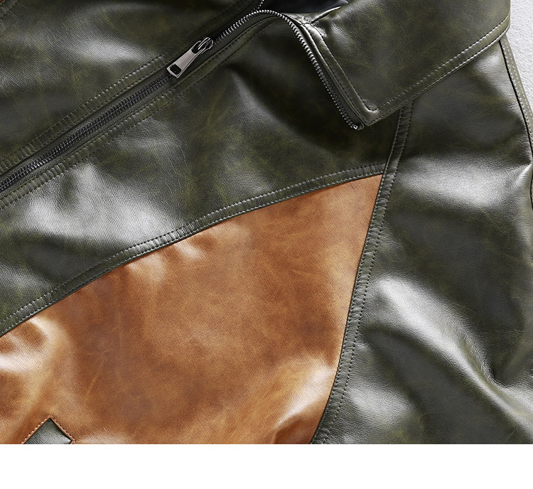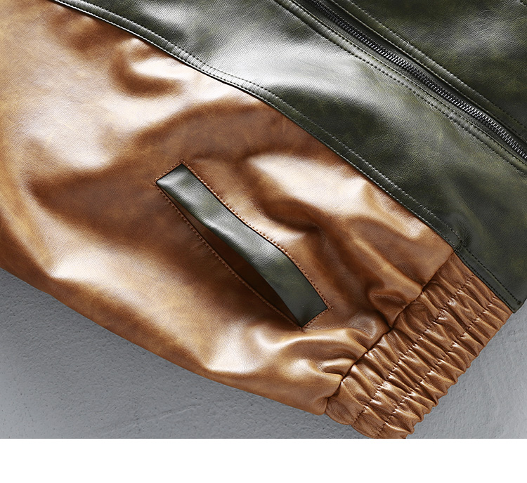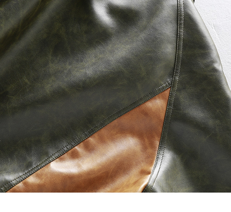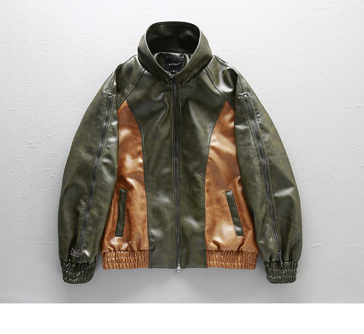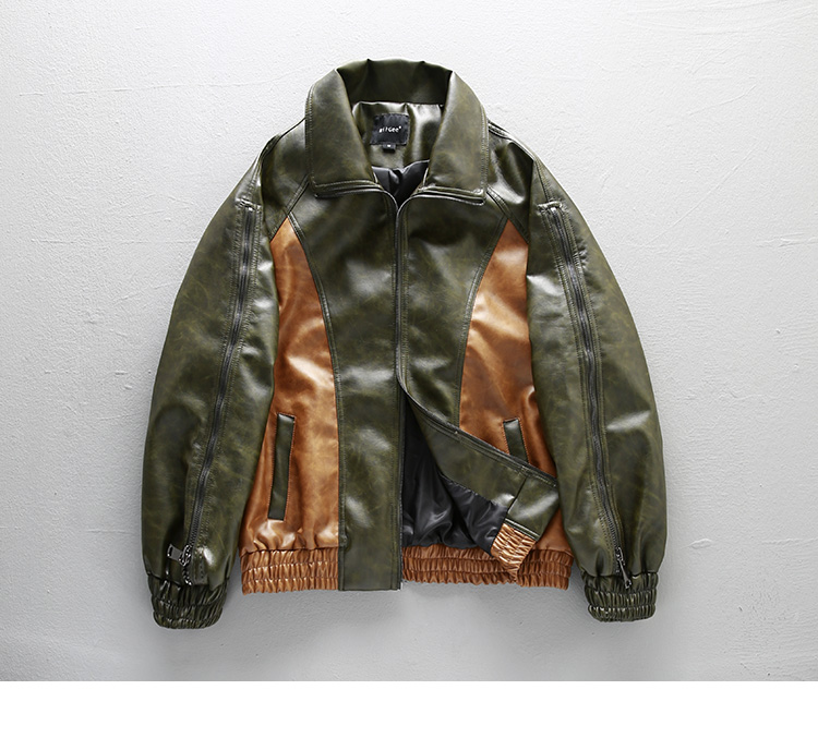 [Special Offer] American Retro Color-Block Patchwork Loose Leather Jacket Men's Motorcycle Style Handsome Pu Leather Jacket Coat