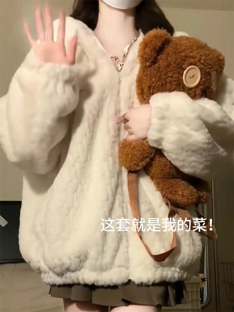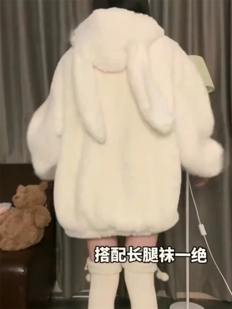 Soft and Fluffy Hooded Cotton Coat with Bunny Ears for Women, 2025 Winter Plush Thickened Lamb Wool Jacket