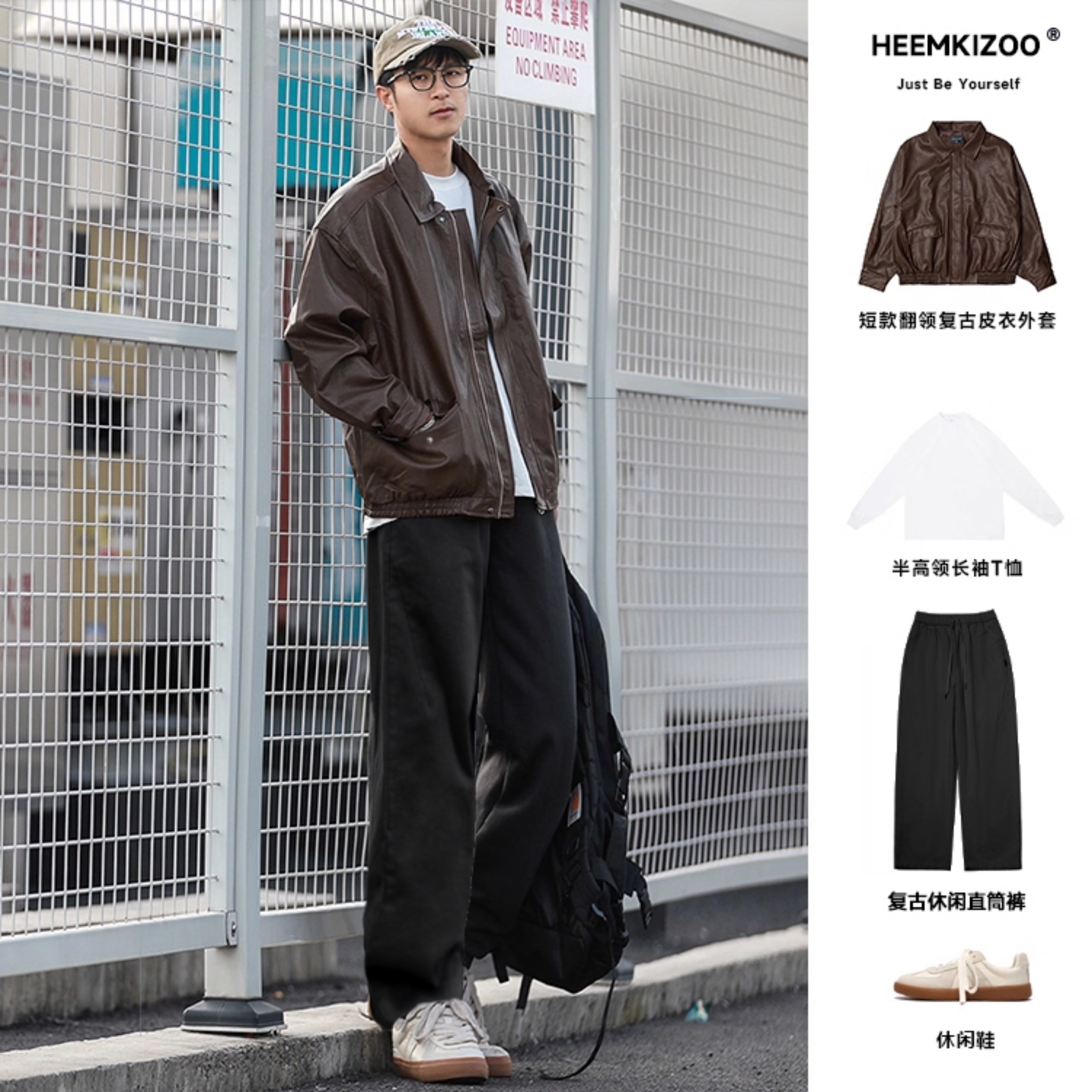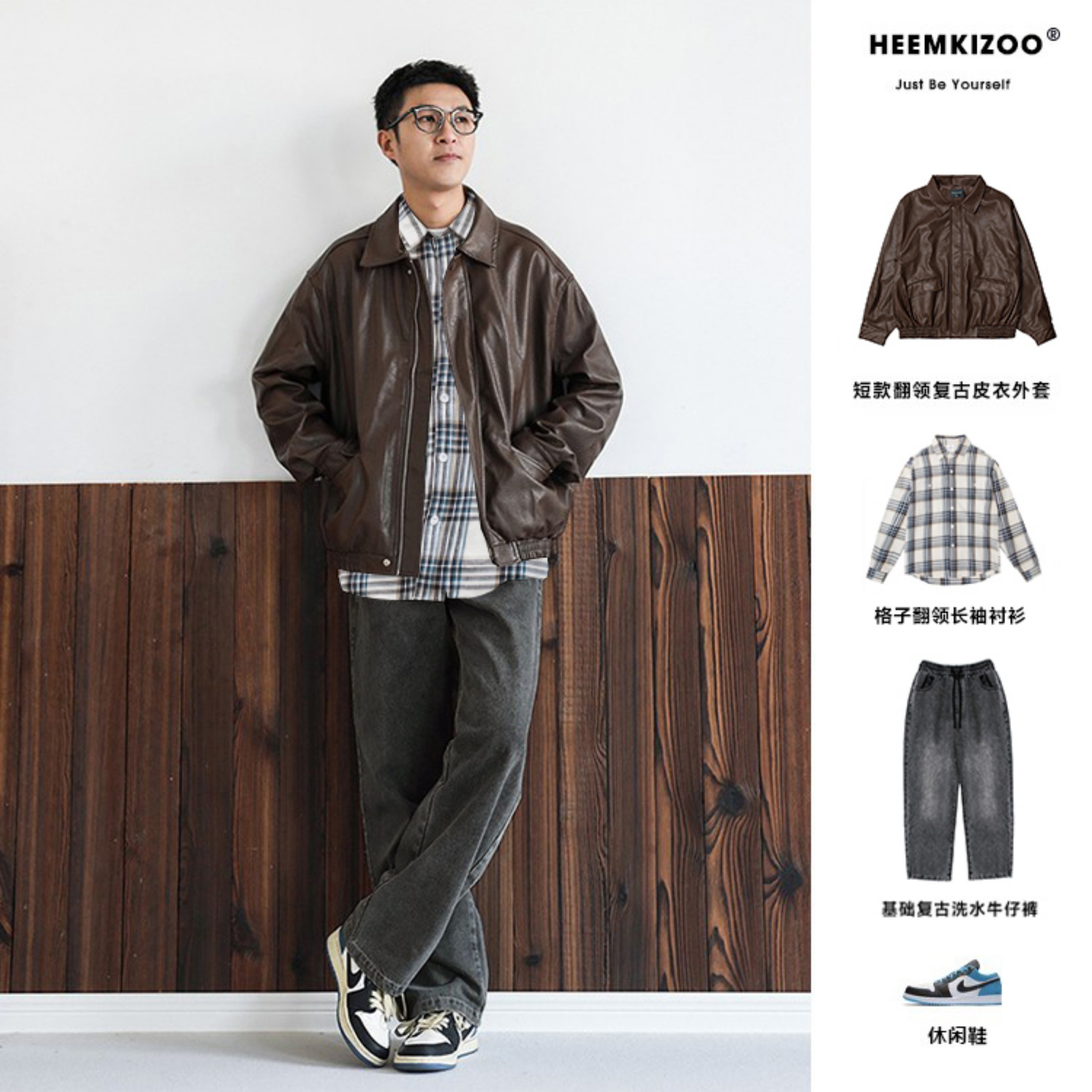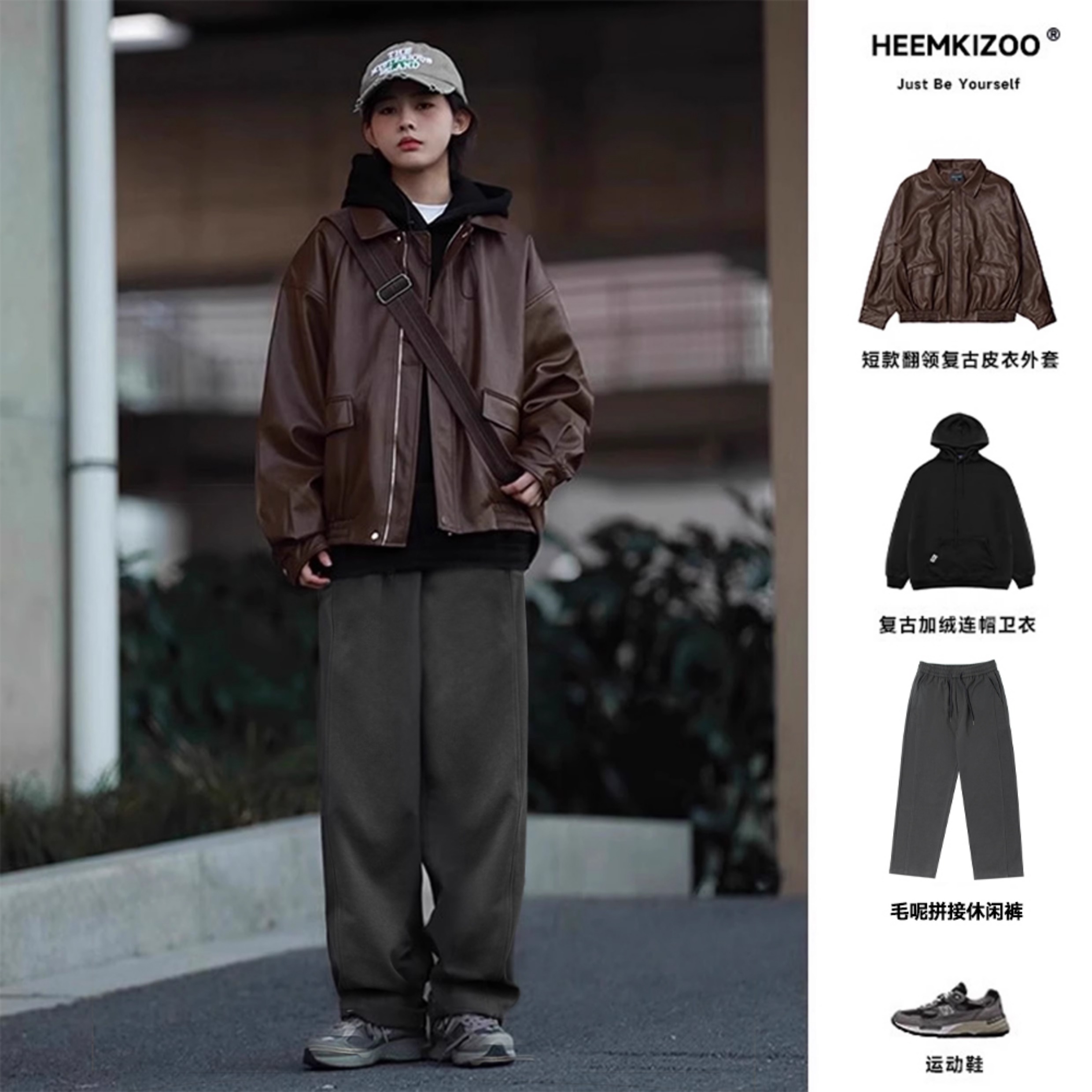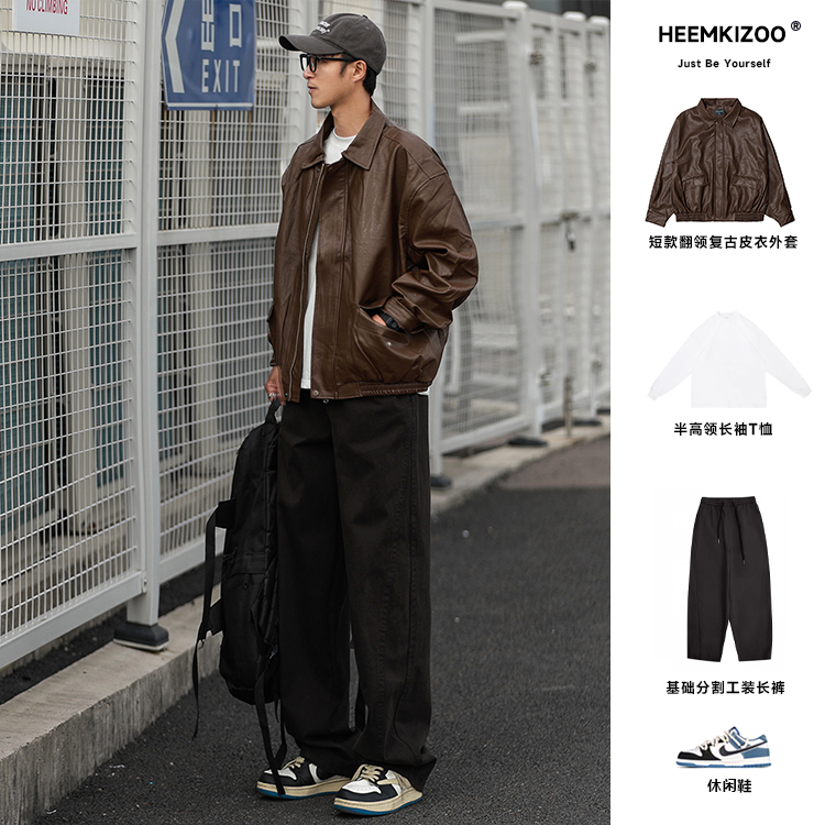 Heyma Qizuo American-Style Lapel Leather Short Jacket, Retro Spring and Autumn Style, Unisex Casual Melard Motorcycle Jacket
