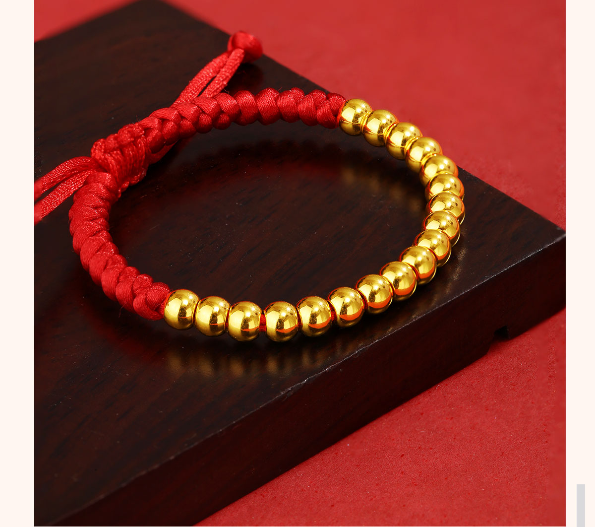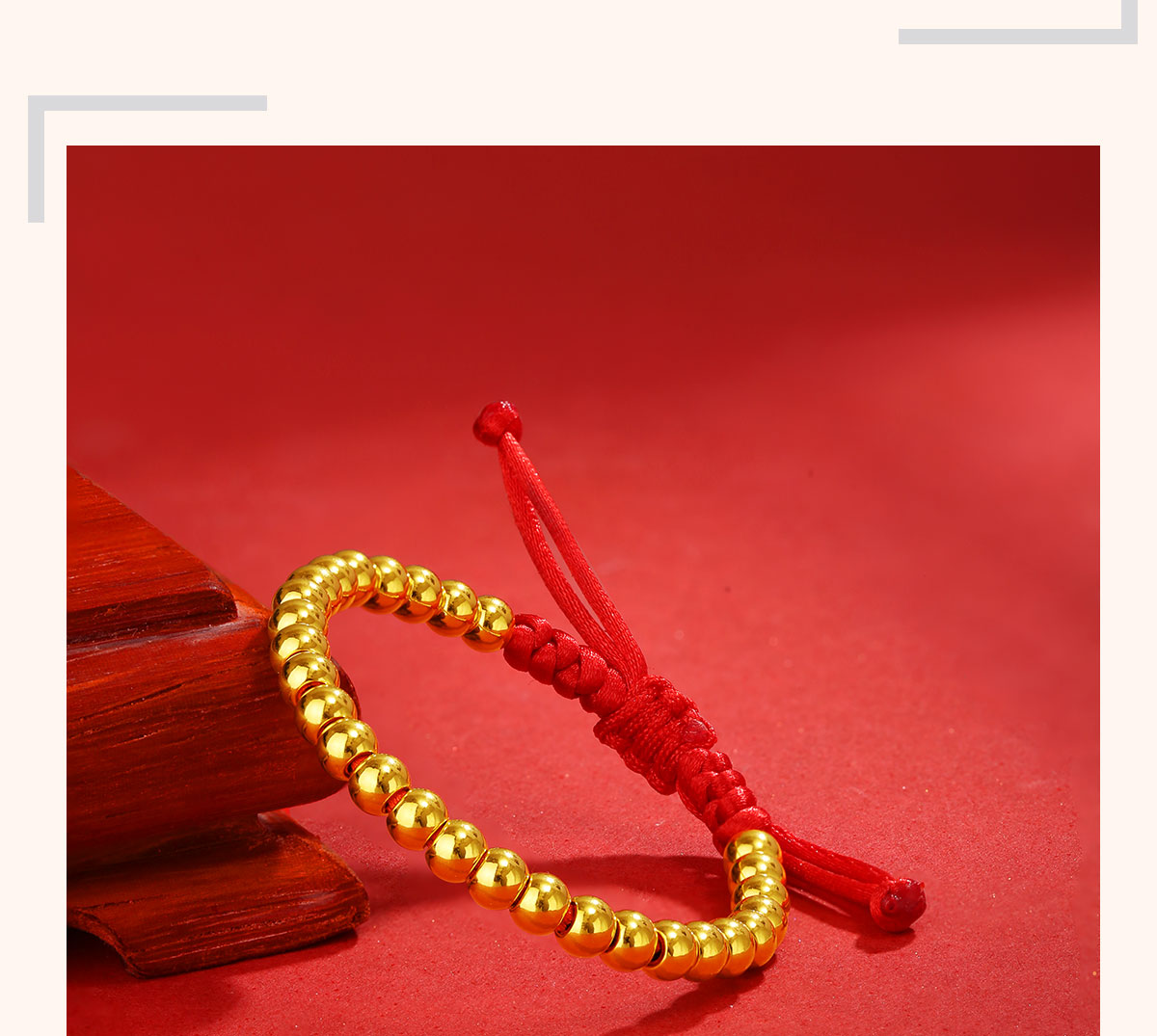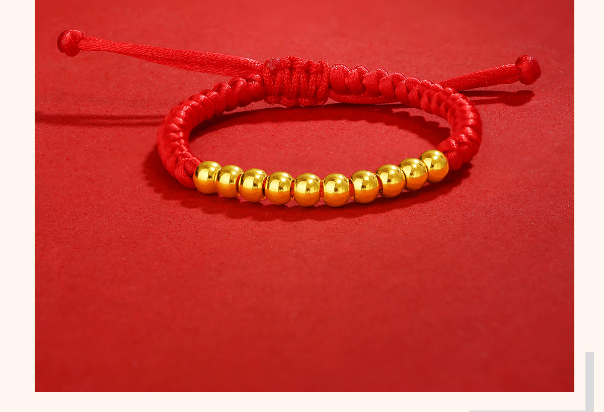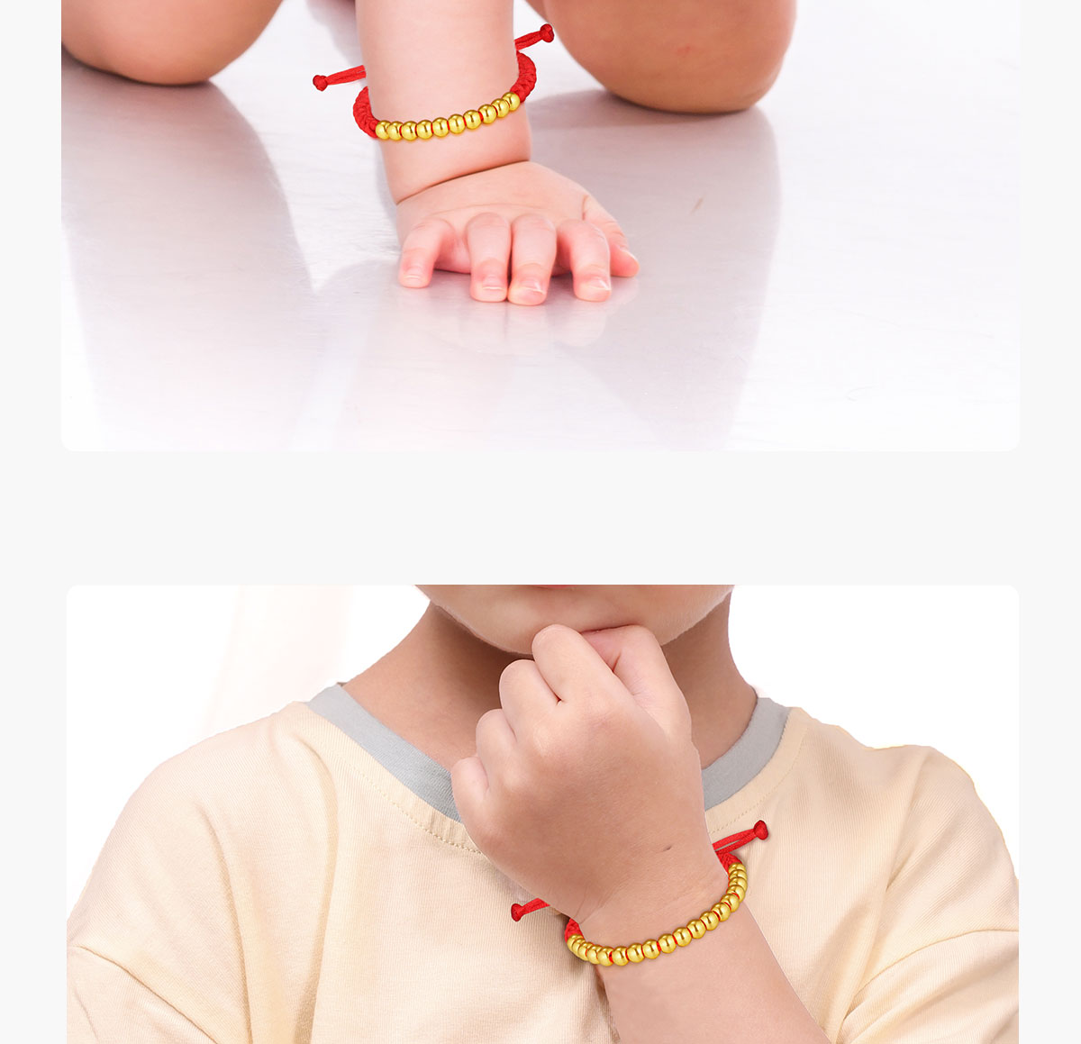 Baby Gold Bracelet with Small Gold Beads, Pure Gold 999 Transfer Beads, Full Moon Baby One-Year-Old Pure Gold Red String Children's Gold Jewelry
