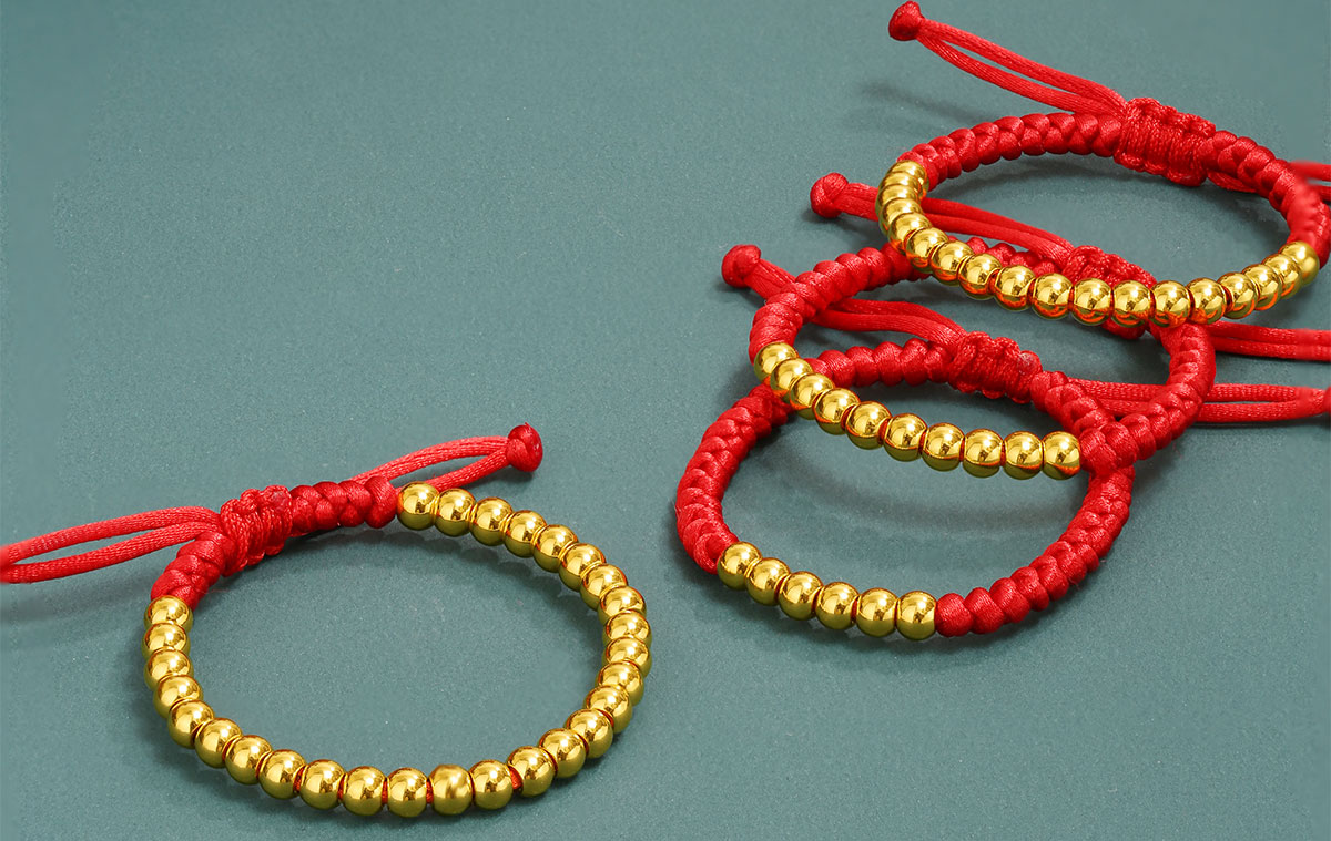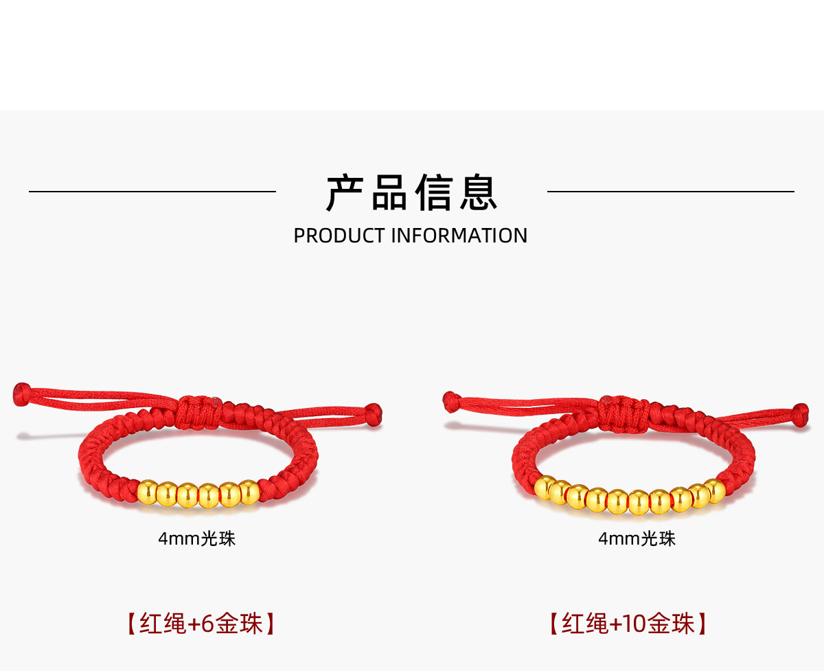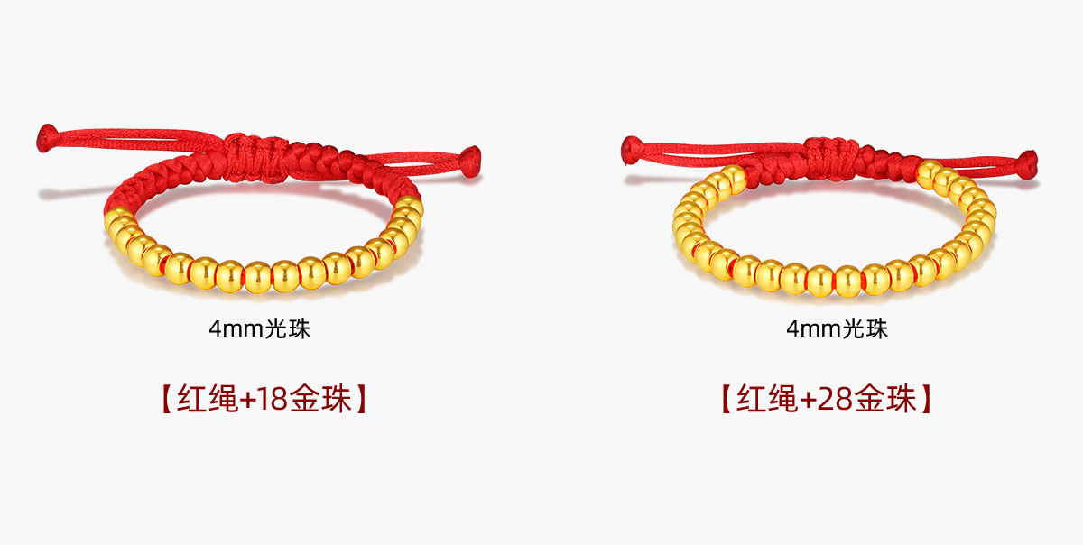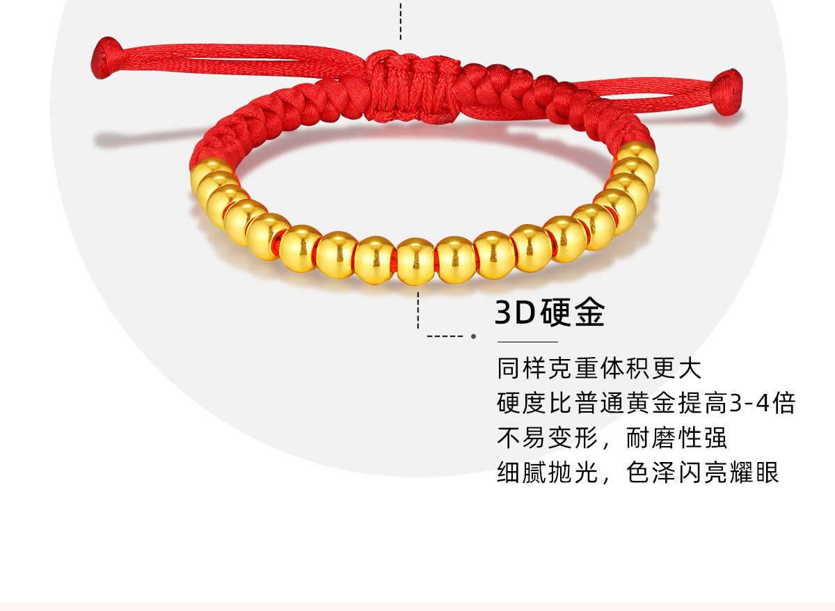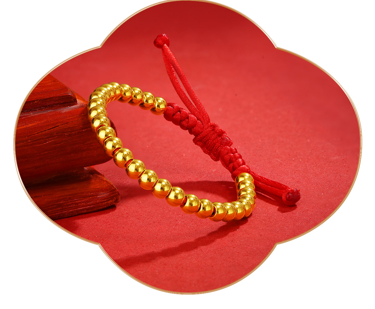 Baby Gold Bracelet with Small Gold Beads, Pure Gold 999 Transfer Beads, Full Moon Baby One-Year-Old Pure Gold Red String Children's Gold Jewelry