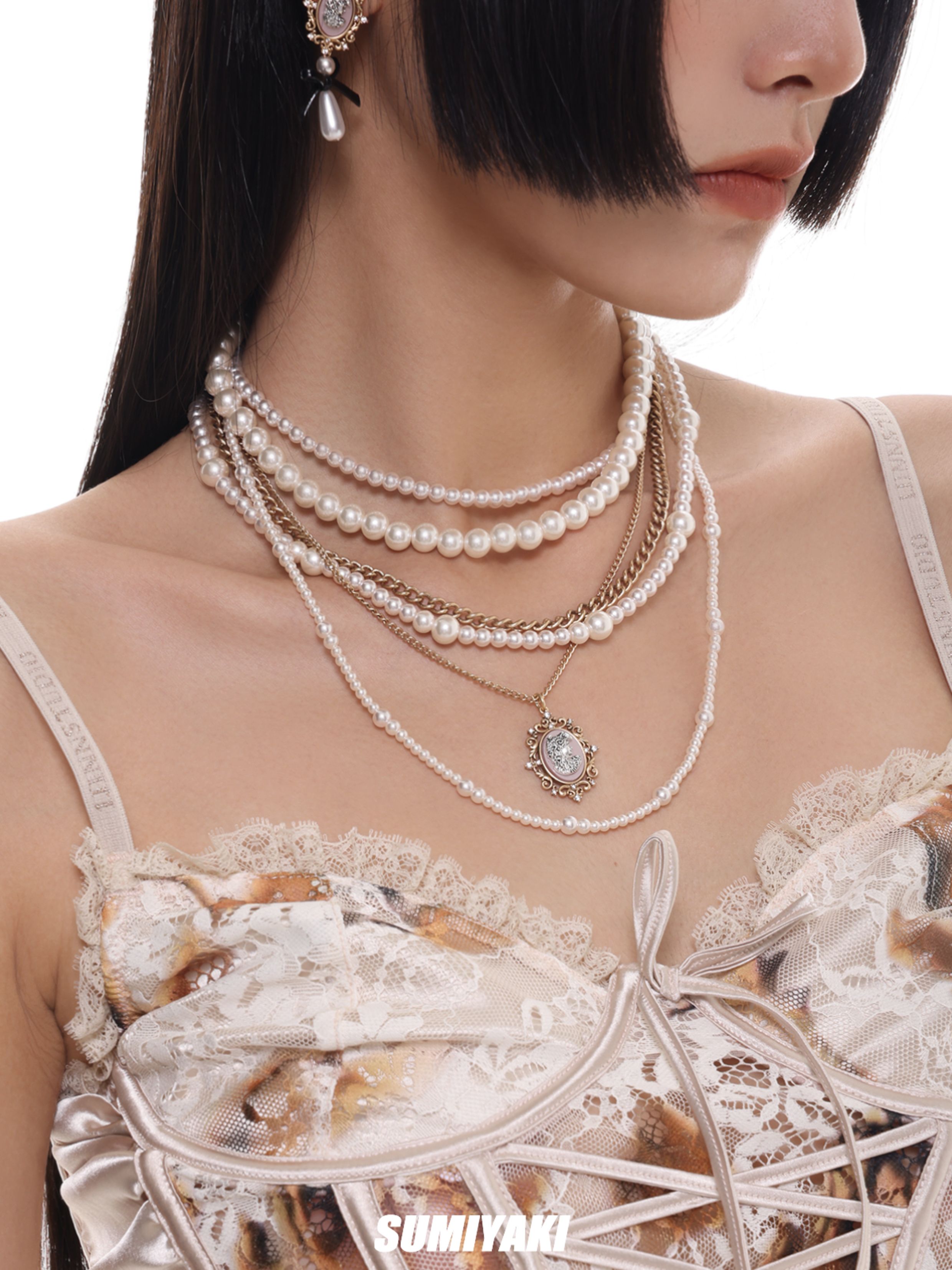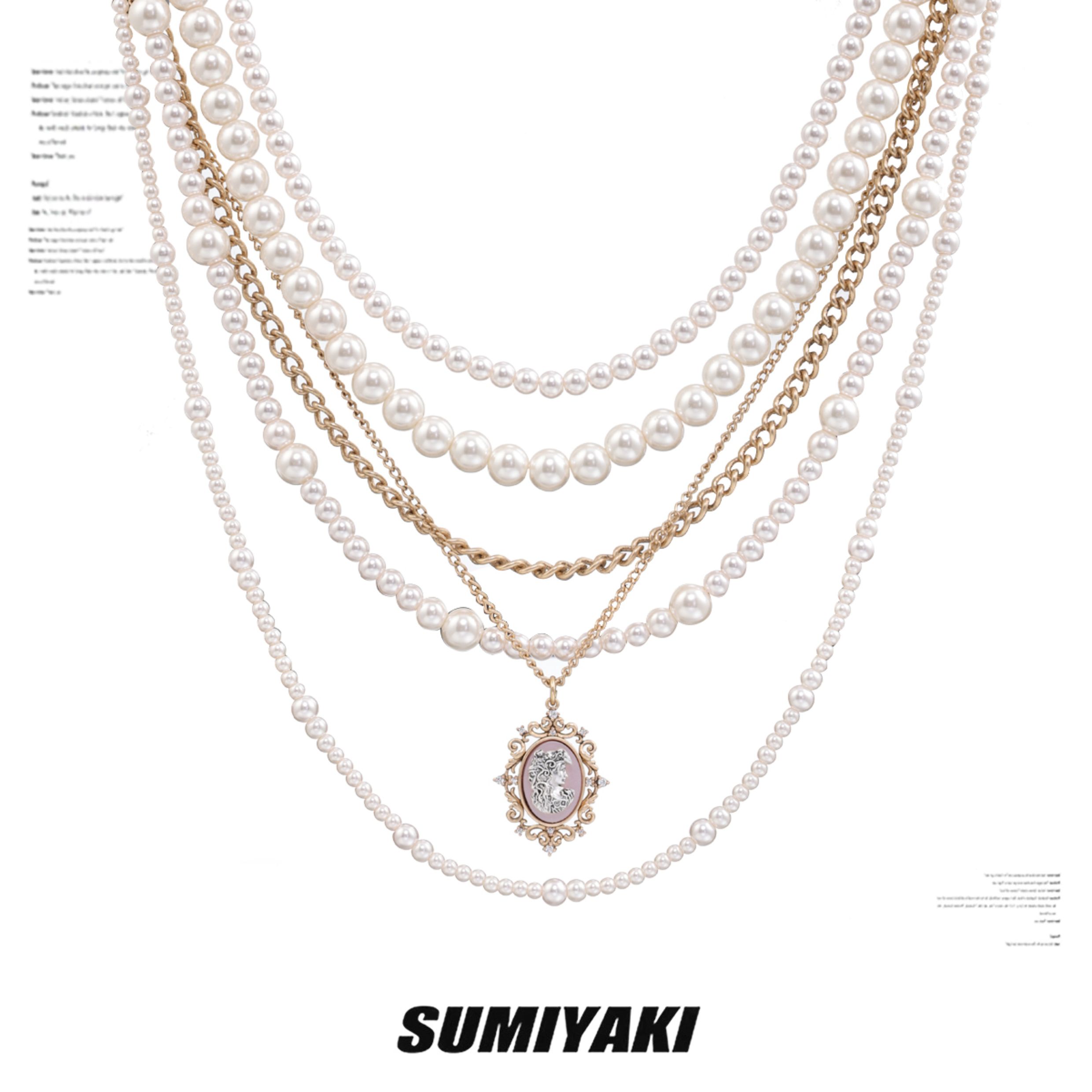 [Celebrity Style] Vintage American-Style Women's Pearl Necklace, Multi-Layered, Light Luxury, Chanel-Style Choker