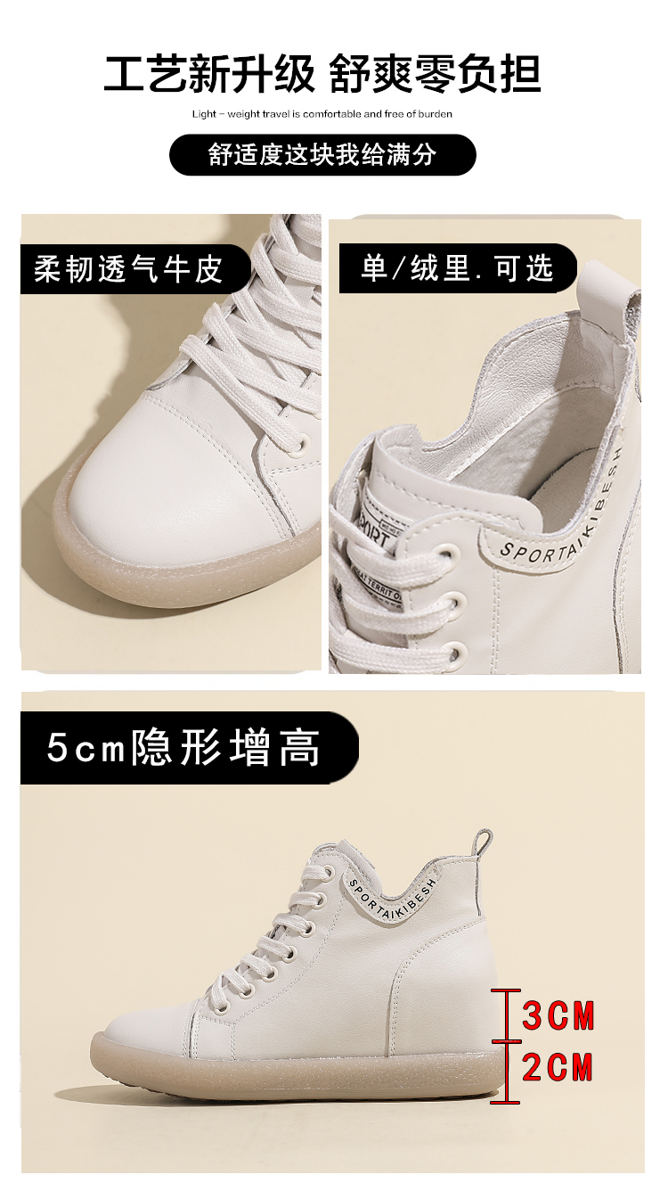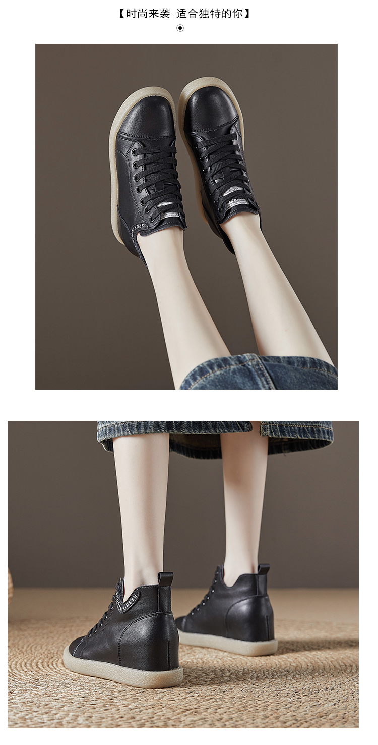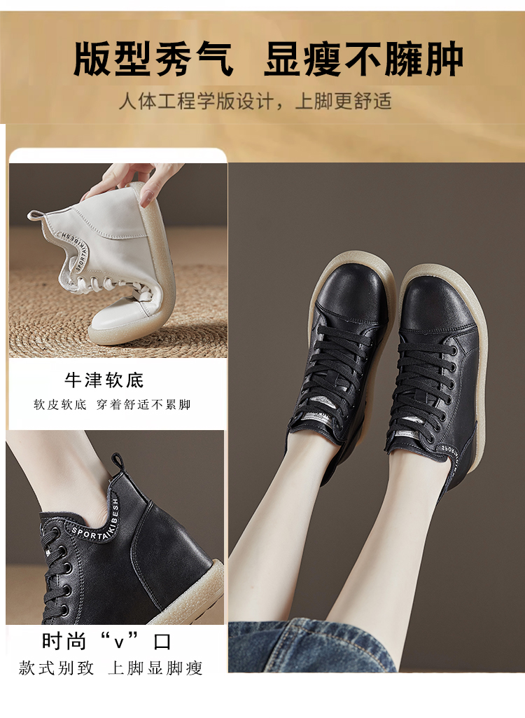 Women's High-Top Sneakers with Beef Tendon Soles, 2025 New Spring and Autumn Thick-Soled Height-Increasing Shoes, Genuine Leather Soft-Soled Casual Shoes