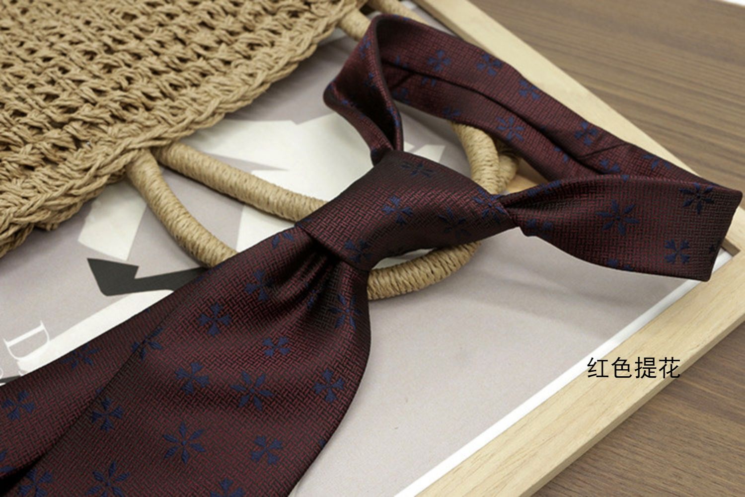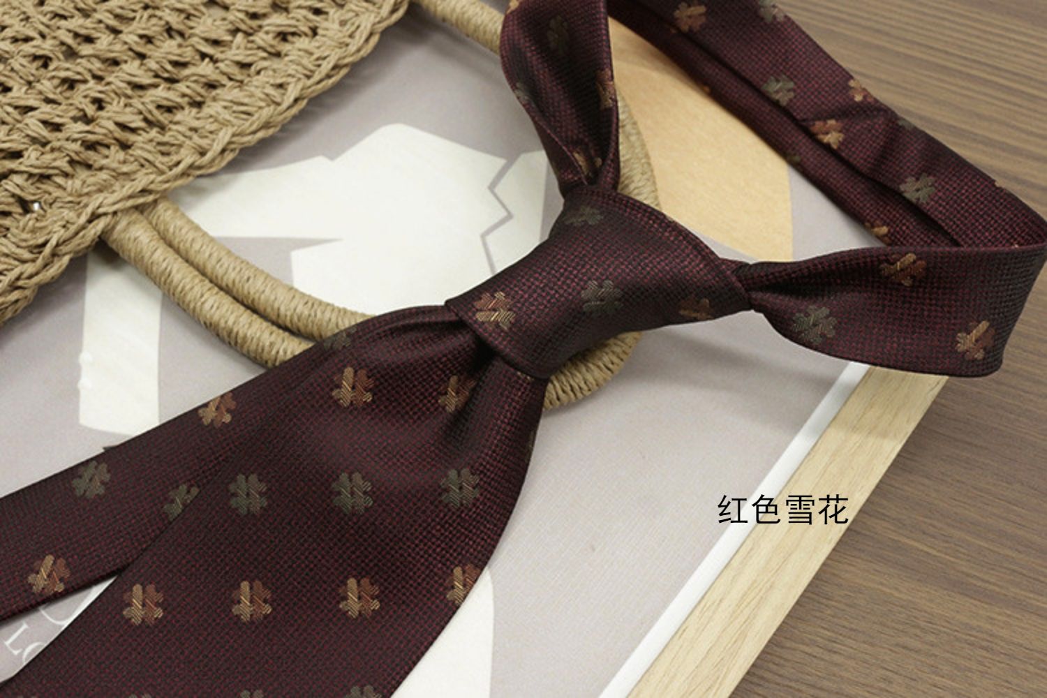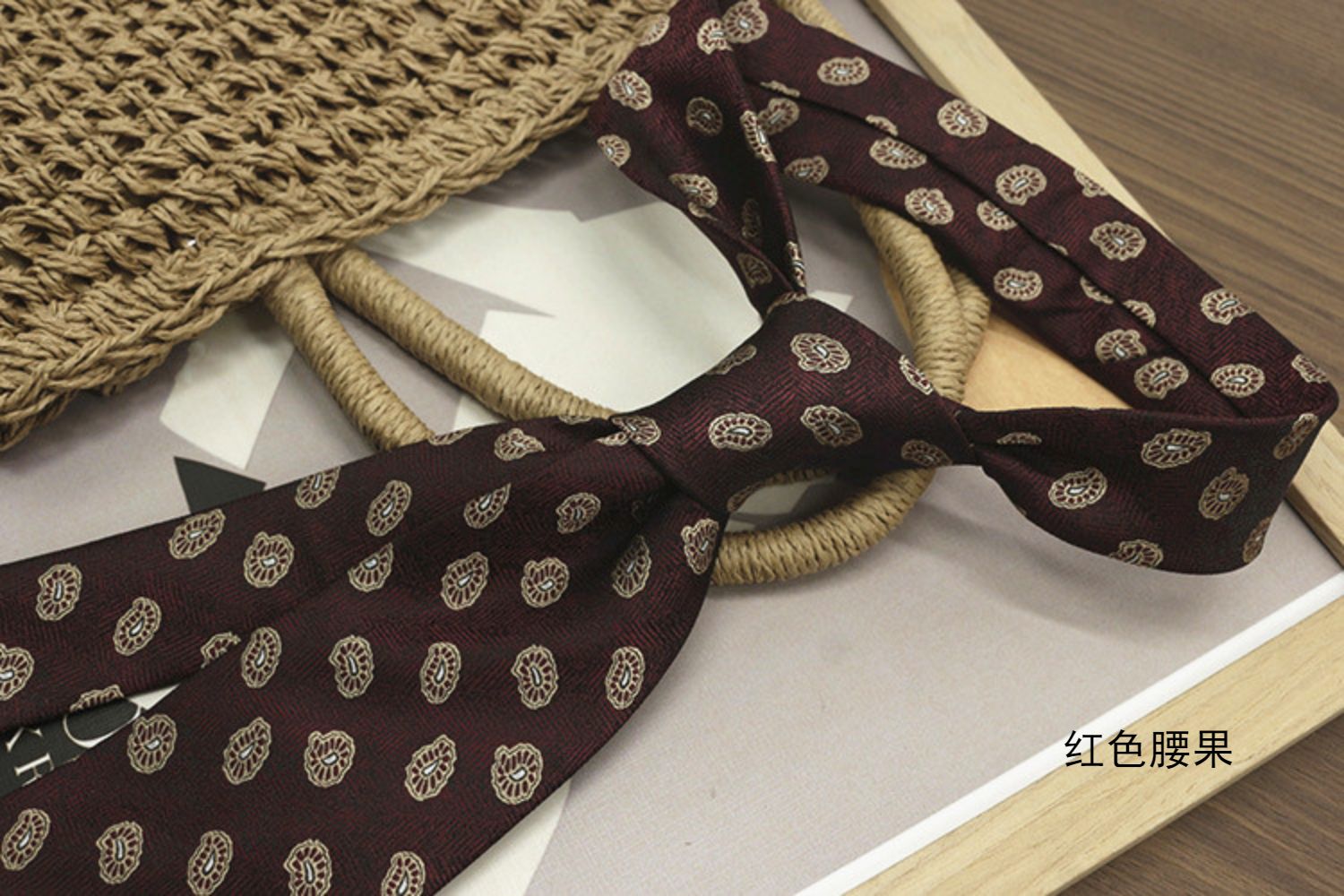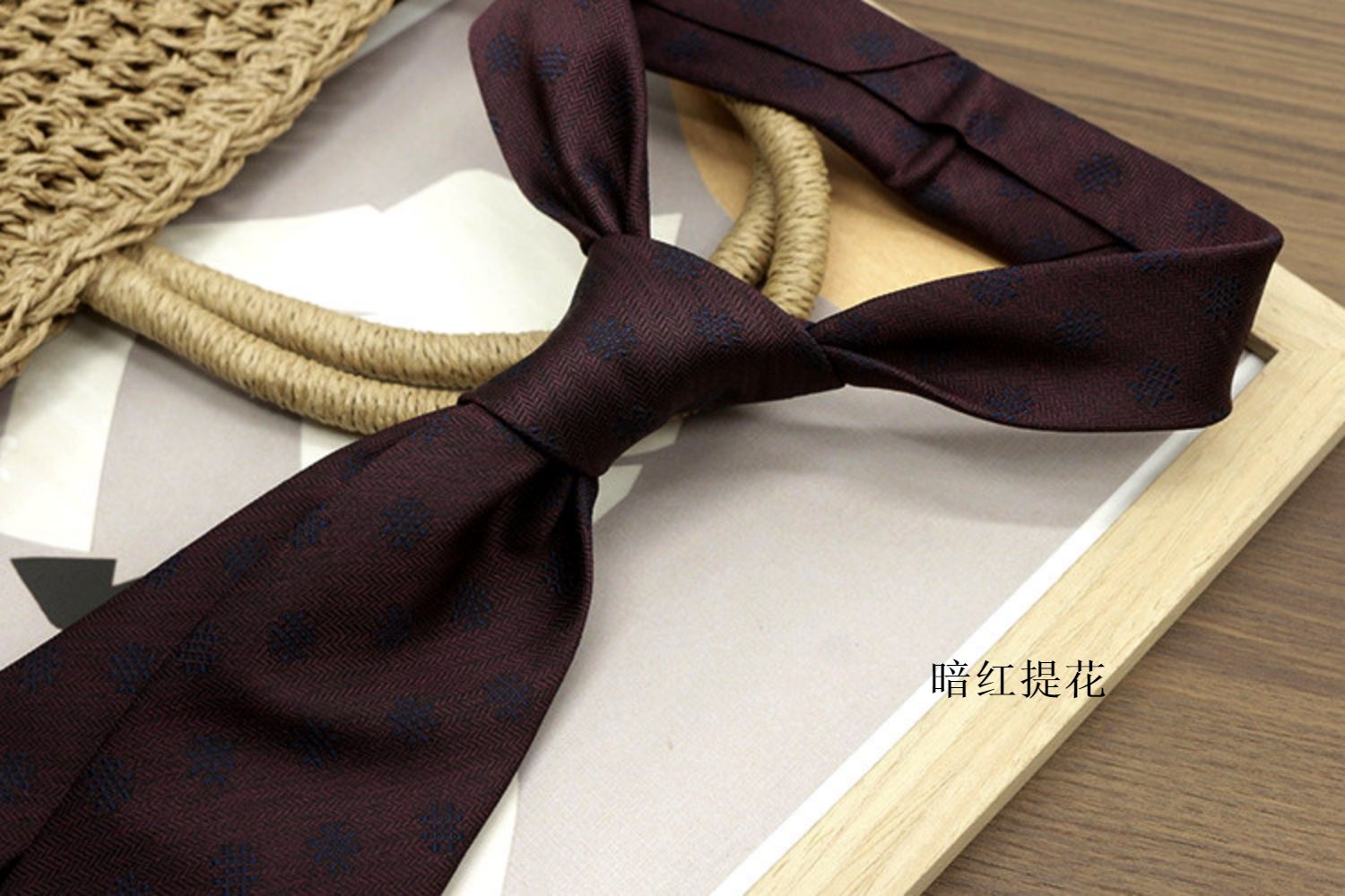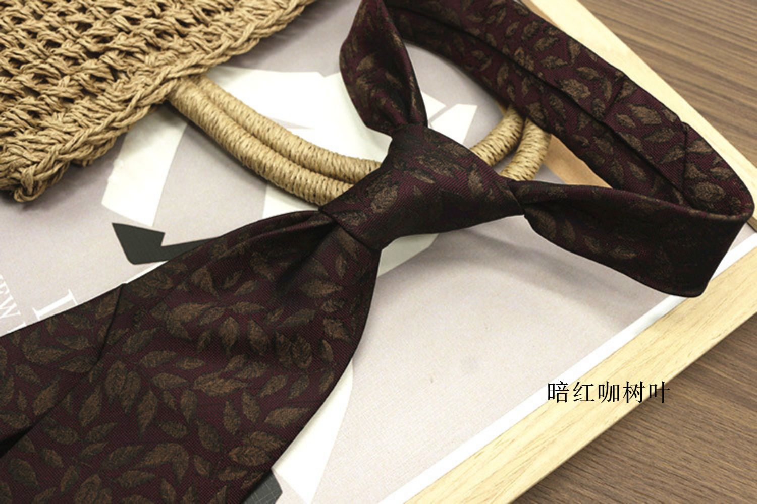 Retro Coffee-Colored Red Patterned Wedding Groom's Tie Formal Casual Gentleman's Wear Hand-Tied Photo Shoot Host Annual Meeting