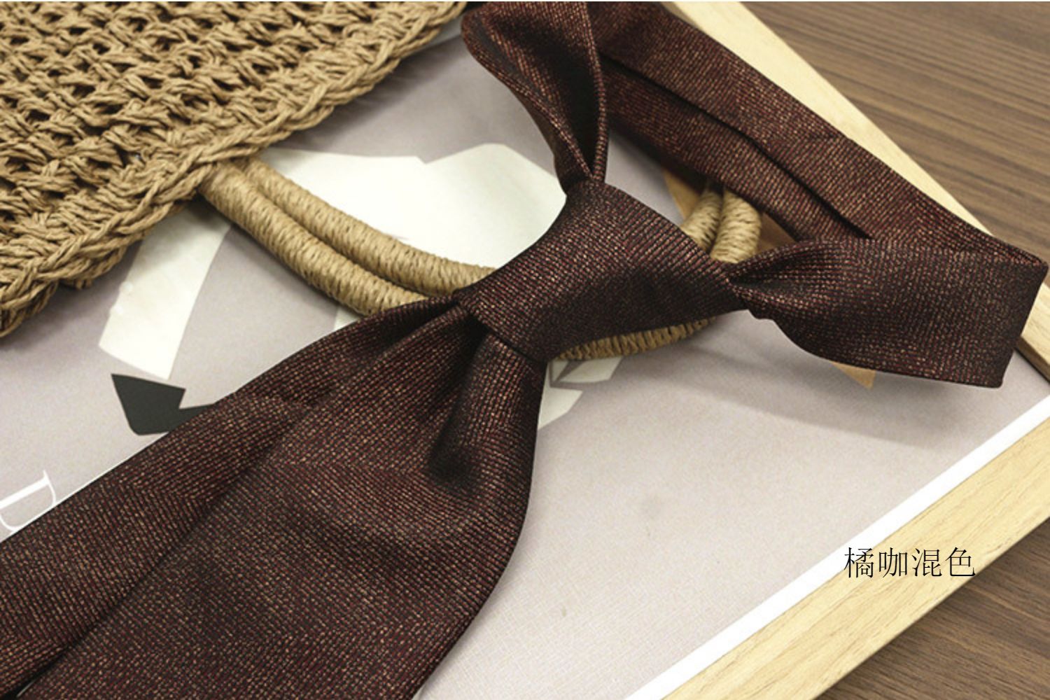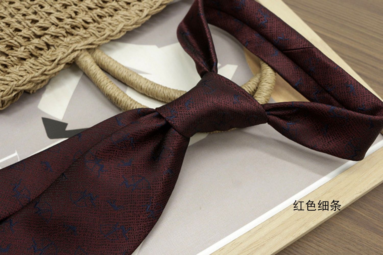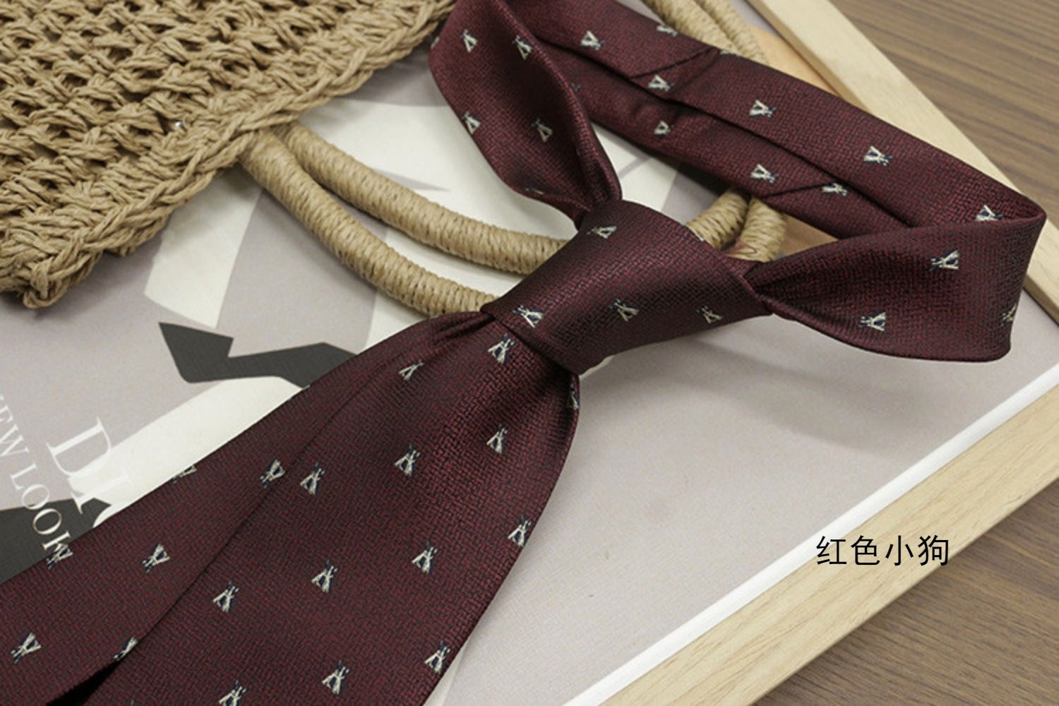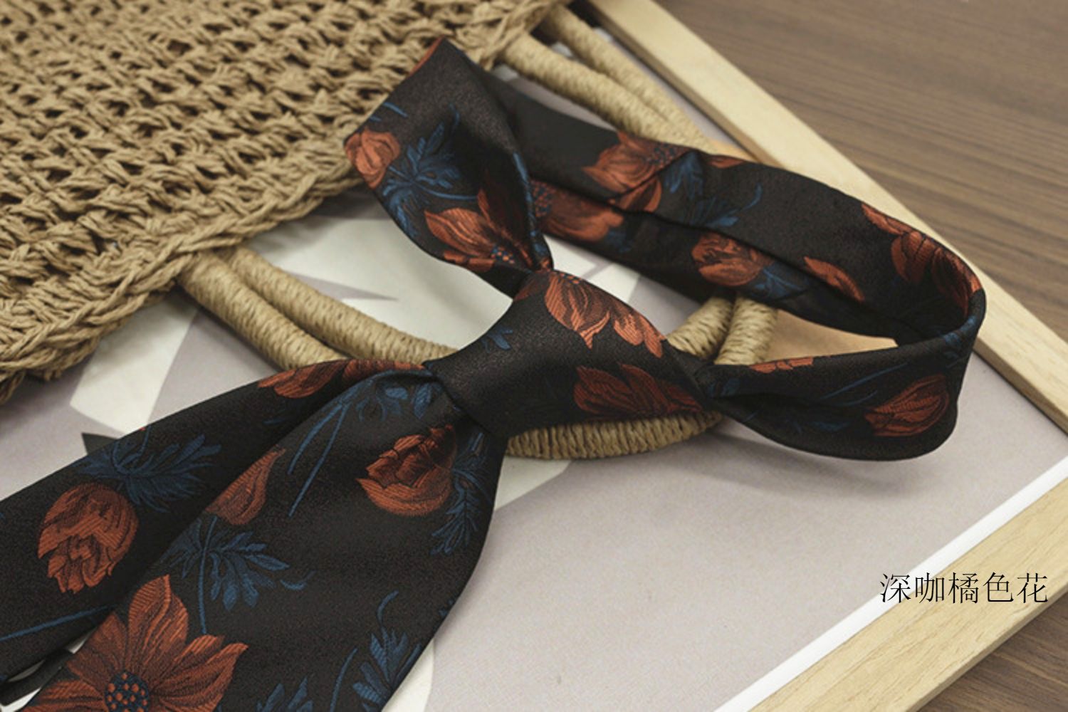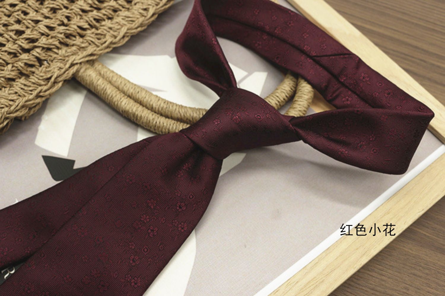 Retro Coffee-Colored Red Patterned Wedding Groom's Tie Formal Casual Gentleman's Wear Hand-Tied Photo Shoot Host Annual Meeting