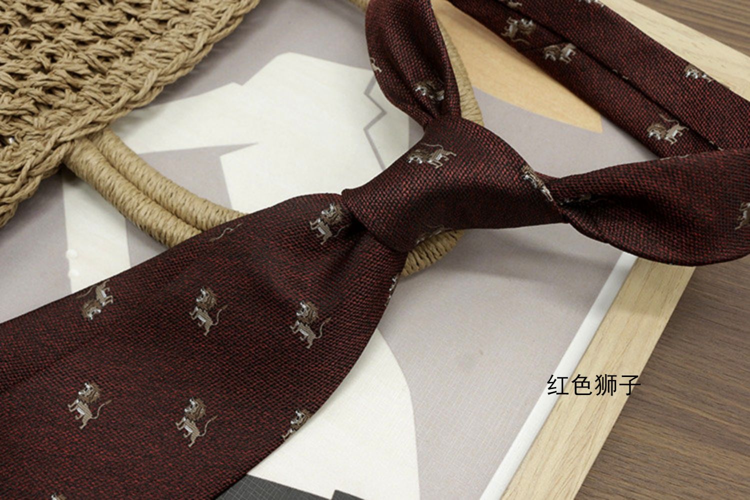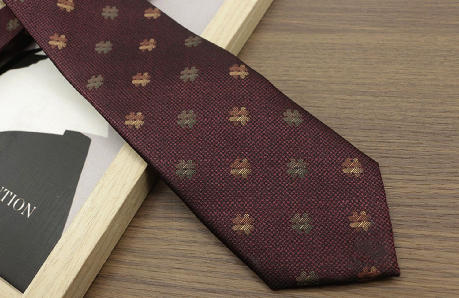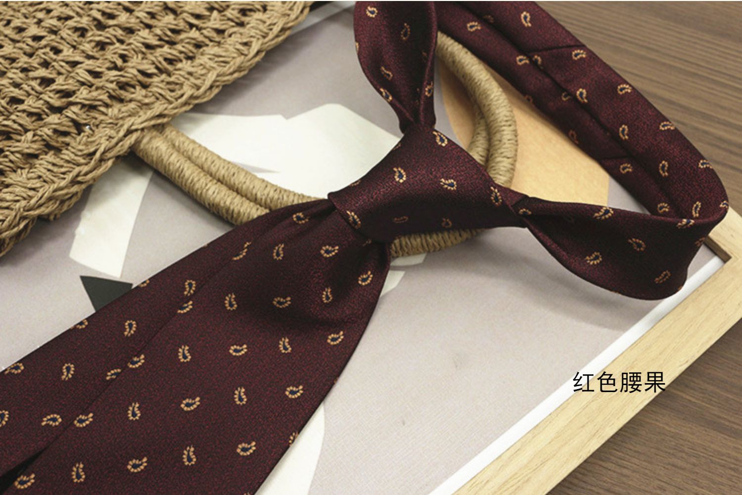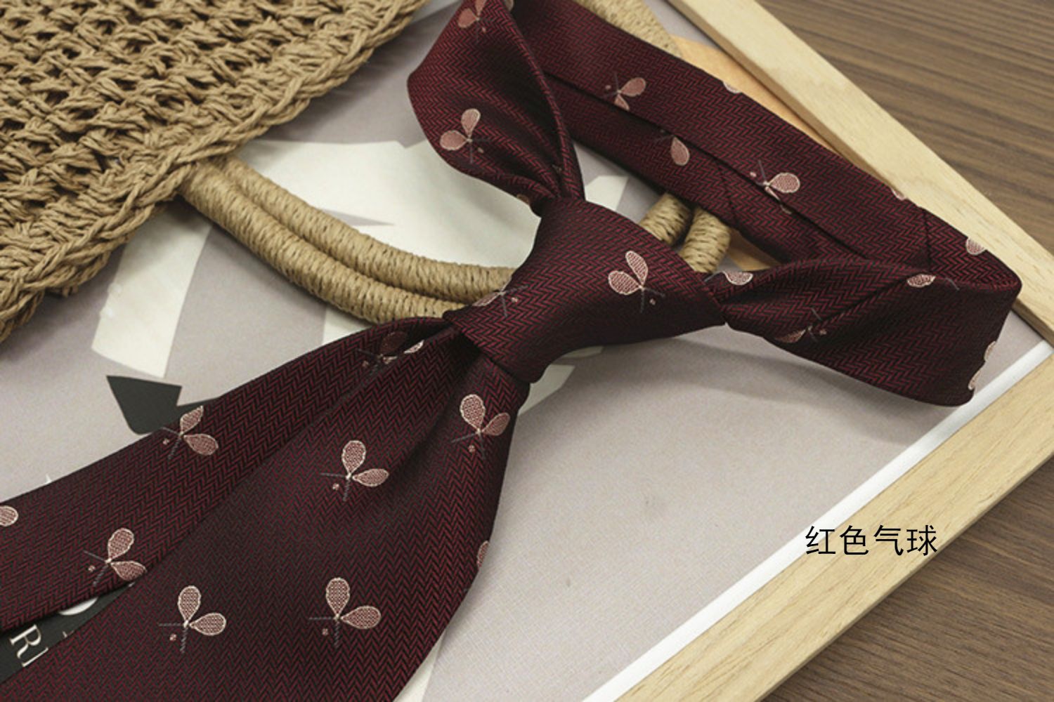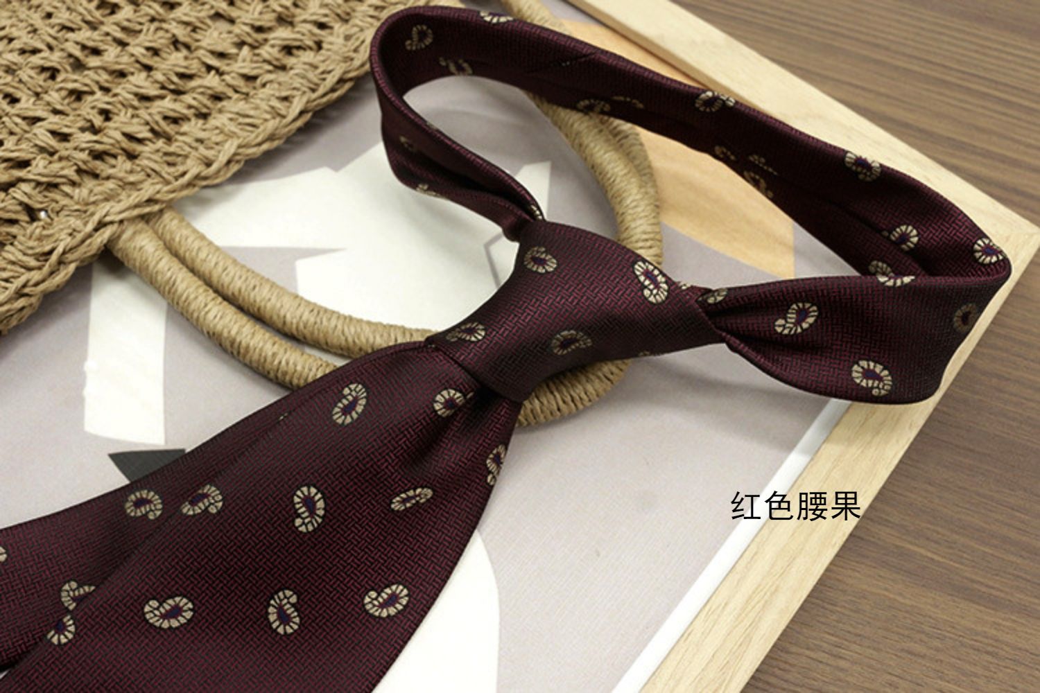 Retro Coffee-Colored Red Patterned Wedding Groom's Tie Formal Casual Gentleman's Wear Hand-Tied Photo Shoot Host Annual Meeting