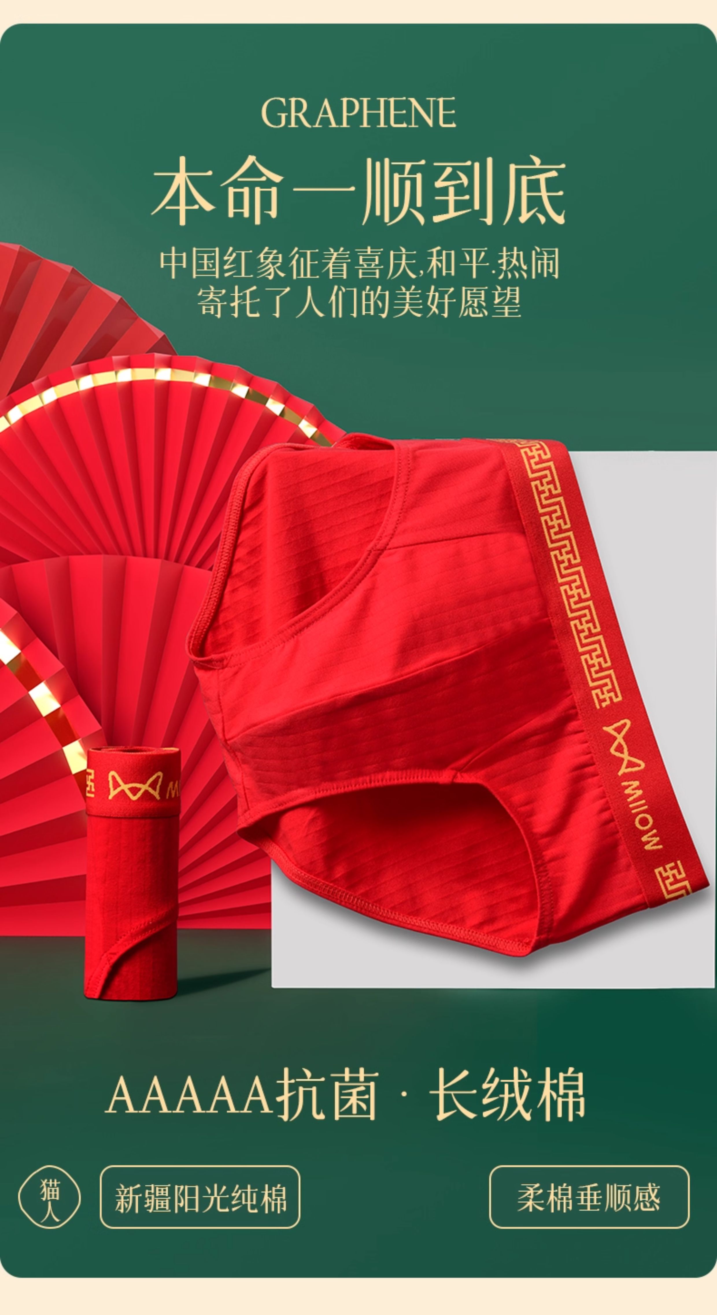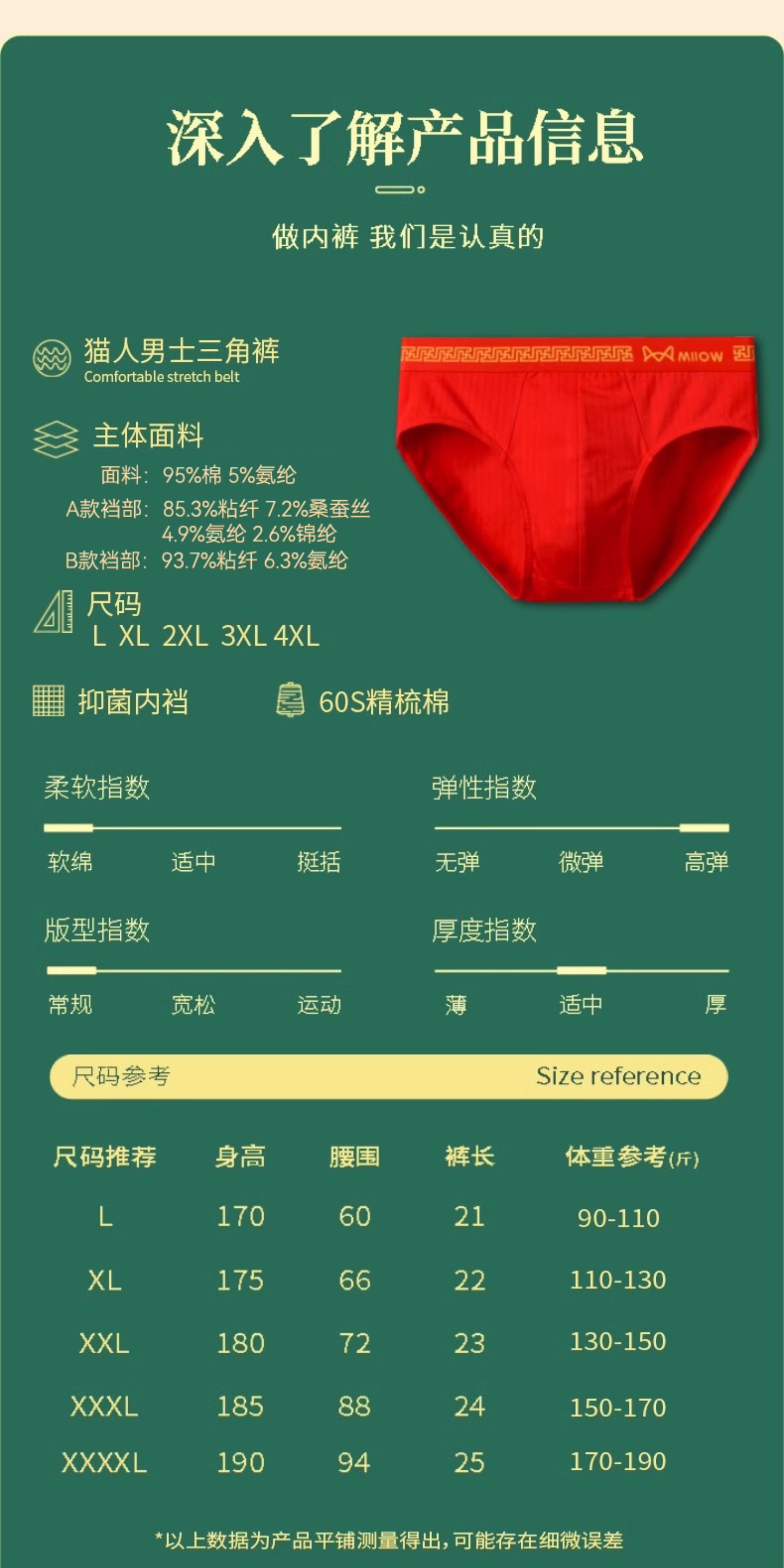 Cat-Themed Red Cotton Briefs for Men, Zodiac Year Gift for 2025, Year of the Snake, Men's Shorts