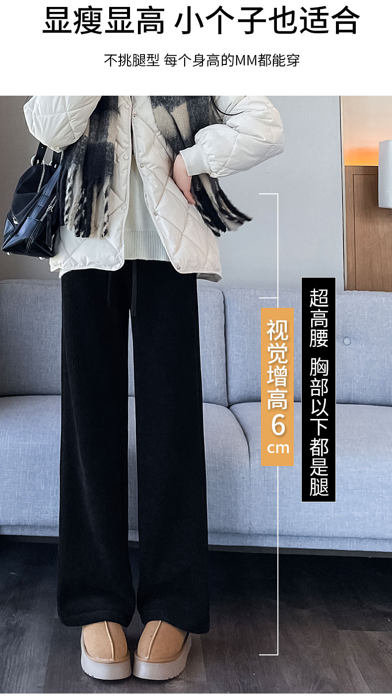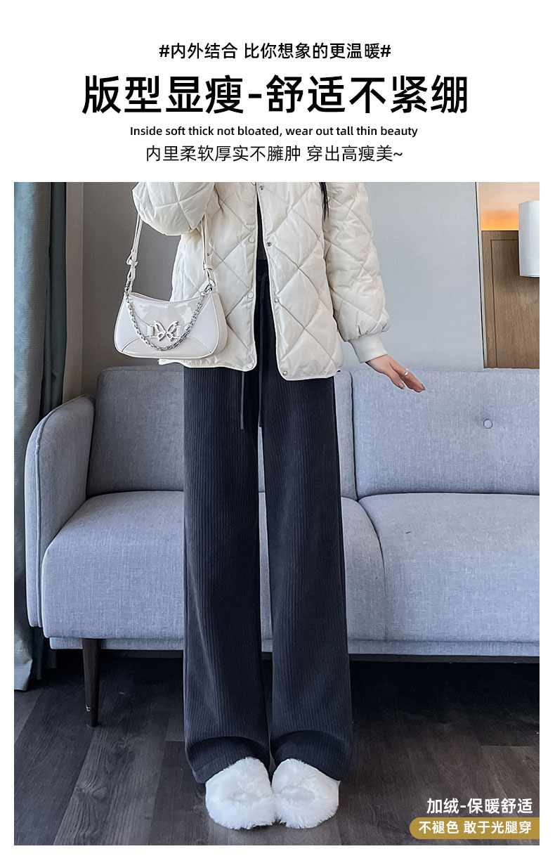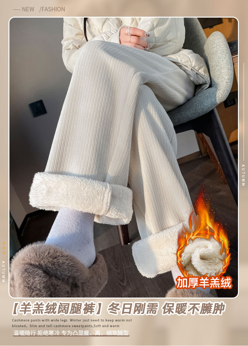 Lamb Wool Women's Pants, Fleece-Lined and Thickened, Straight-Leg Cotton Pants for Women in Autumn and Winter, Petite White Pants, Corduroy Wide-Leg Pants