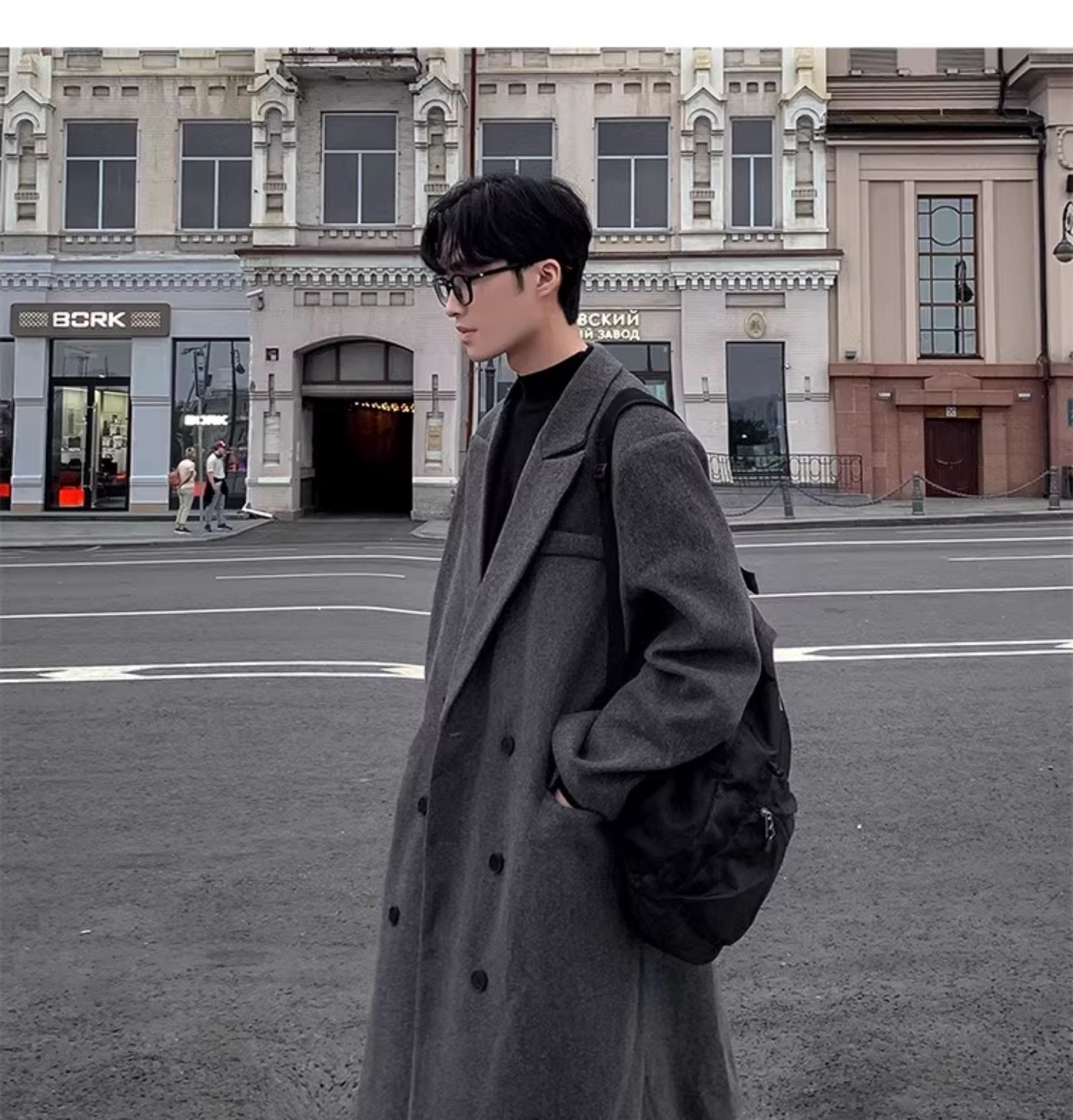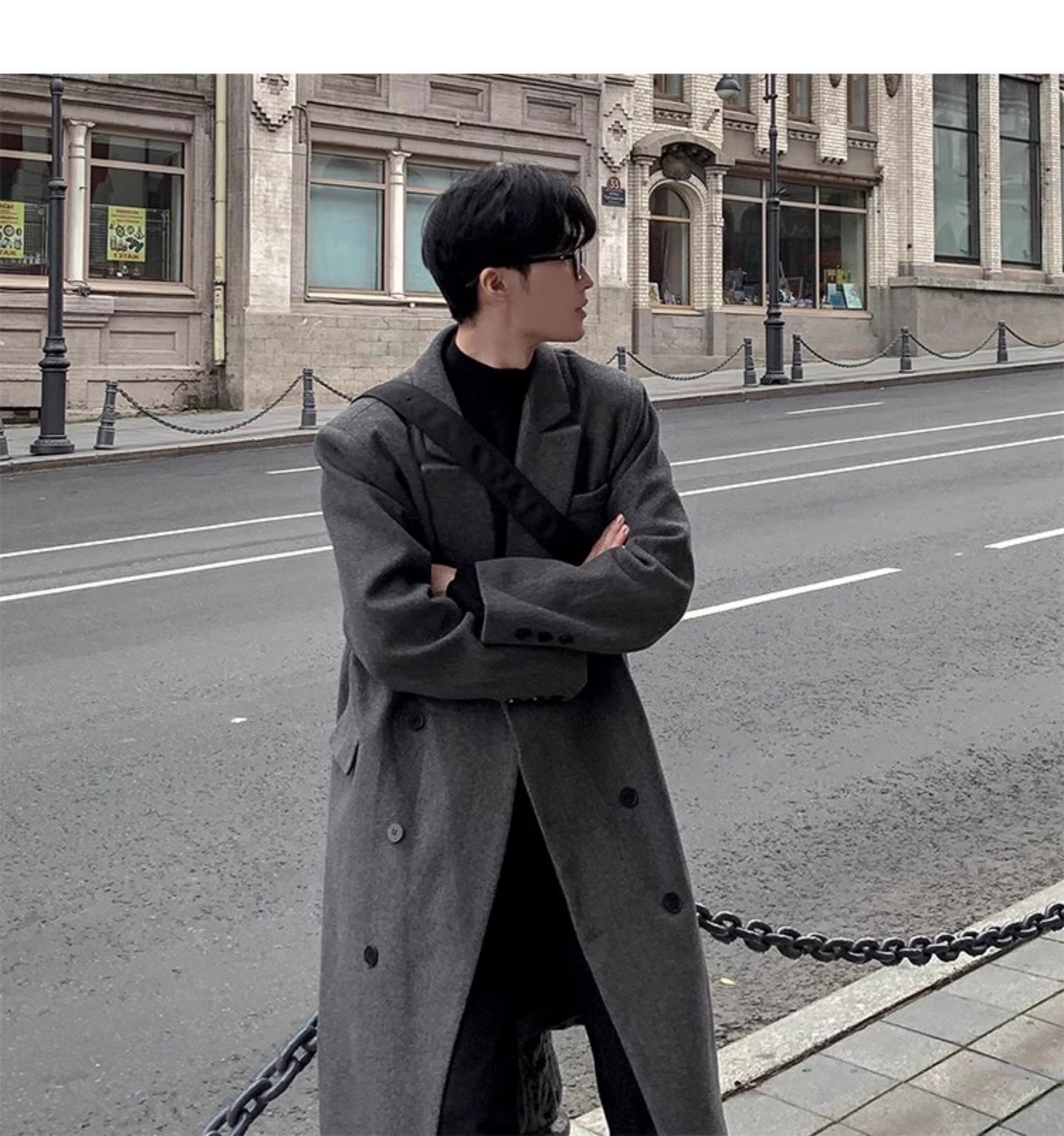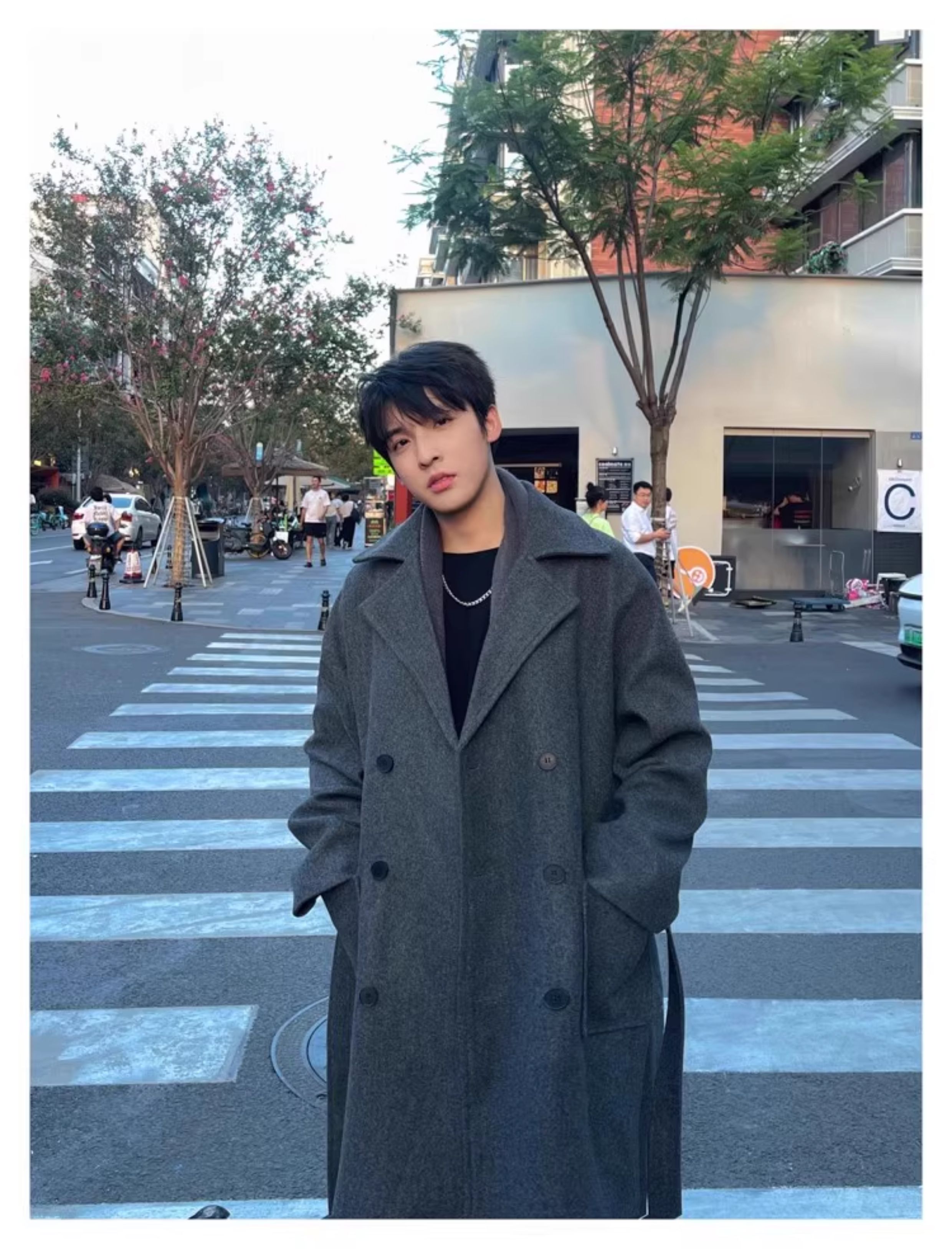 Autumn and Winter Woolen Coat for Men, Mid-Length Korean Style High-End Over-The-Knee Trench Coat, Thickened Trendy Brand Woolen Jacket