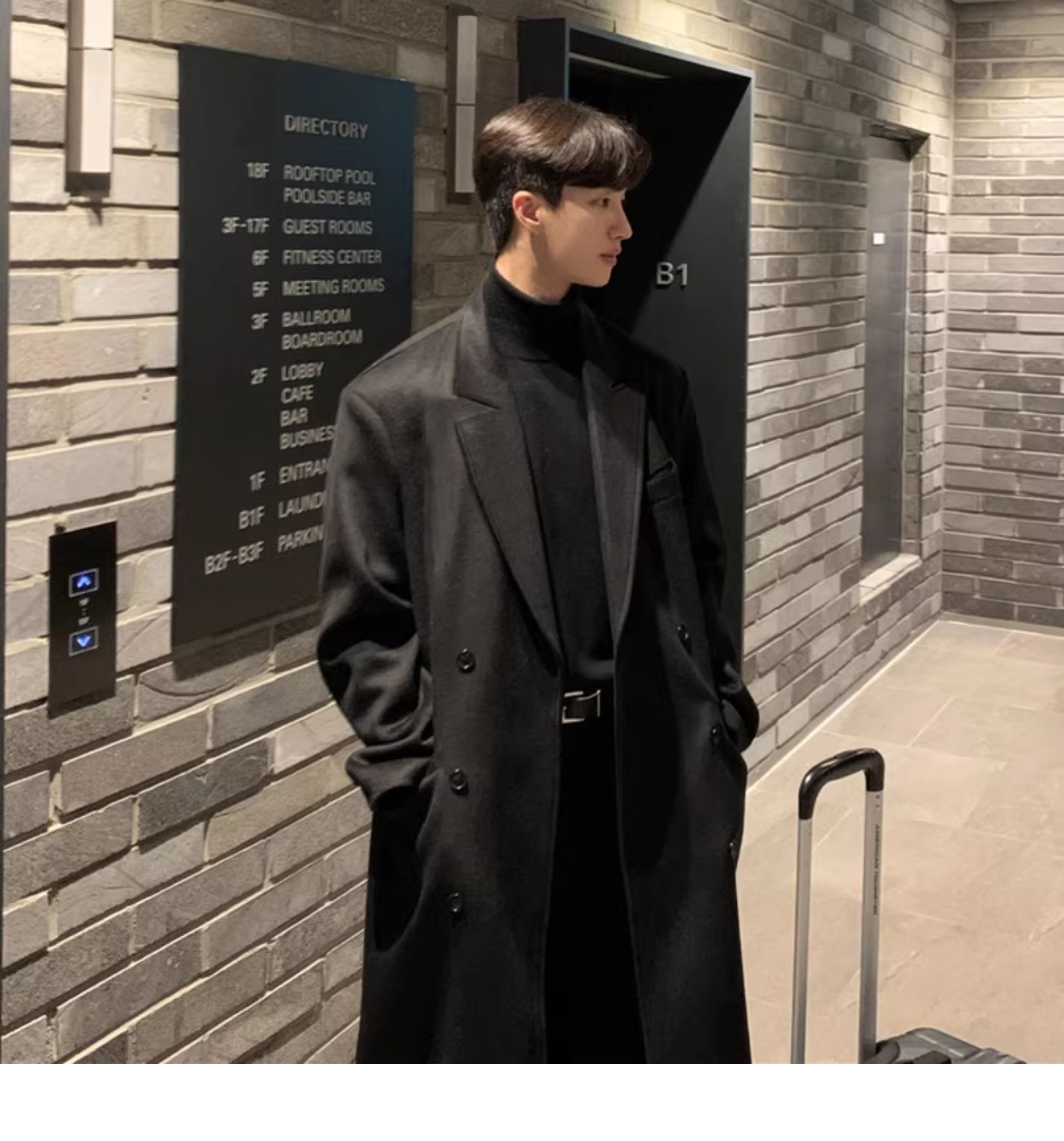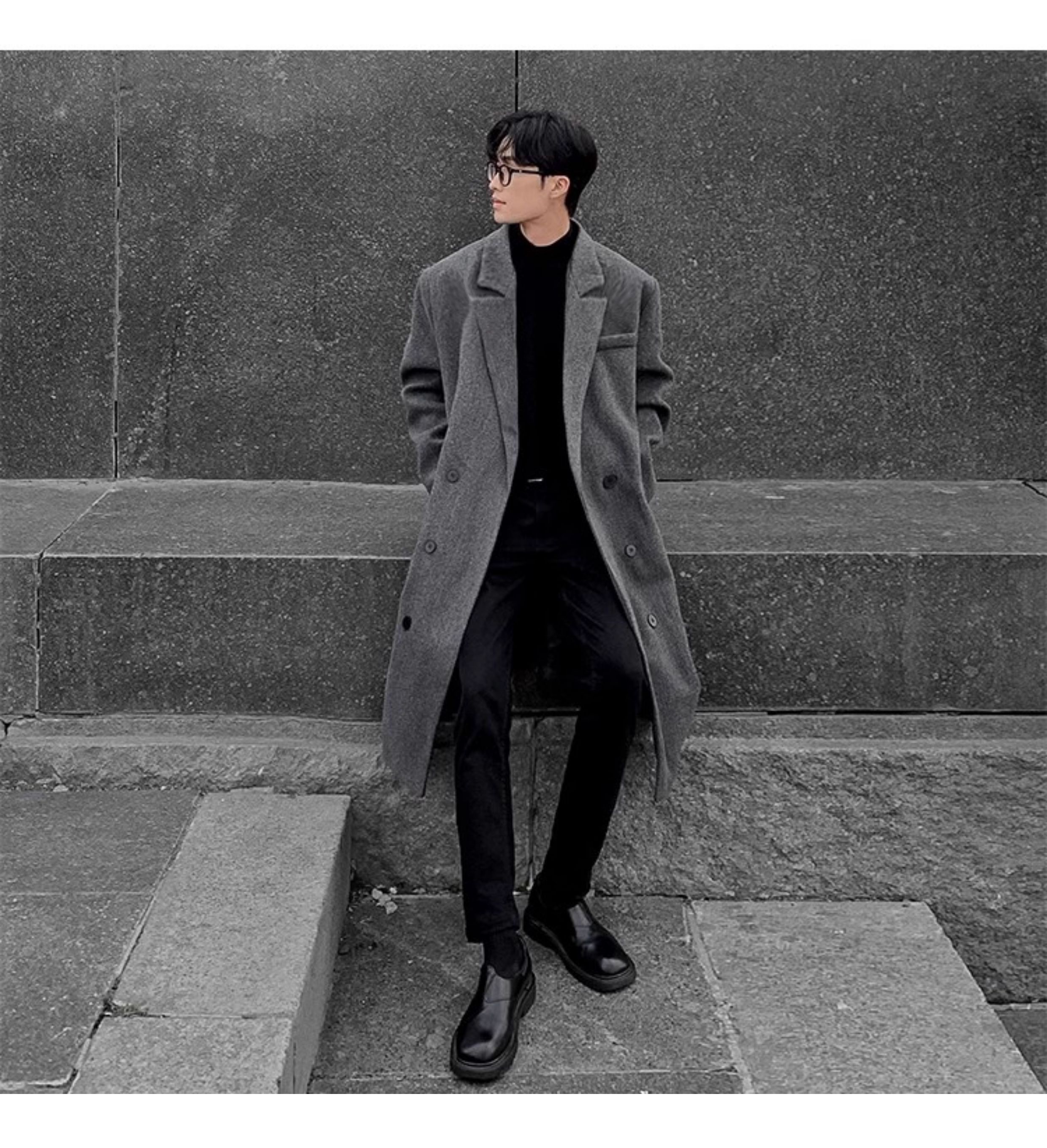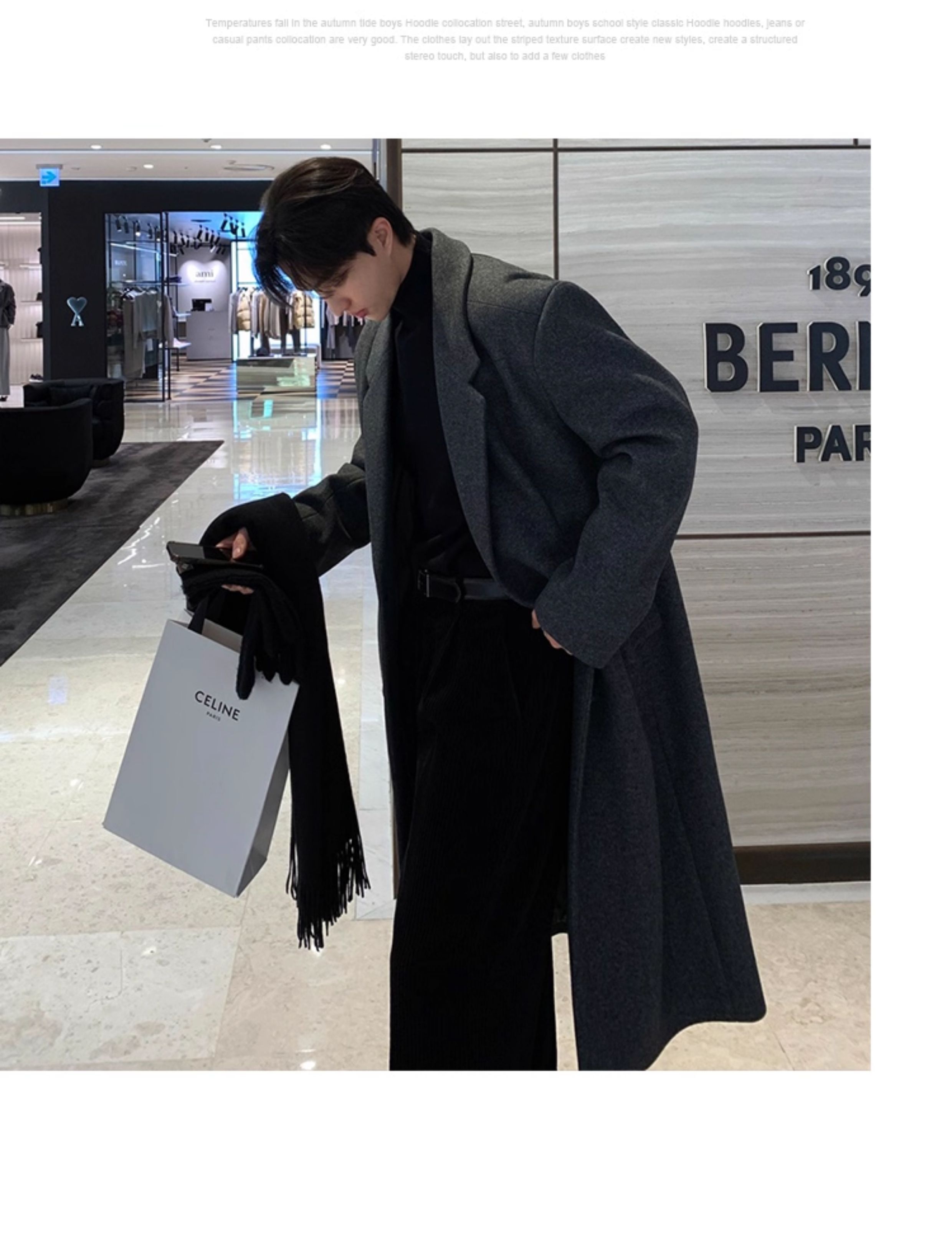 Autumn and Winter Woolen Coat for Men, Mid-Length Korean Style High-End Over-The-Knee Trench Coat, Thickened Trendy Brand Woolen Jacket