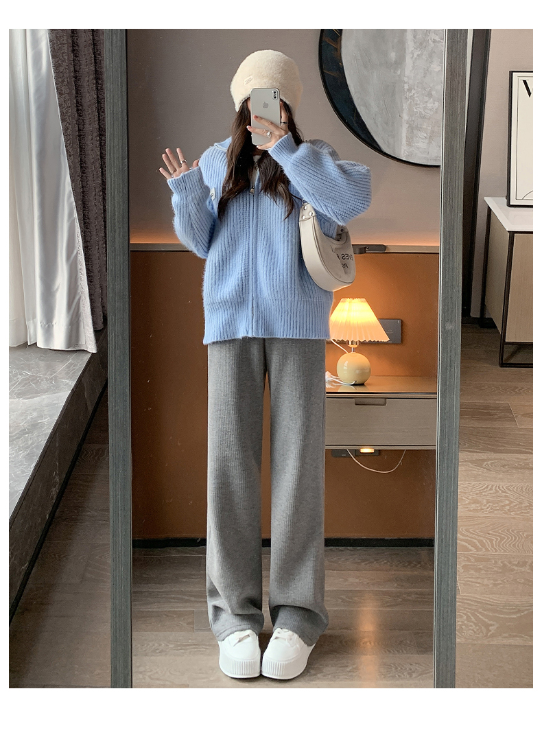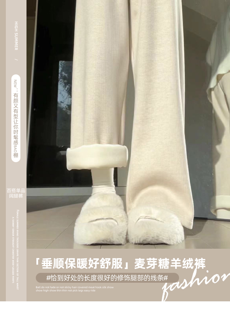 Lamb Wool Glutinous Pants for Women, Autumn and Winter 2025 New High-Waisted Drapey Casual Wide-Leg Pants, Soft and Plush Cashmere Fleece-Lined Trousers