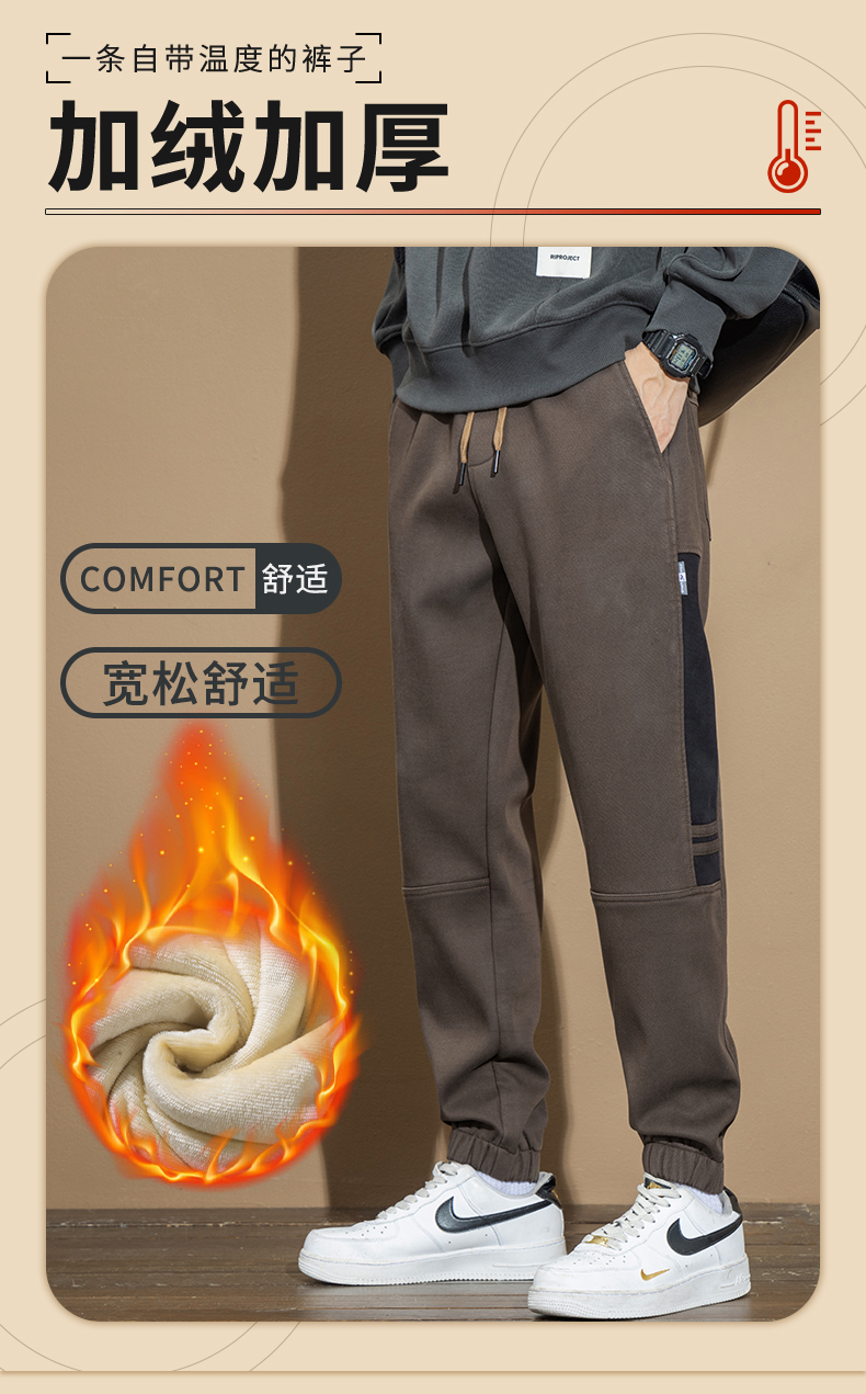 2025 Autumn/Winter New Fleece-Lined Casual Pants for Men, American Style Loose Fit, Jogger Workwear Harem Pants, Trendy