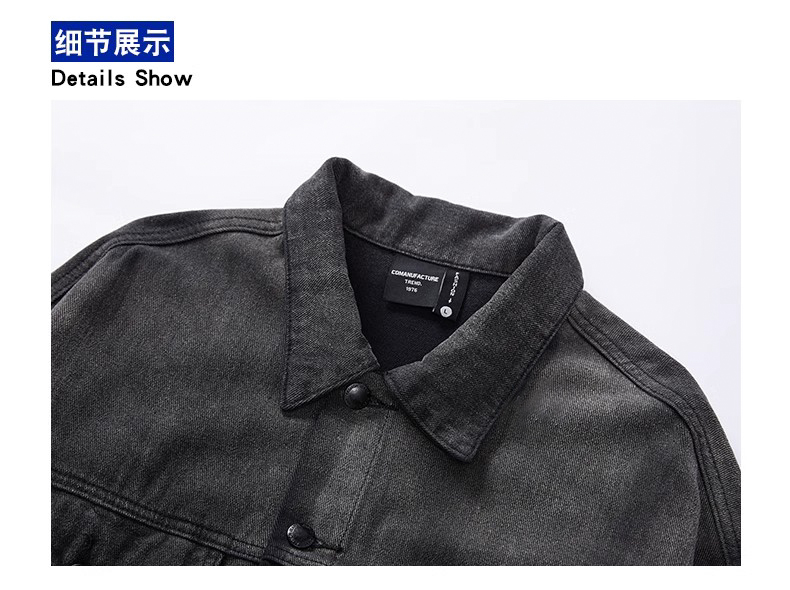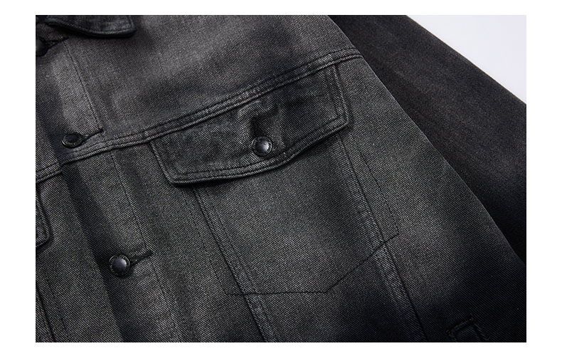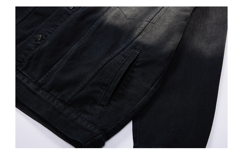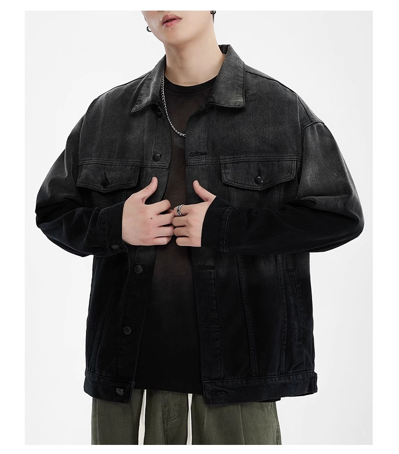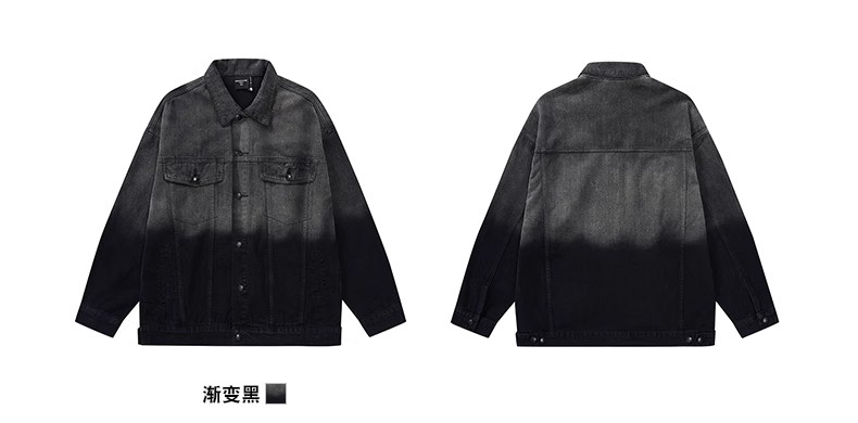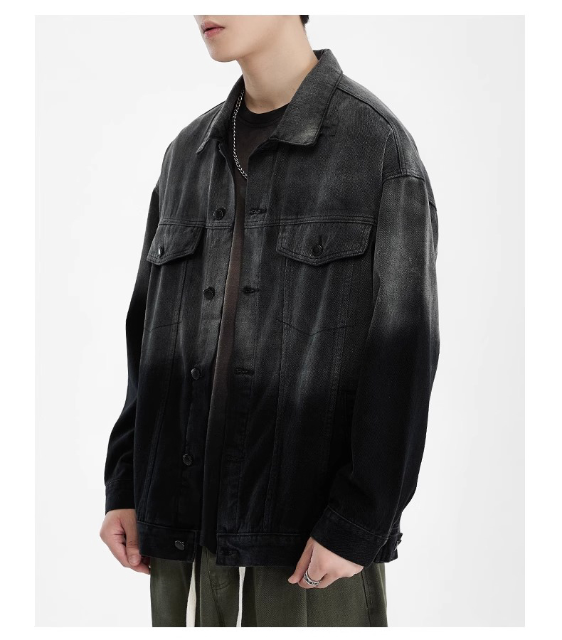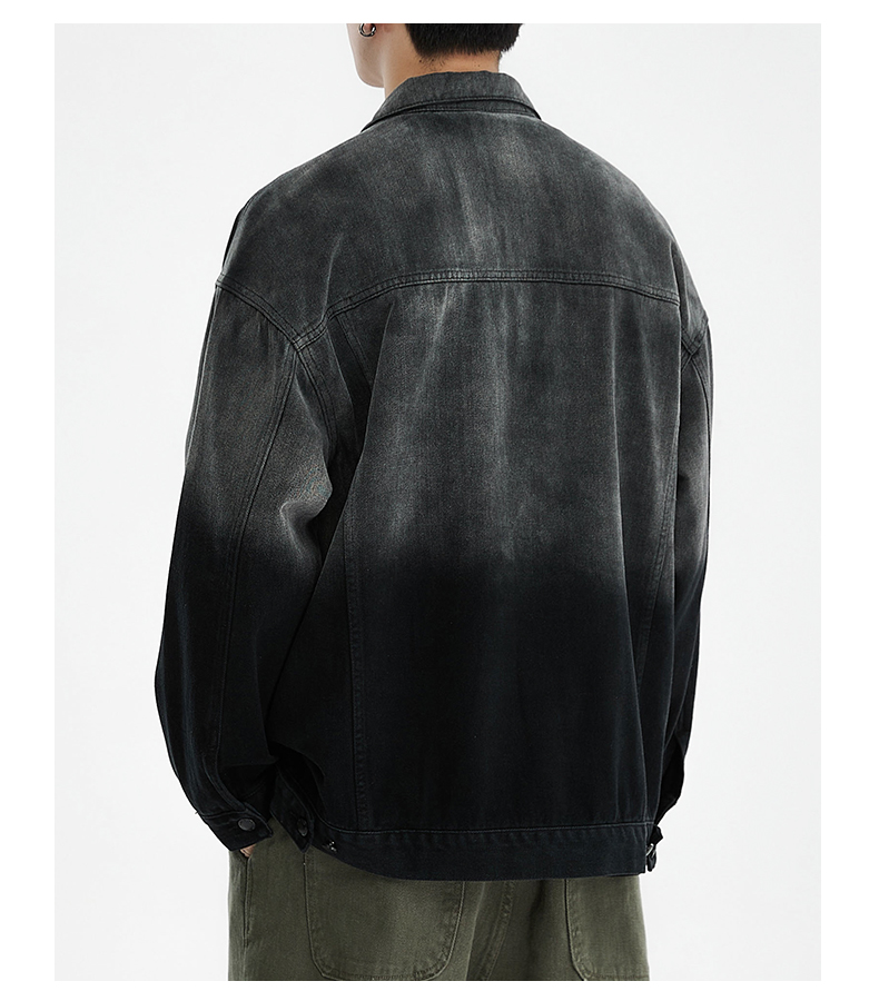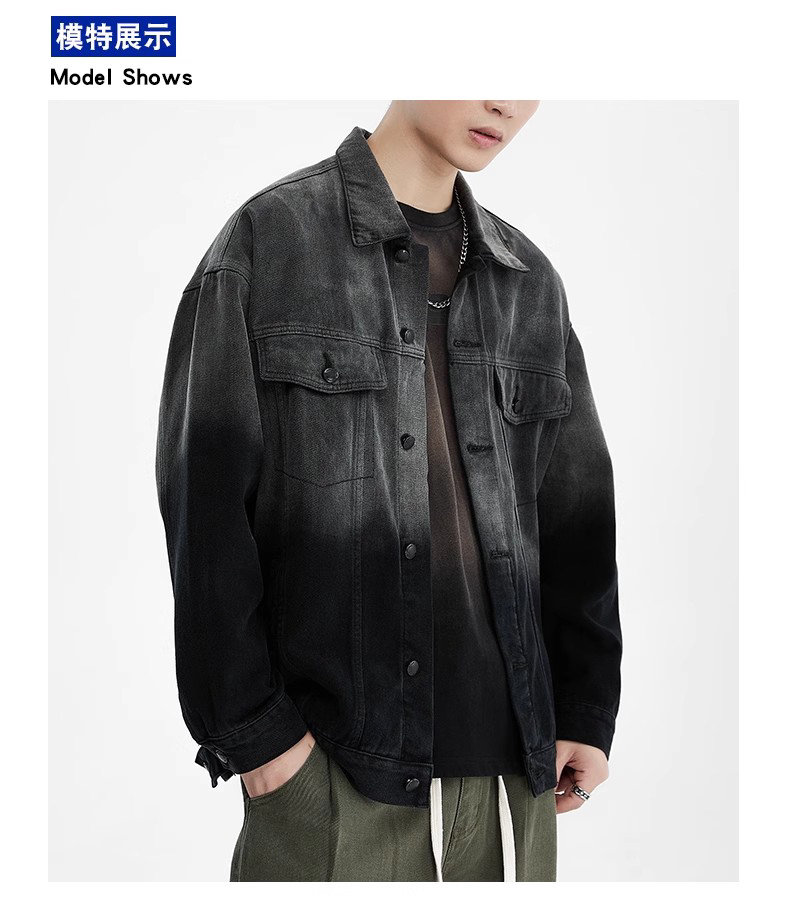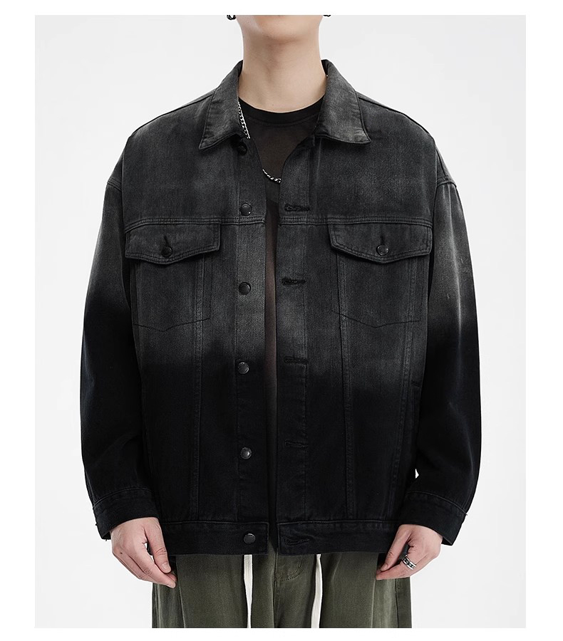 2025 New Gradient Black and Gray Denim Jacket for Men, Spring and Autumn Vintage High-End Style, Cool and Loose Workwear Jacket