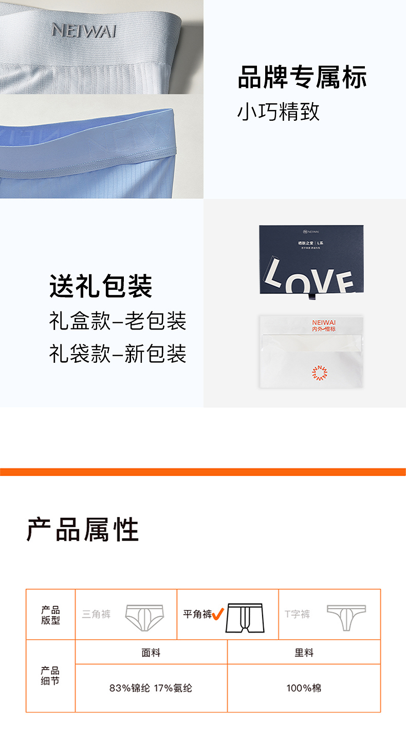 3 Pieces | Men's Lightweight Boxer Briefs with Orange Label Inside and Outside, Breathable and Comfortable, New Product Neiwai231Mu1504