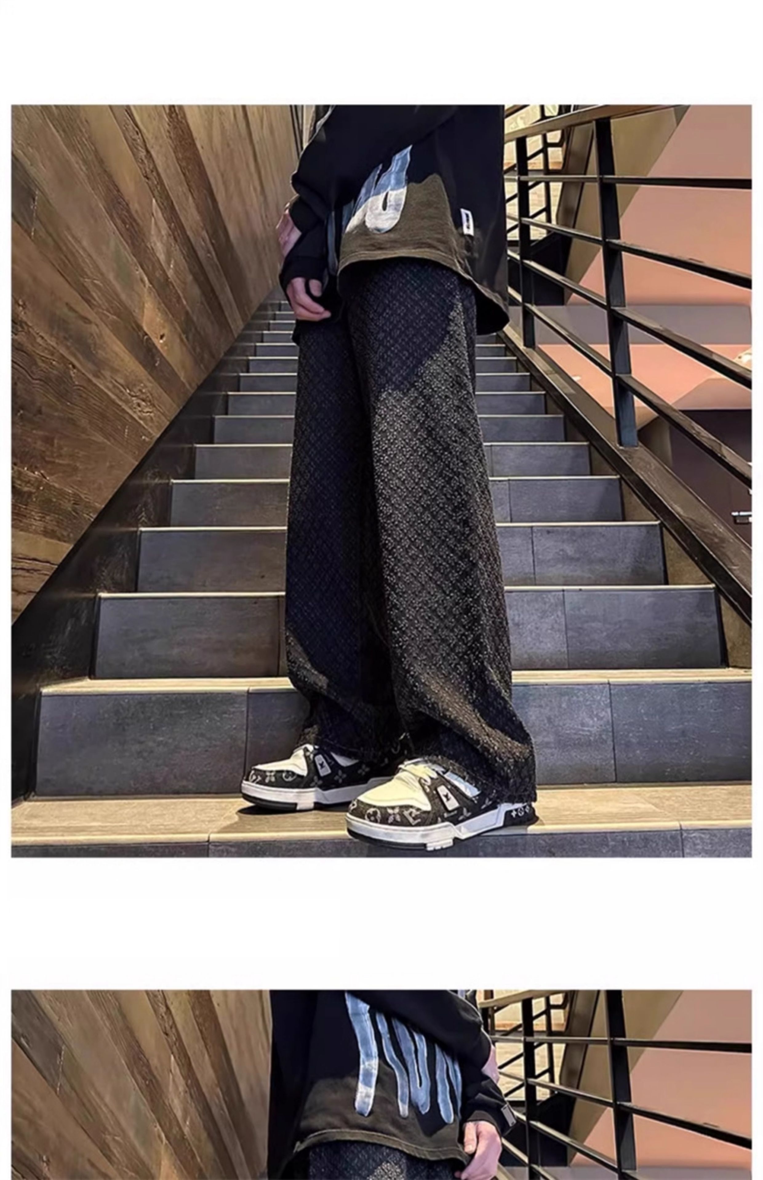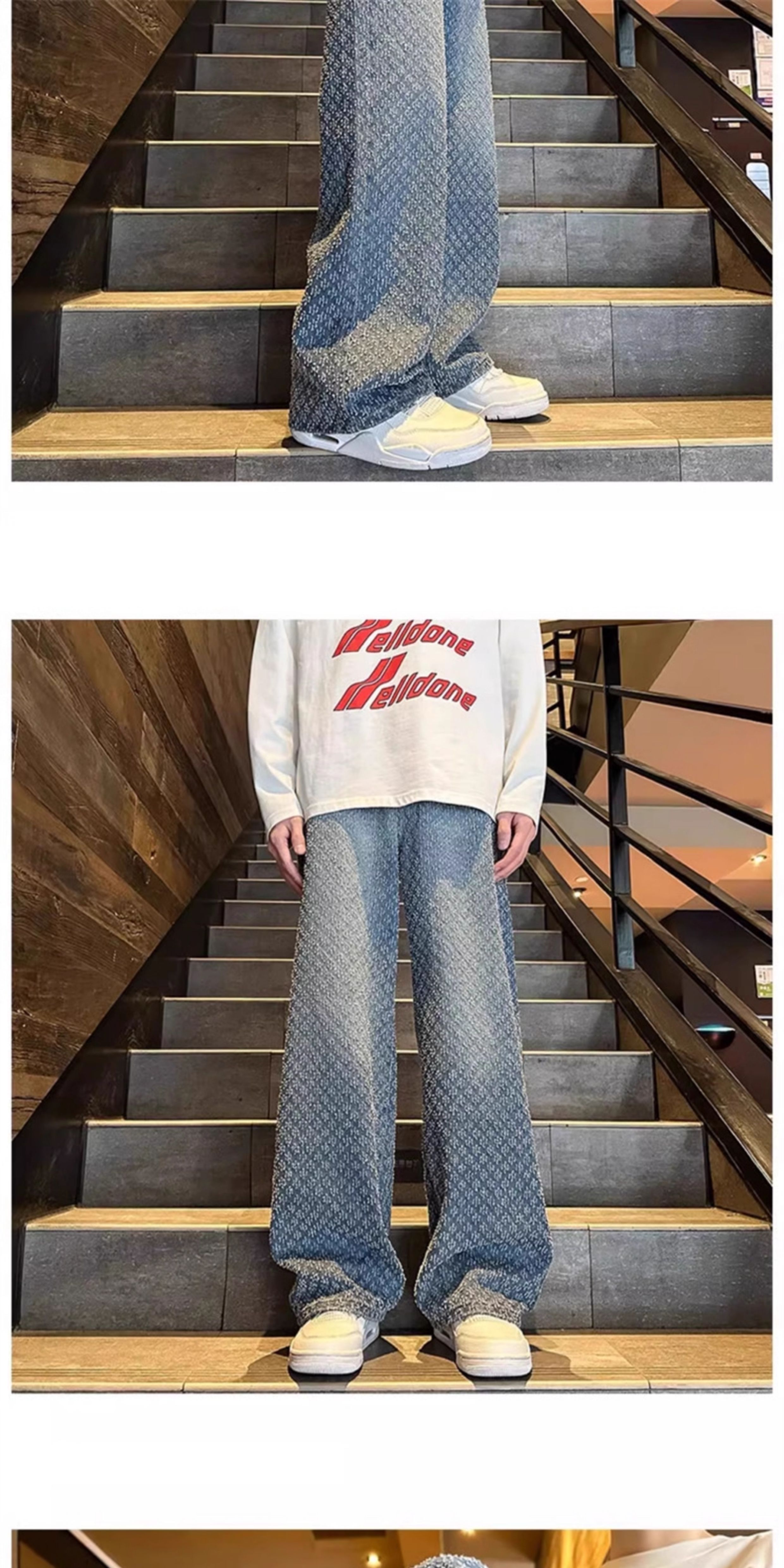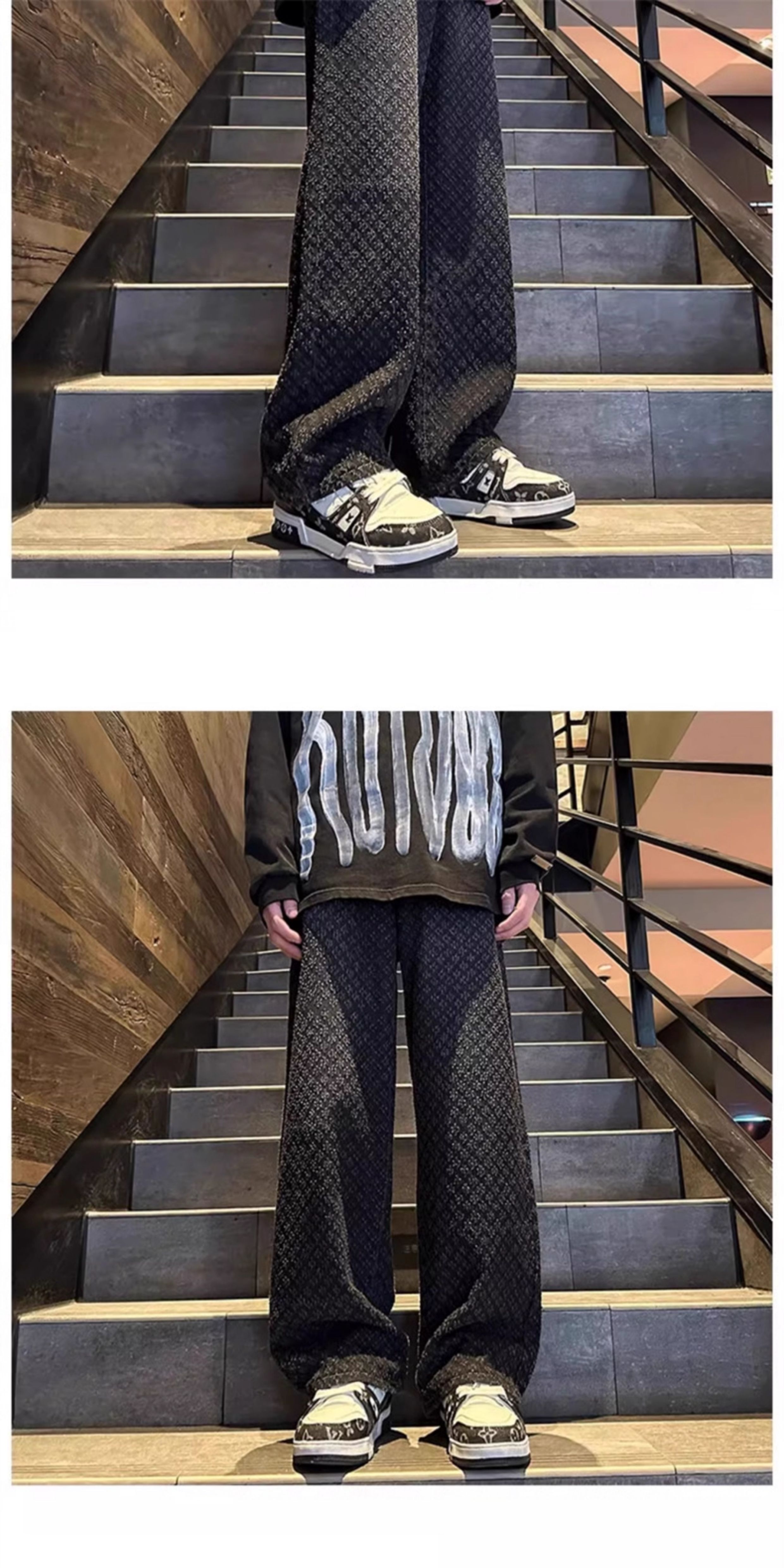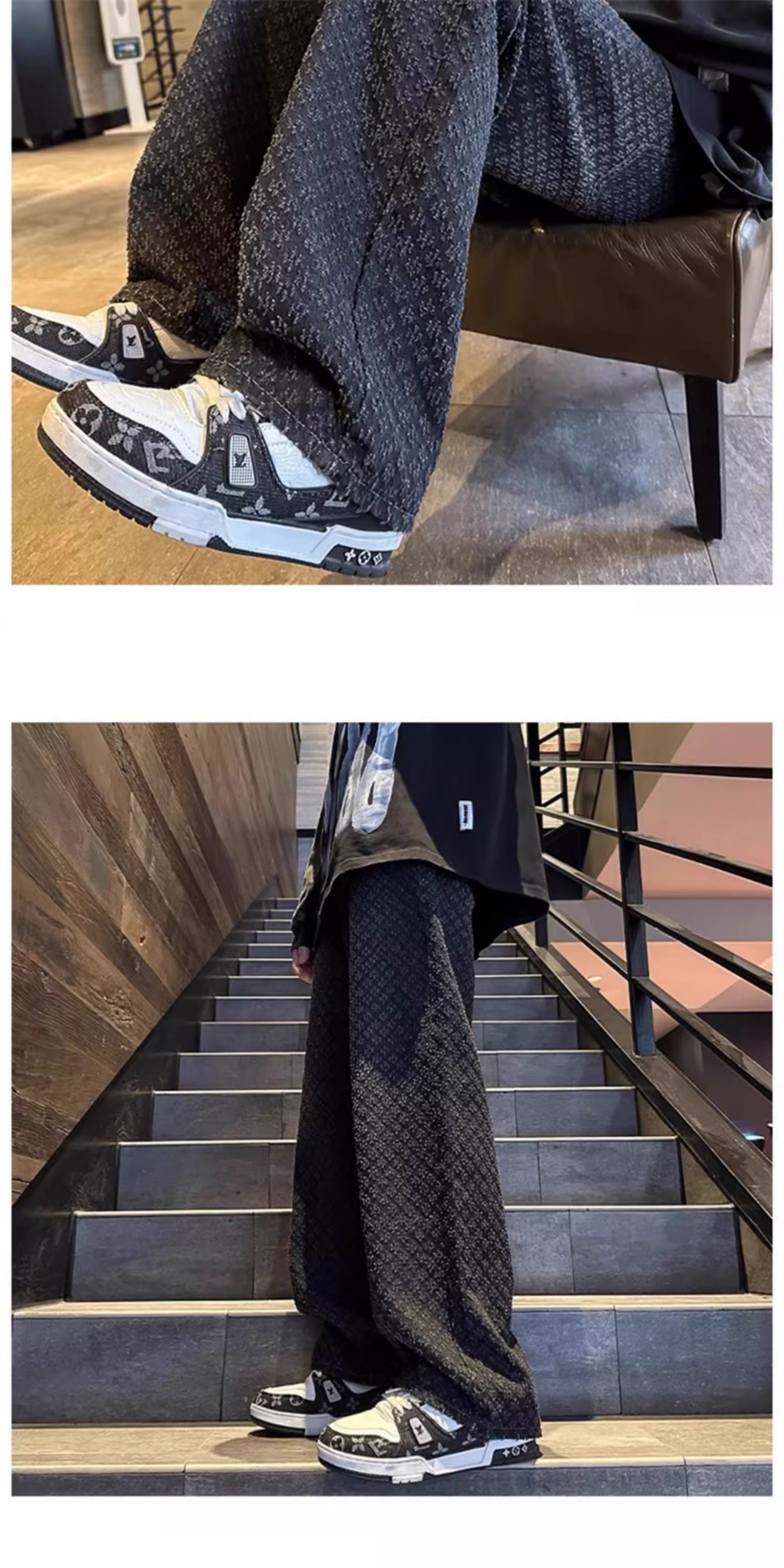 Ny Chanel-Style Jacquard Jeans for Men, 2025 Autumn American Trendy Brand Wide-Leg Pants, Loose Casual Straight-Leg Trousers