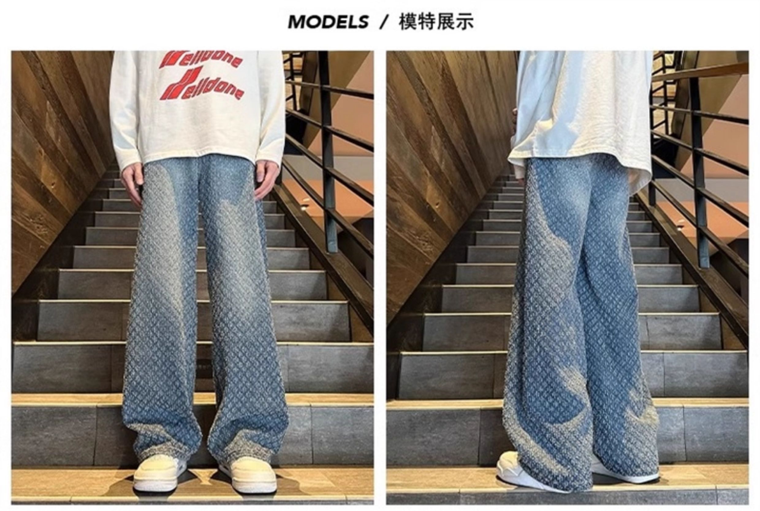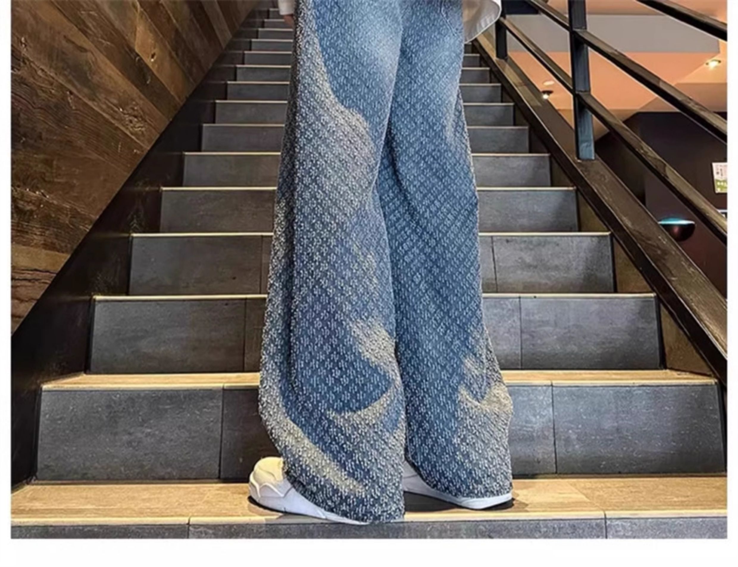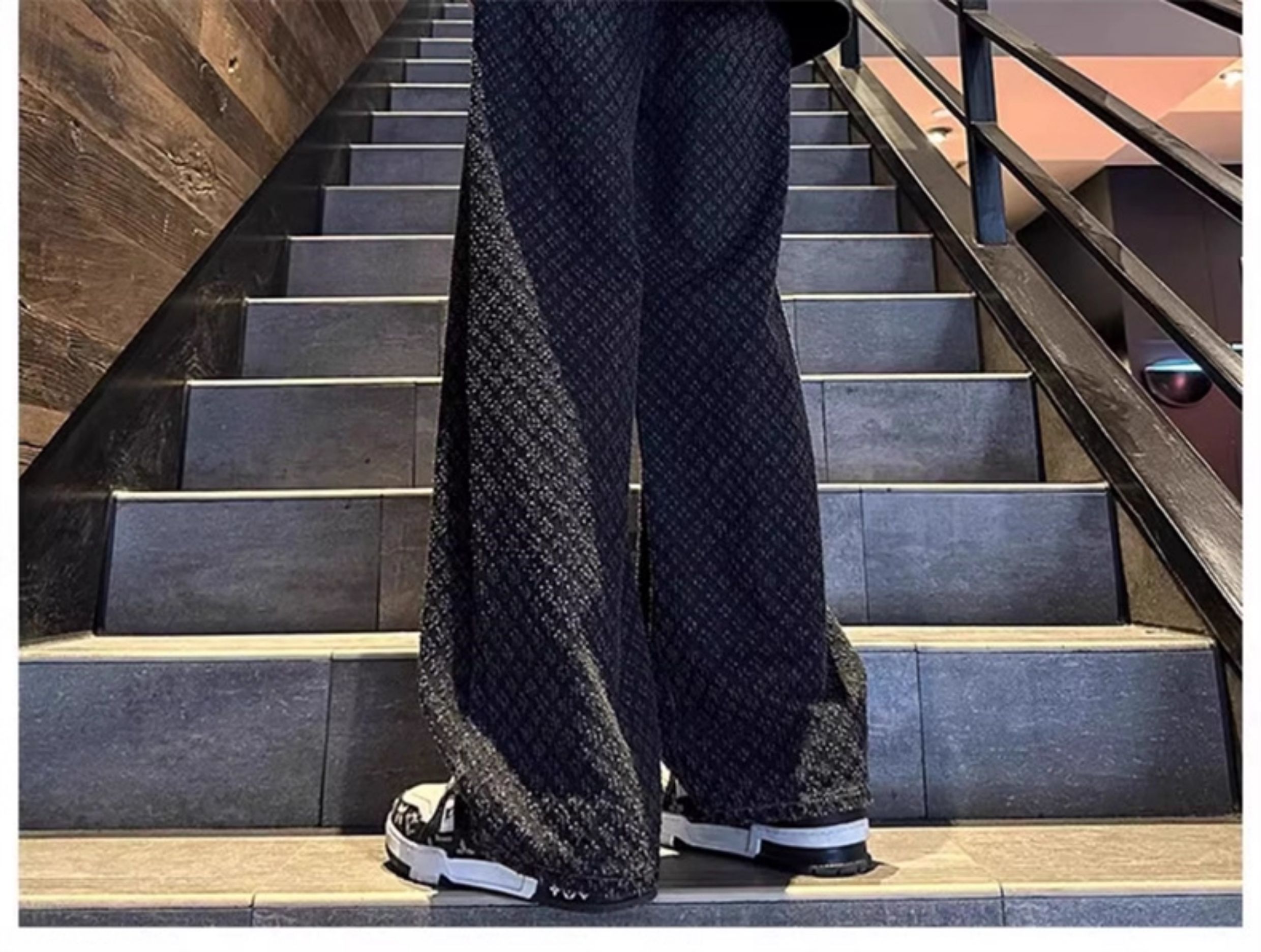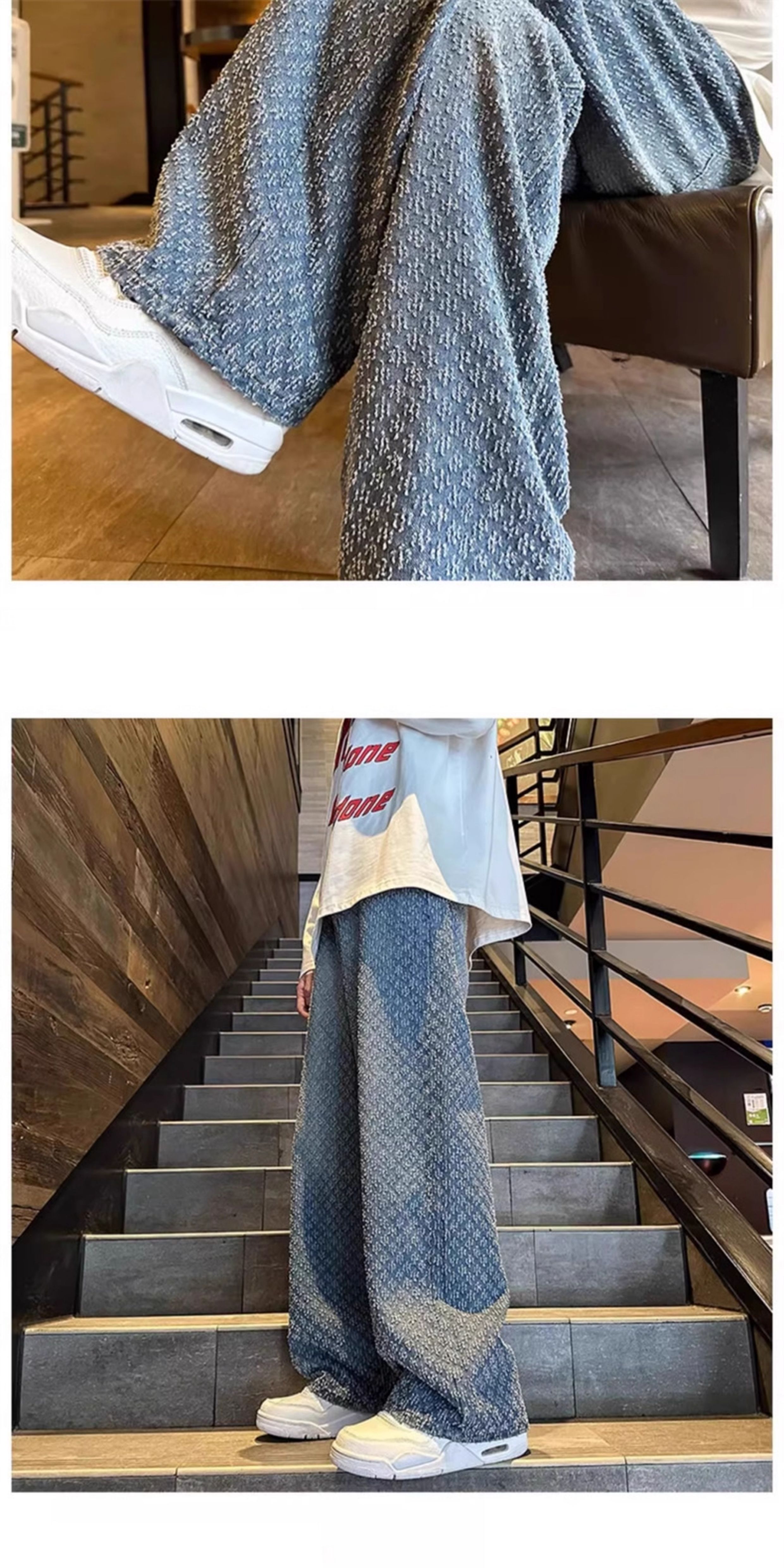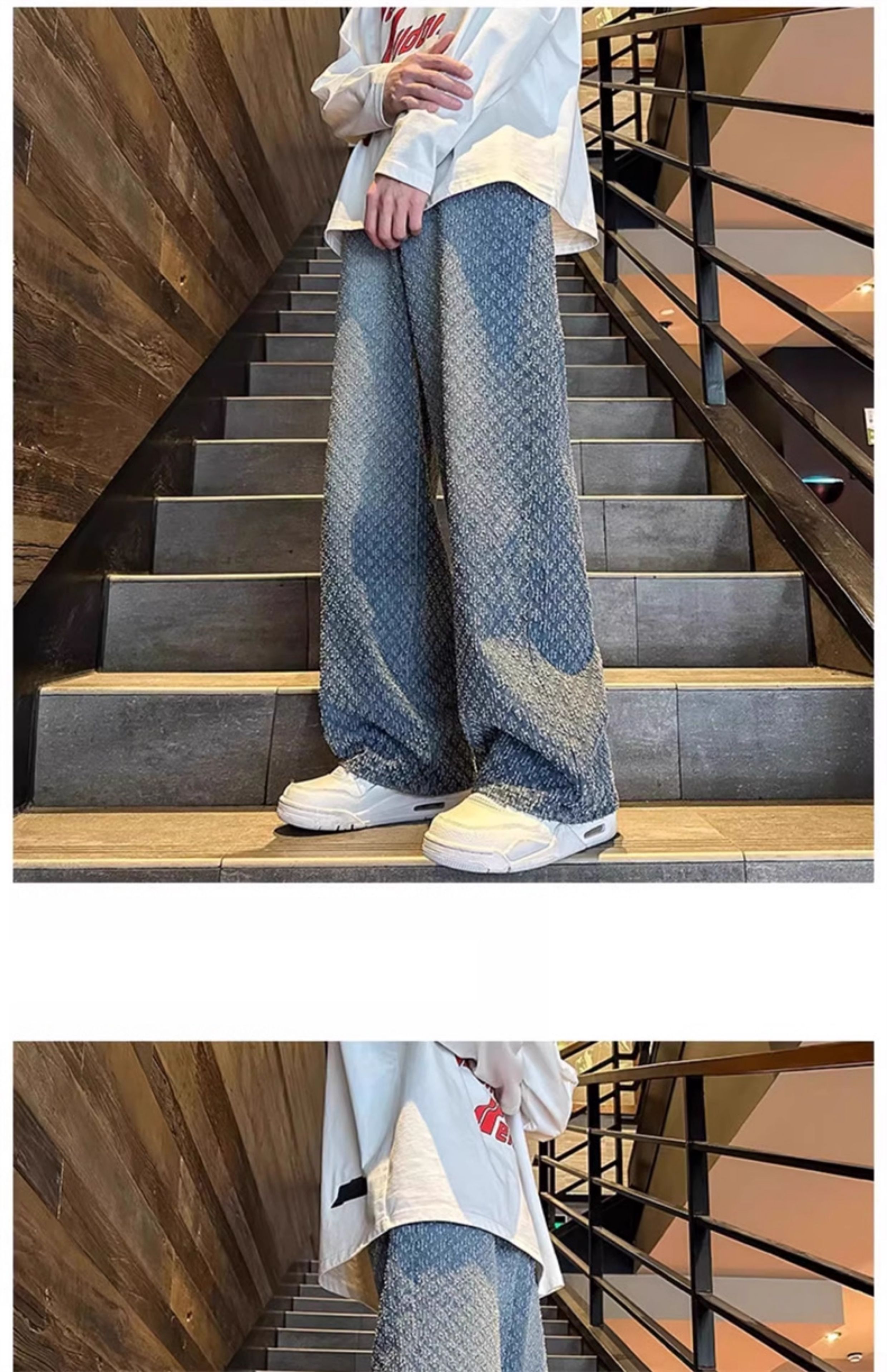 Ny Chanel-Style Jacquard Jeans for Men, 2025 Autumn American Trendy Brand Wide-Leg Pants, Loose Casual Straight-Leg Trousers