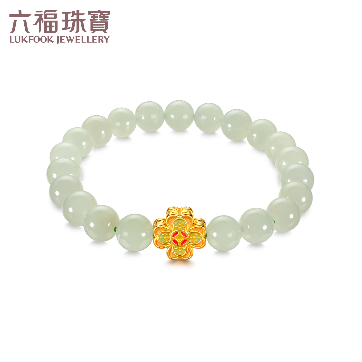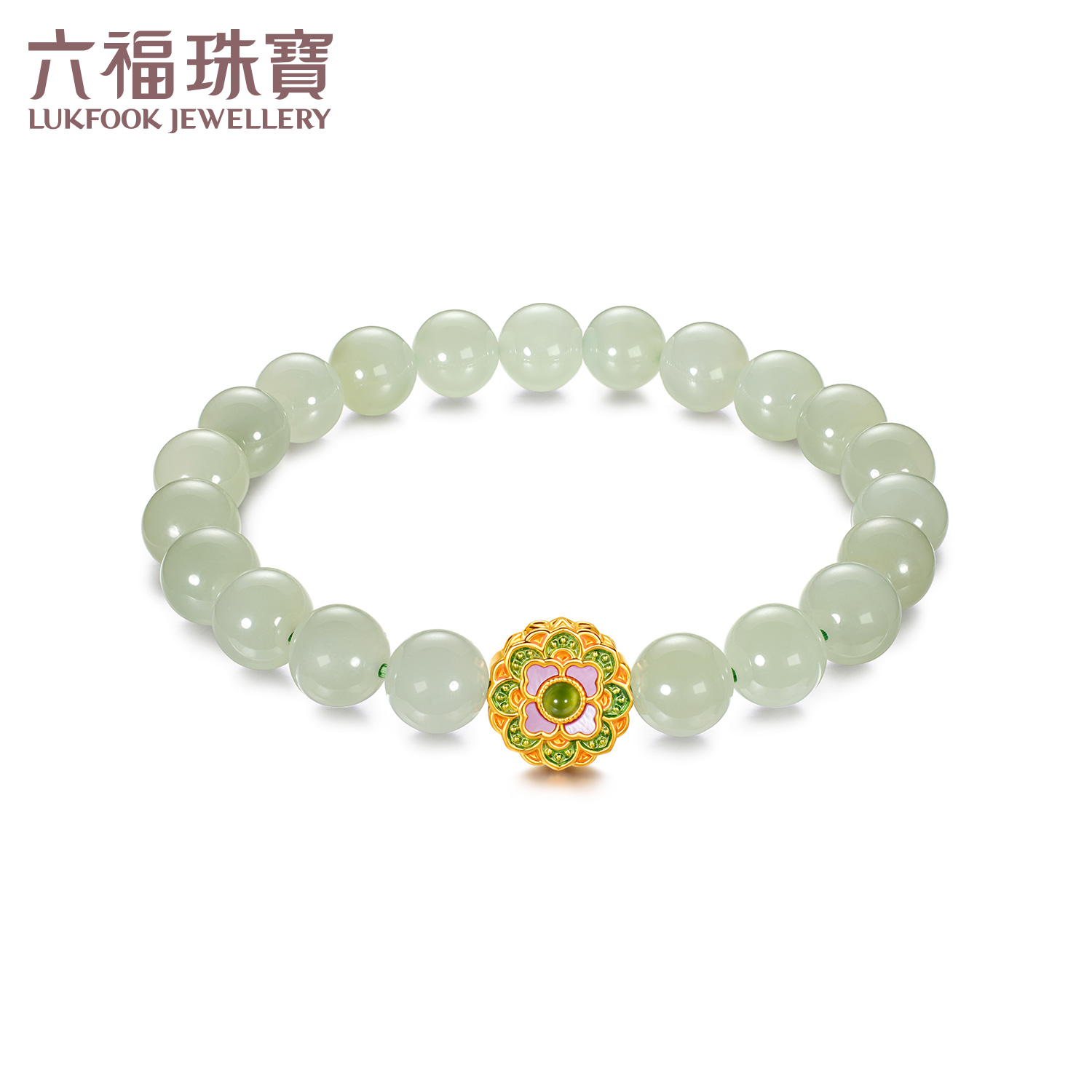 Liu Fu Jewelry Hundred Flowers Blessing Lotus Gold Bracelet Fortune Bead 6mm Hetian Jade Bracelet G31Tba1B0011