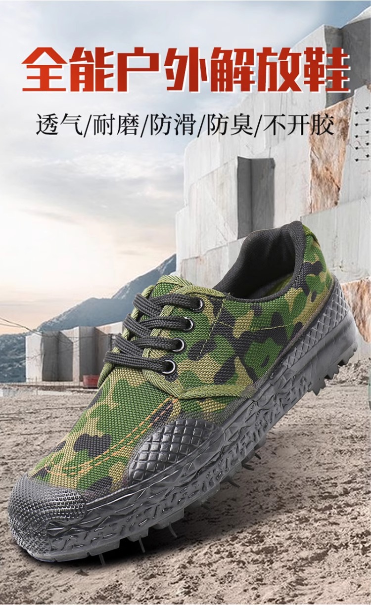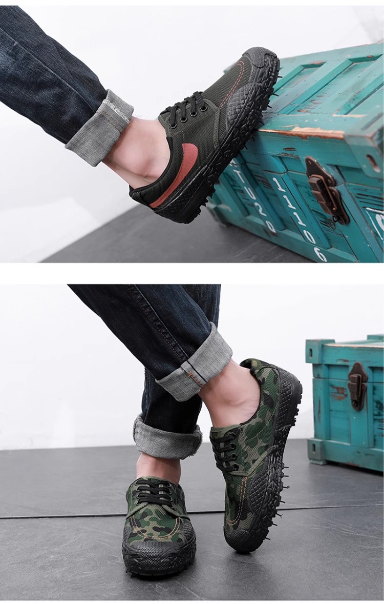 Jiefang Shoes, Labor Protection Shoes, Men's and Women's Construction Site Rubber Shoes, Work Shoes, Hiking Non-Slip Wear-Resistant Low-Top Shoes, High-Top Cloth Shoes, Camouflage