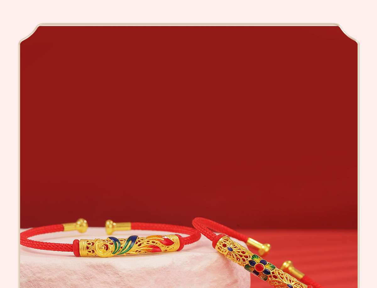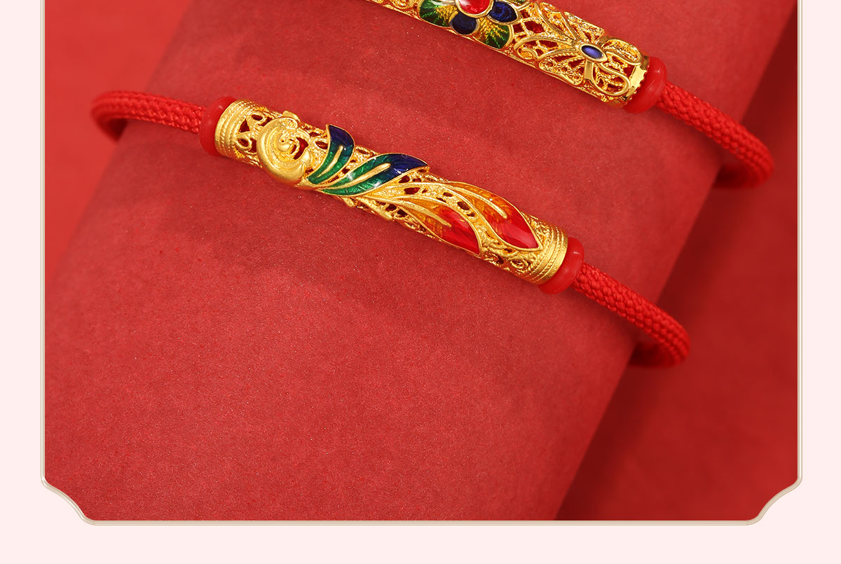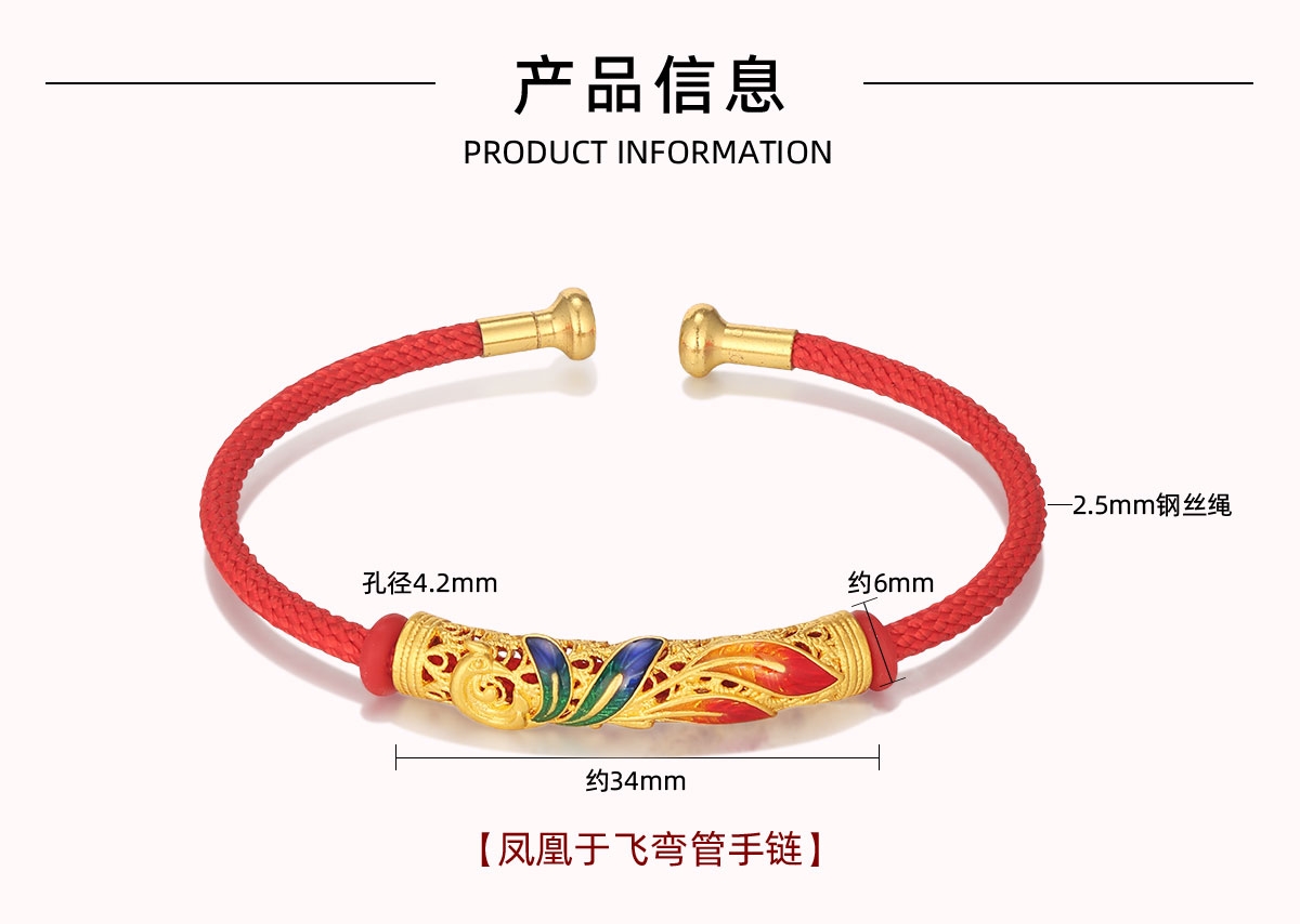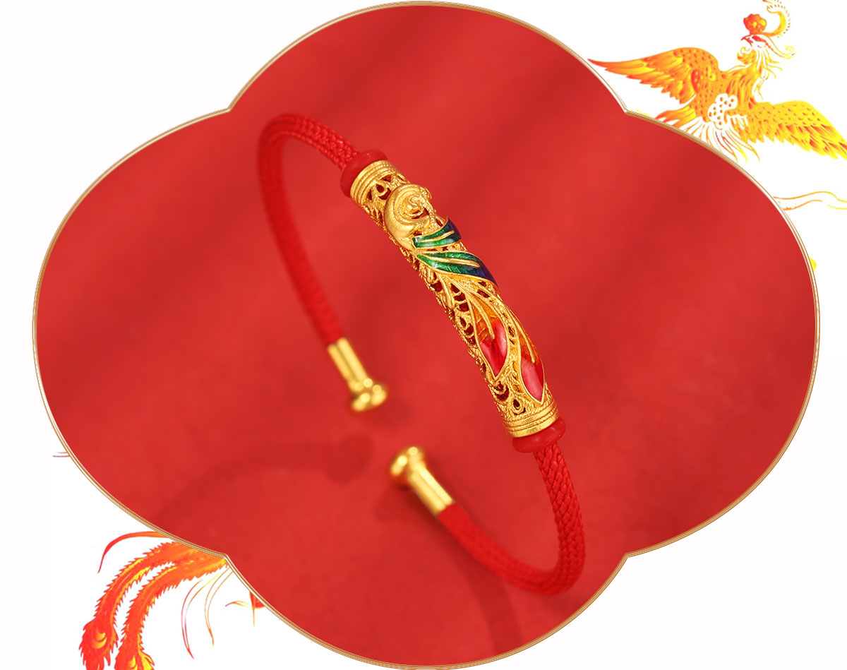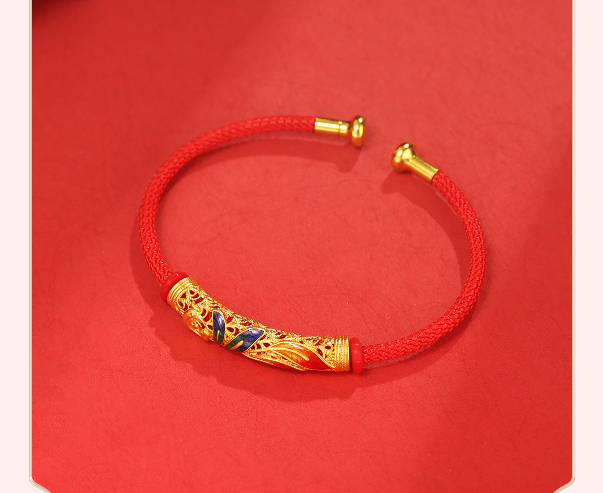 Gold Enamel Curved Tube Phoenix Flying Gold Curved Tube Bracelet for Women, Pure Gold Half Bracelet, Valentine's Day Gift for Wife or Girlfriend