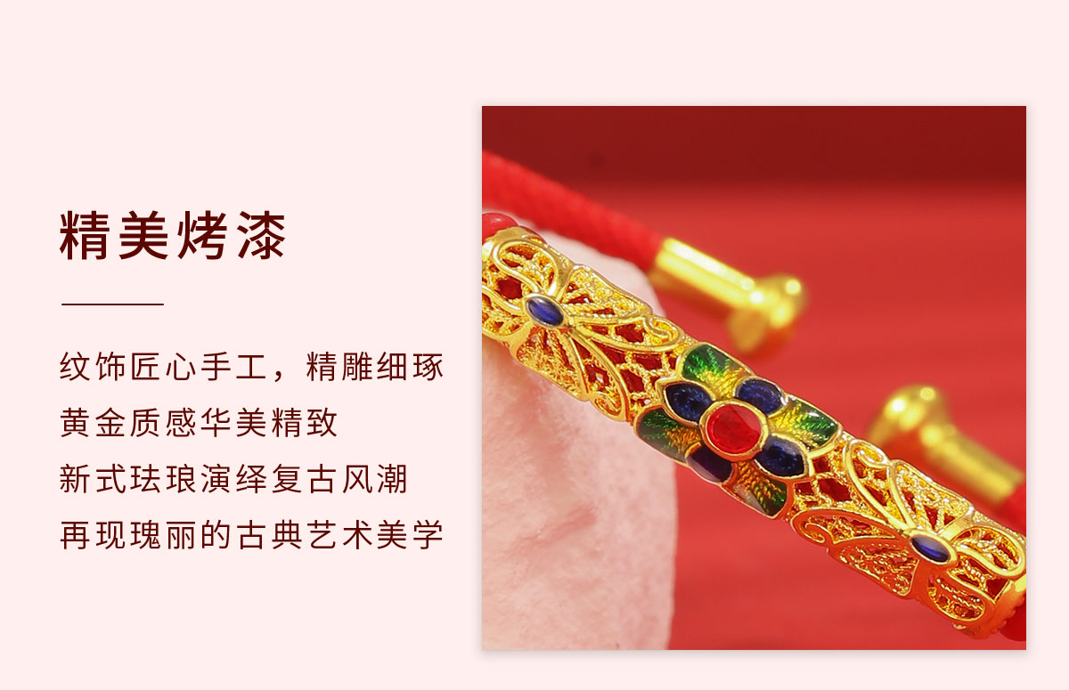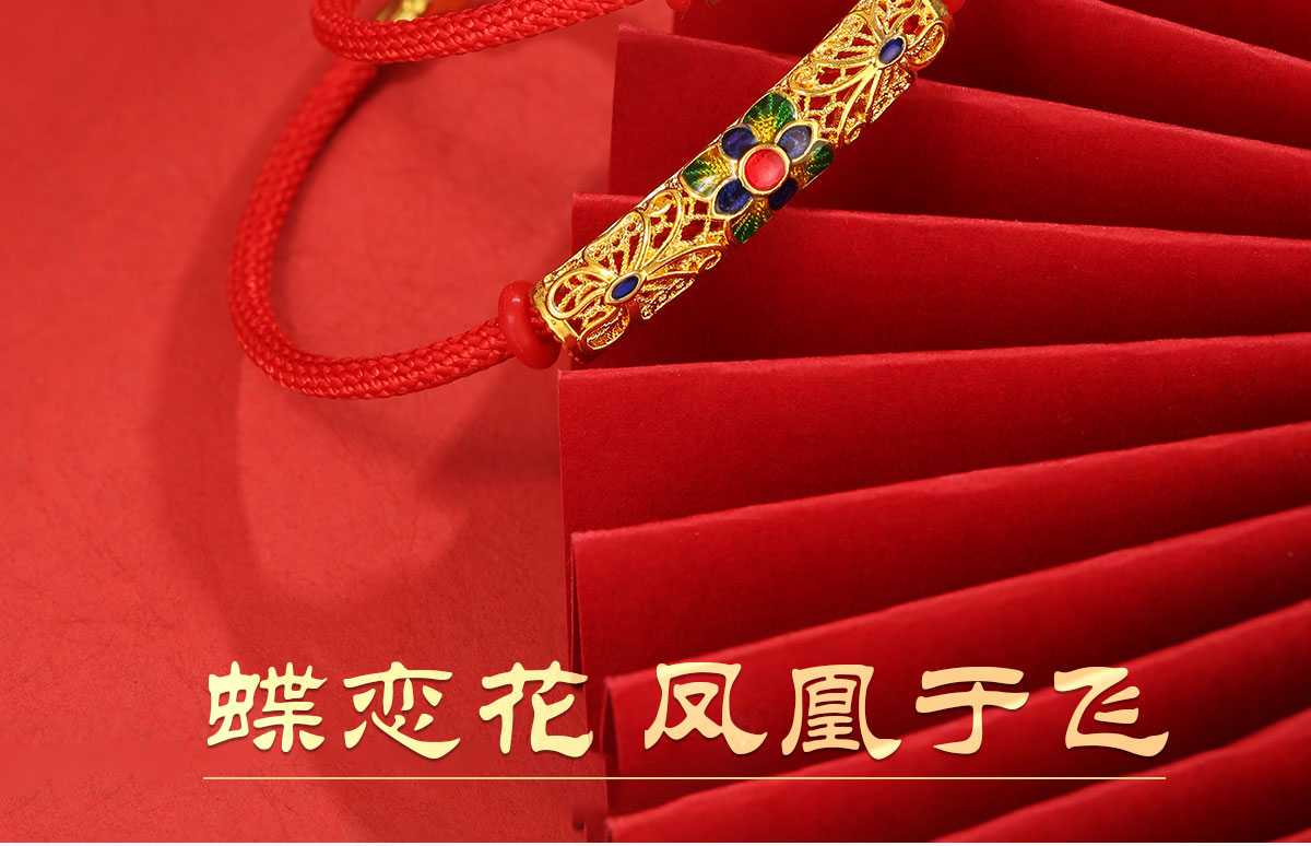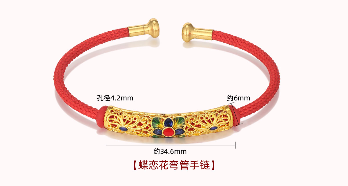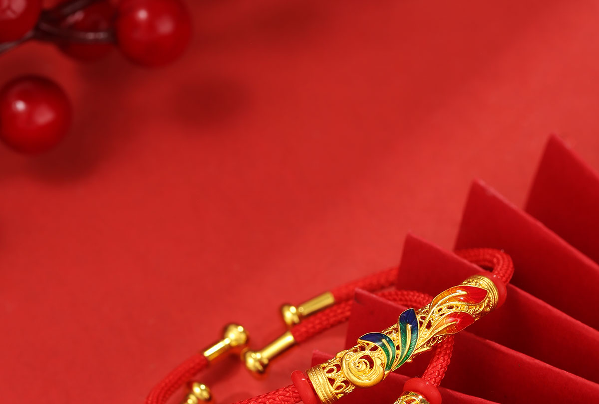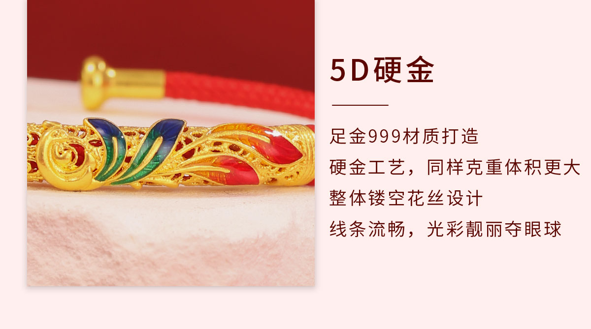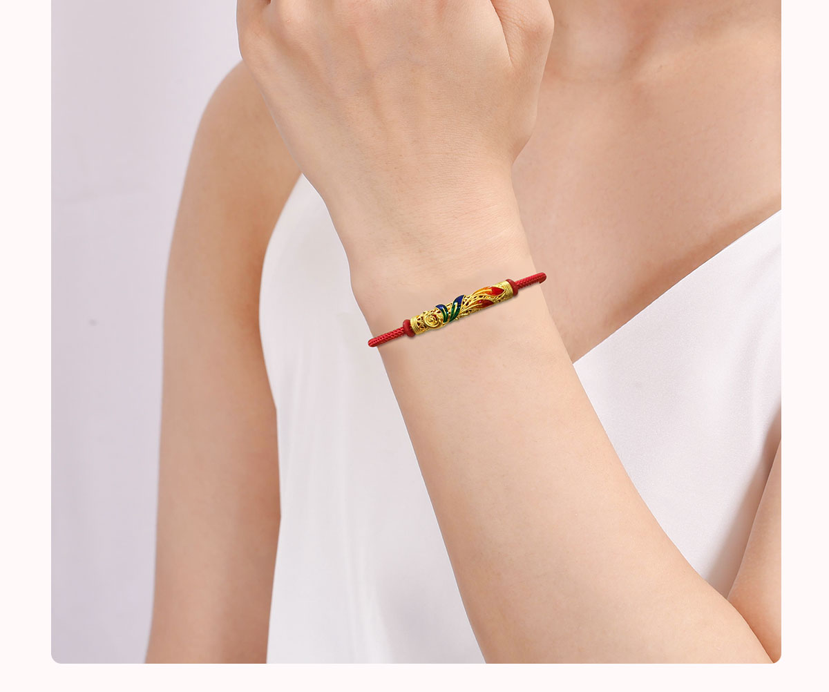 Gold Enamel Curved Tube Phoenix Flying Gold Curved Tube Bracelet for Women, Pure Gold Half Bracelet, Valentine's Day Gift for Wife or Girlfriend