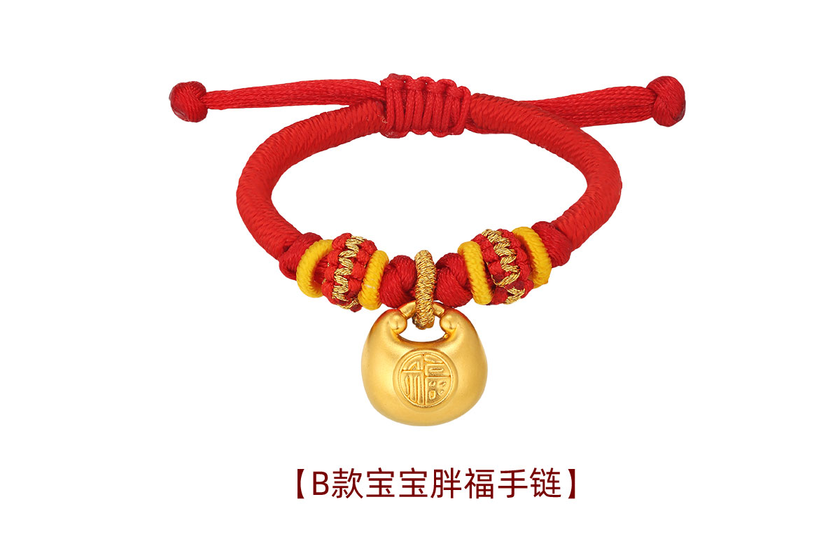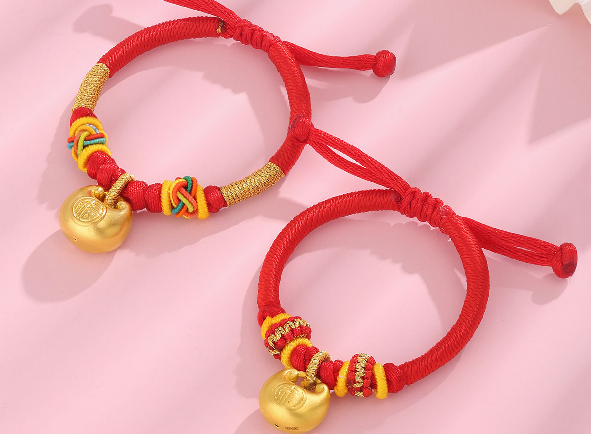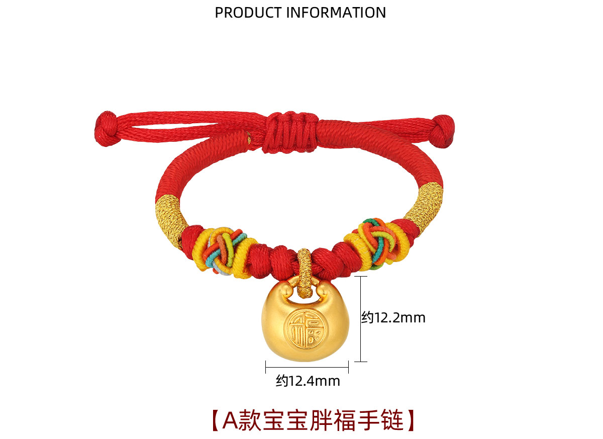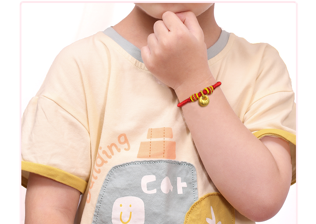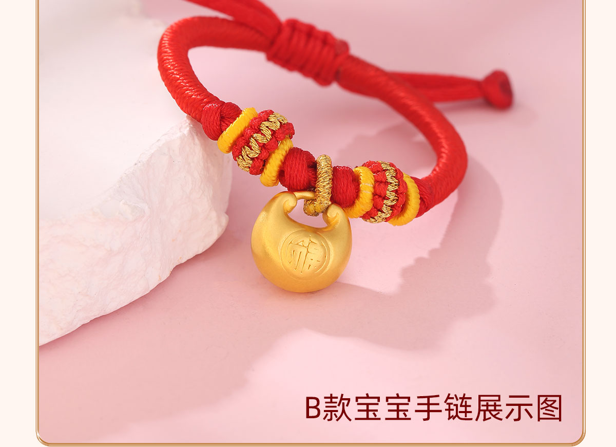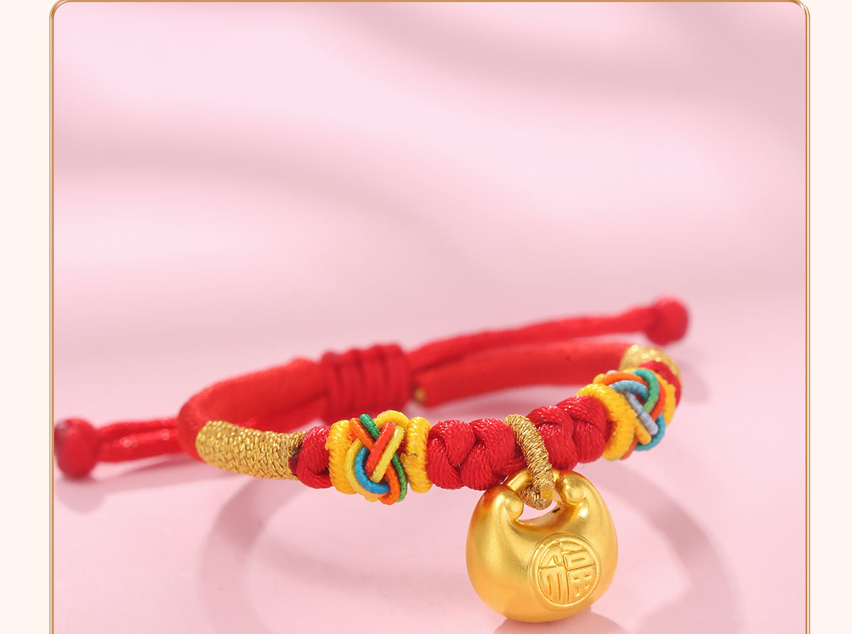 Baby Gold Chubby Fortune Bracelet, Pure Gold Nugget 999 Braided Rope Bracelet, Infant Full Month Celebration, Children's First Birthday Gold Jewelry