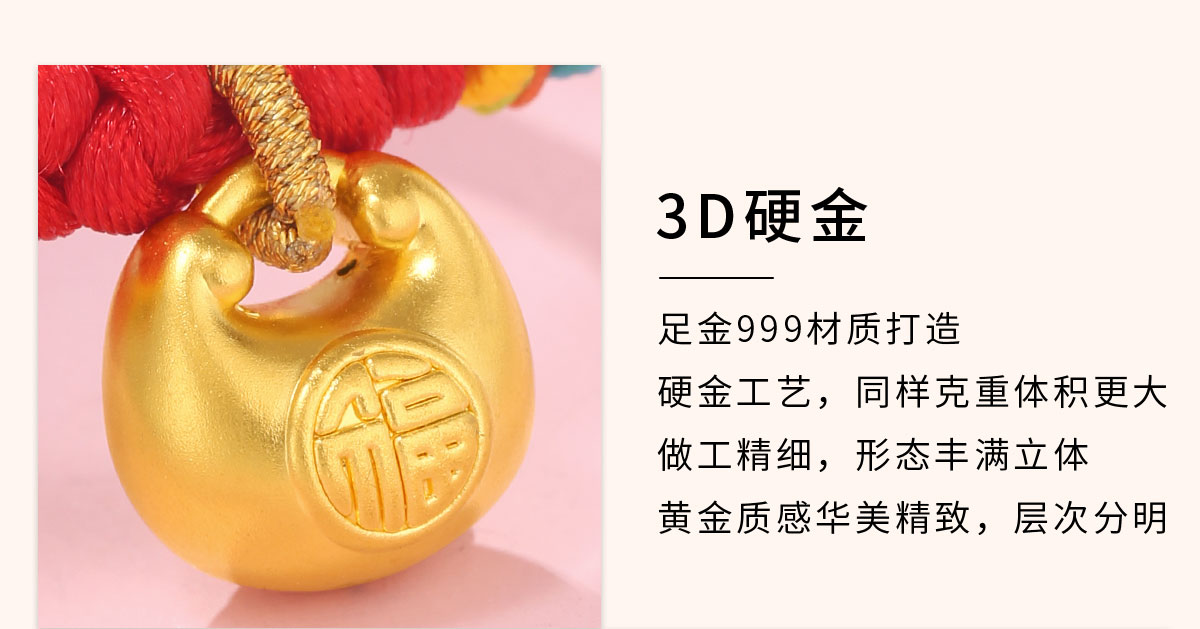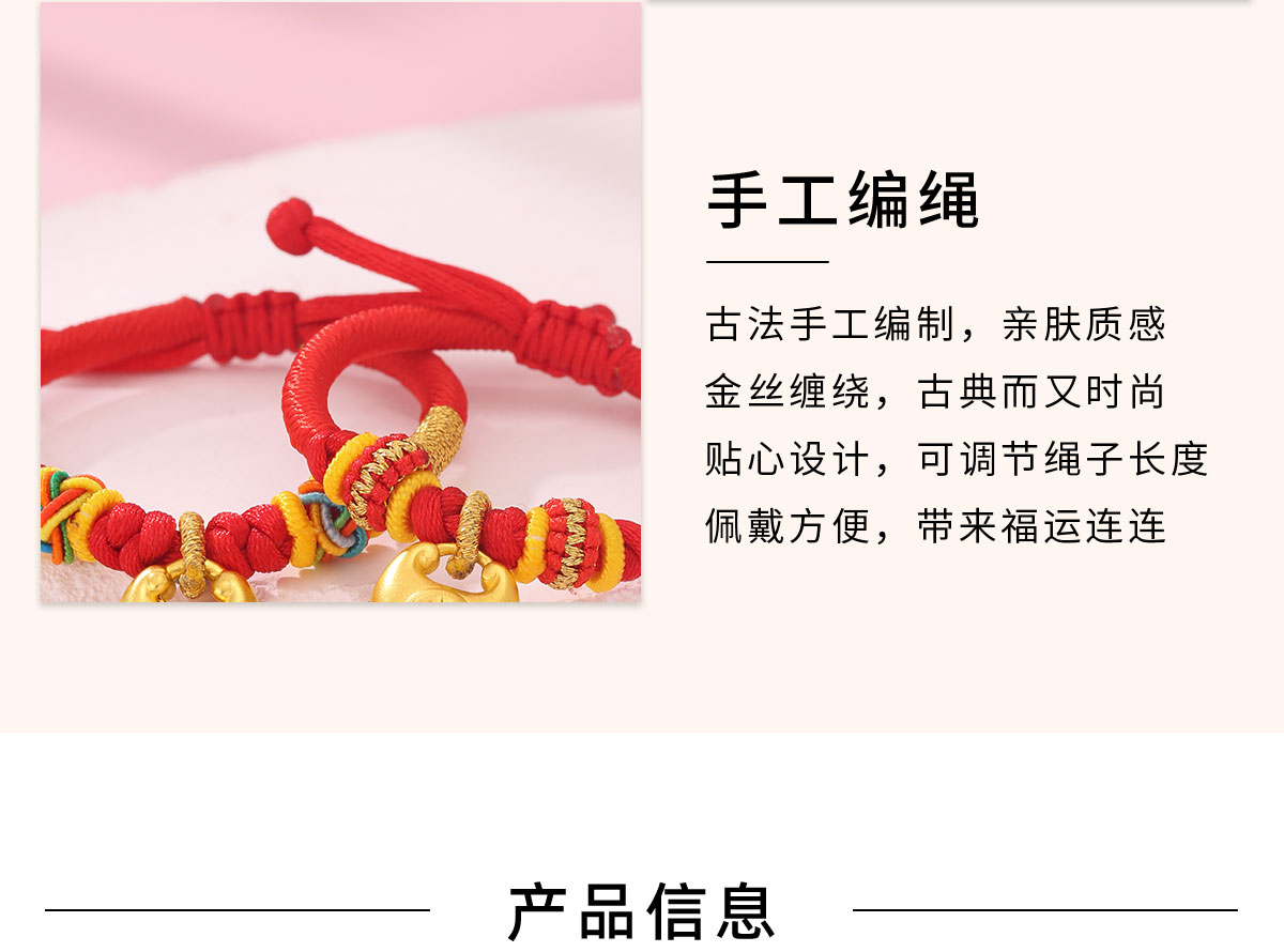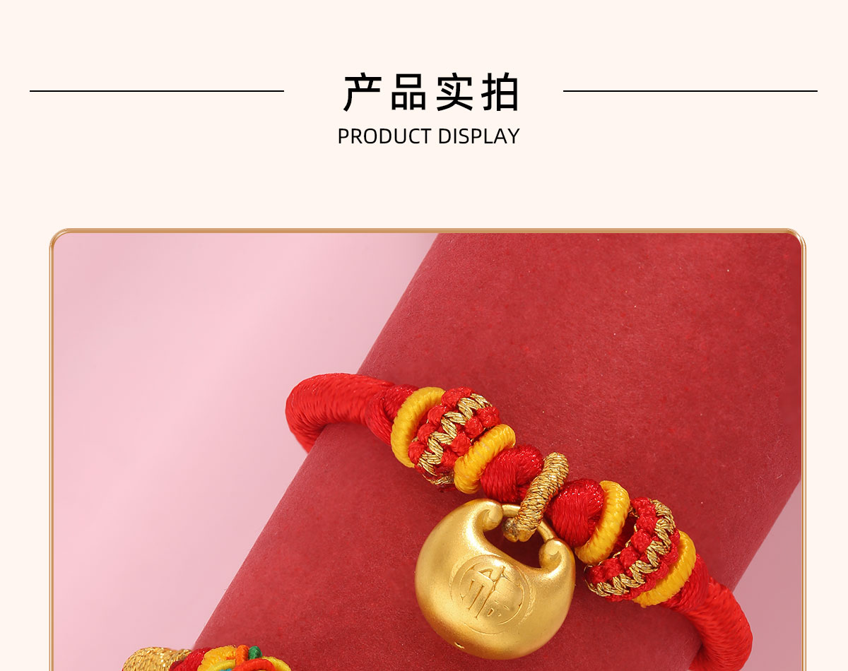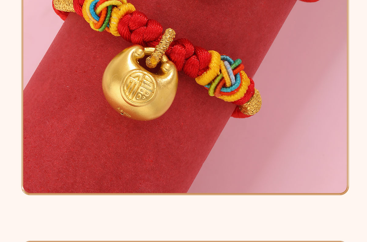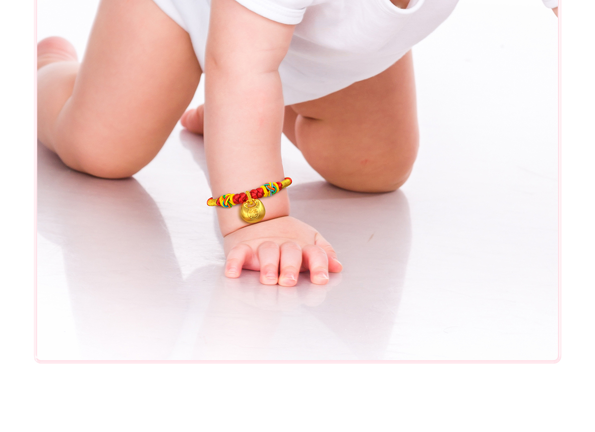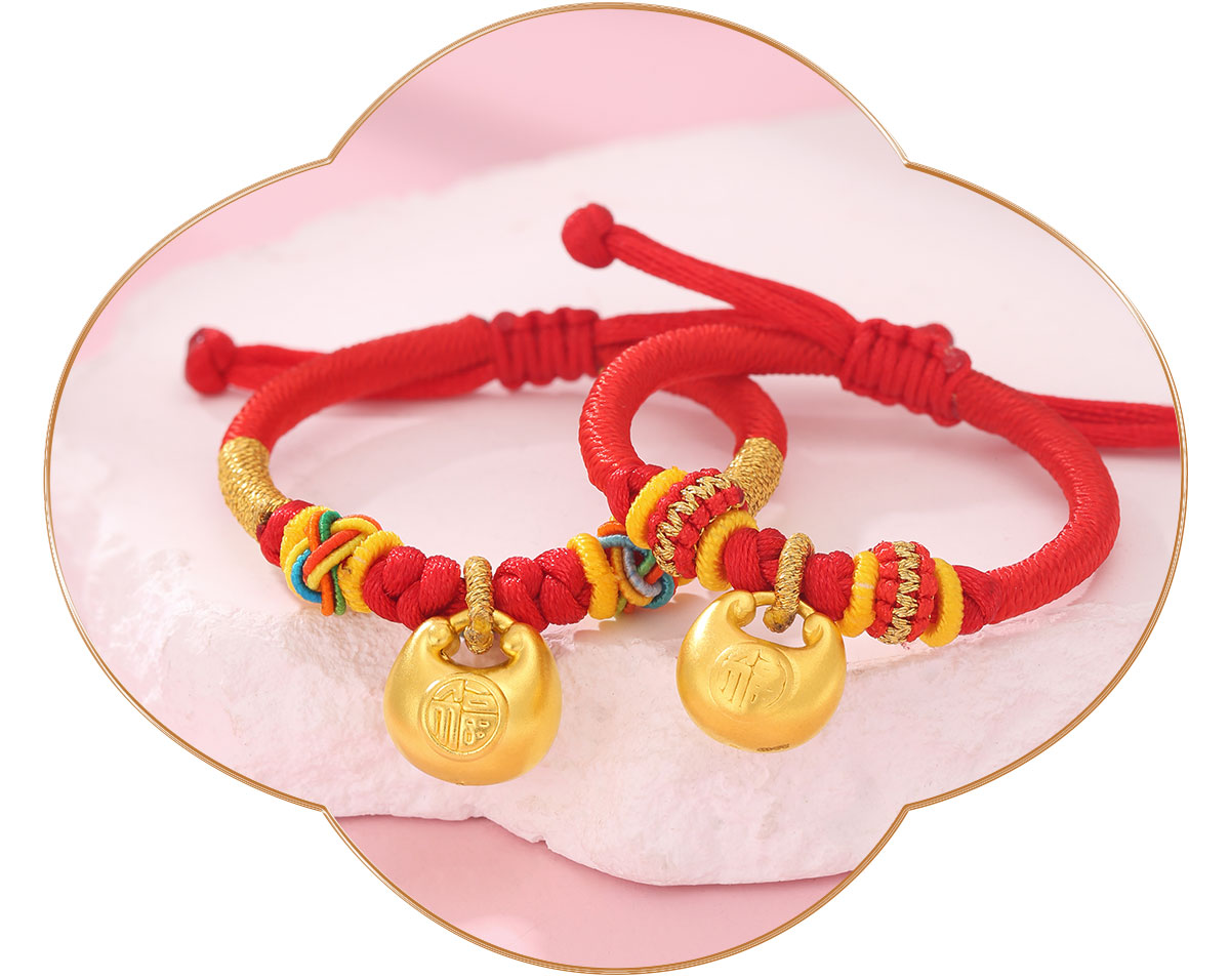 Baby Gold Chubby Fortune Bracelet, Pure Gold Nugget 999 Braided Rope Bracelet, Infant Full Month Celebration, Children's First Birthday Gold Jewelry