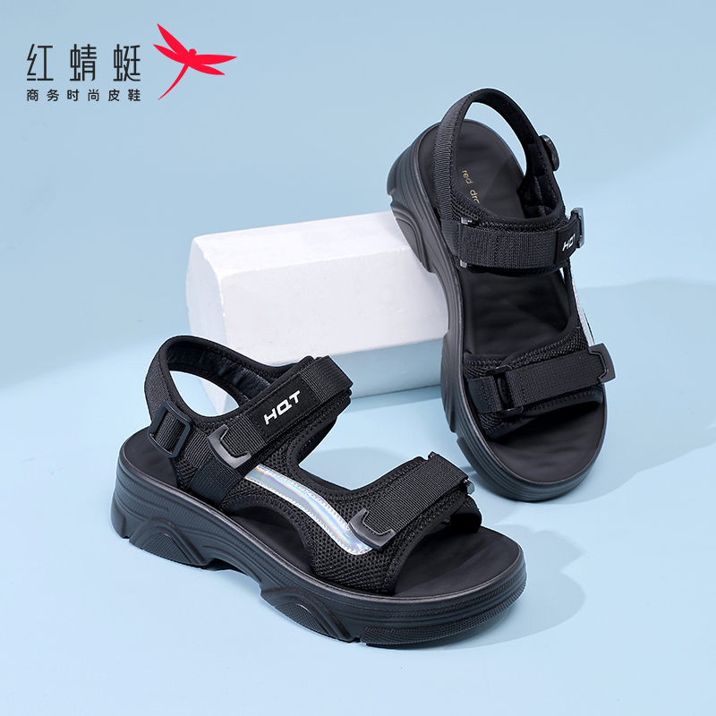 Red Dragonfly Thick-Soled Sports Sandals for Women, Summer Breathable Height-Increasing Women's Shoes, Soft-Soled Platform Casual Beach Shoes, Lightweight