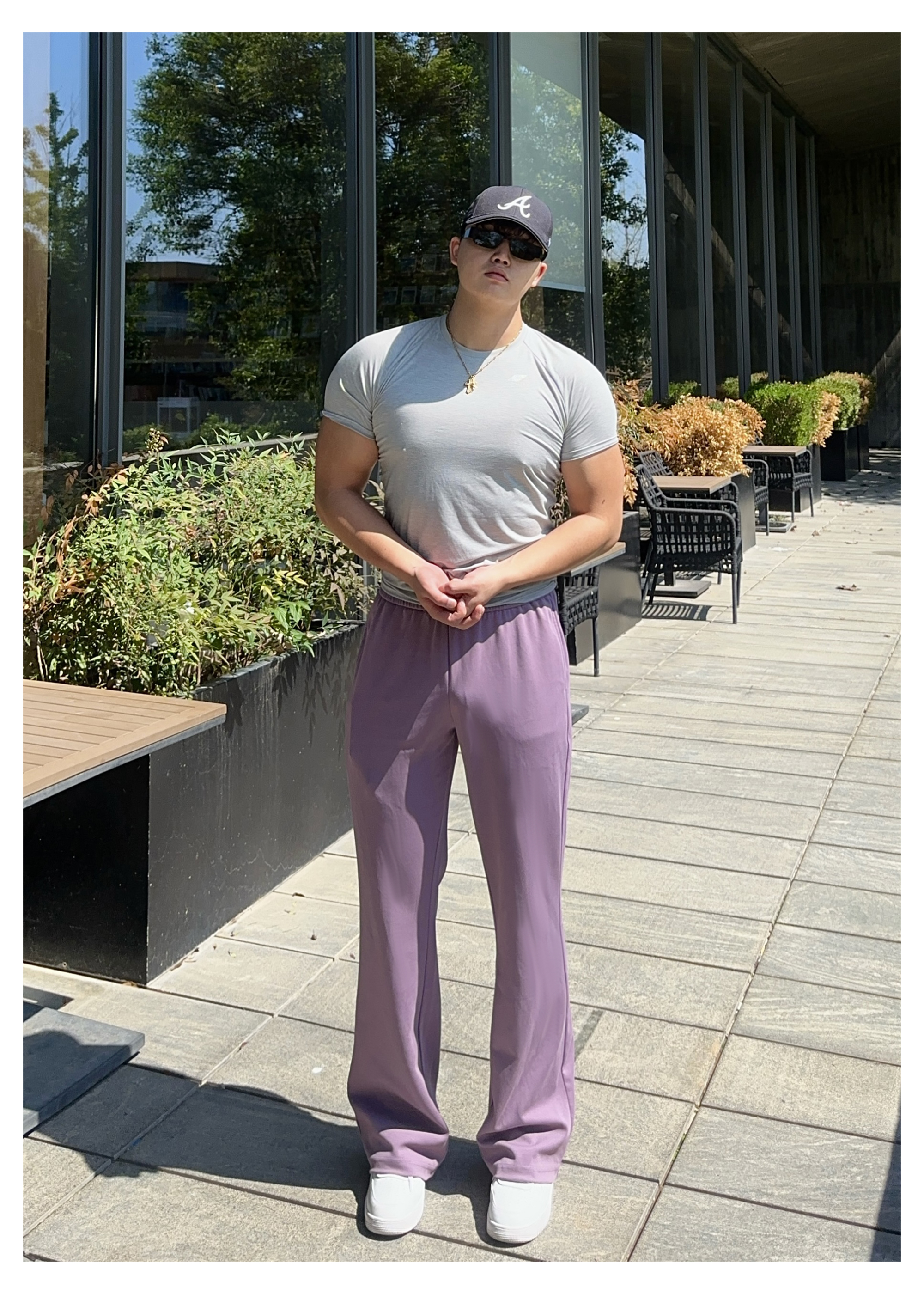 Sinonome 340g Four Seasons/520G Fleece-Lined Air Layer Flared Versatile Sweatpants Long Pants No Bulging