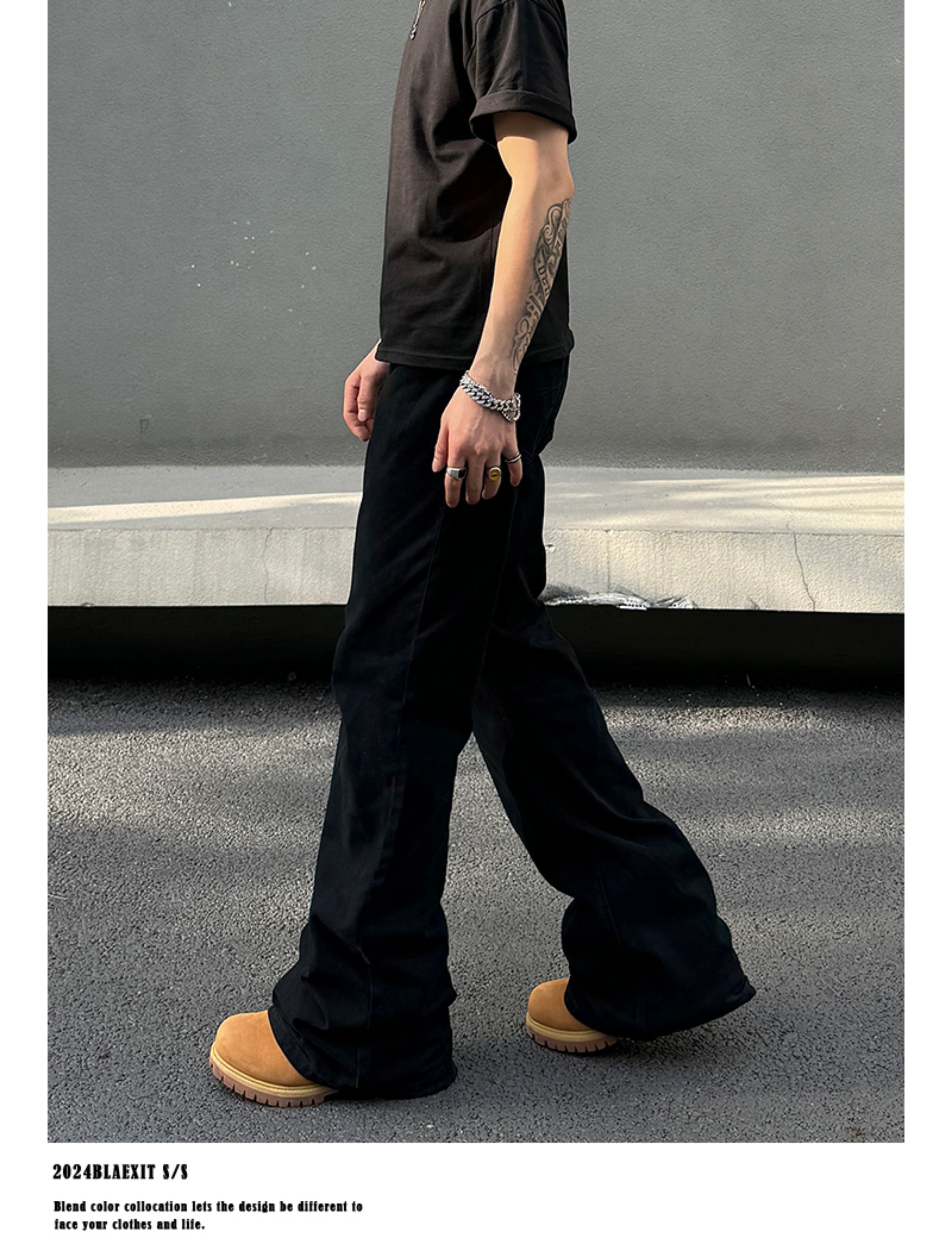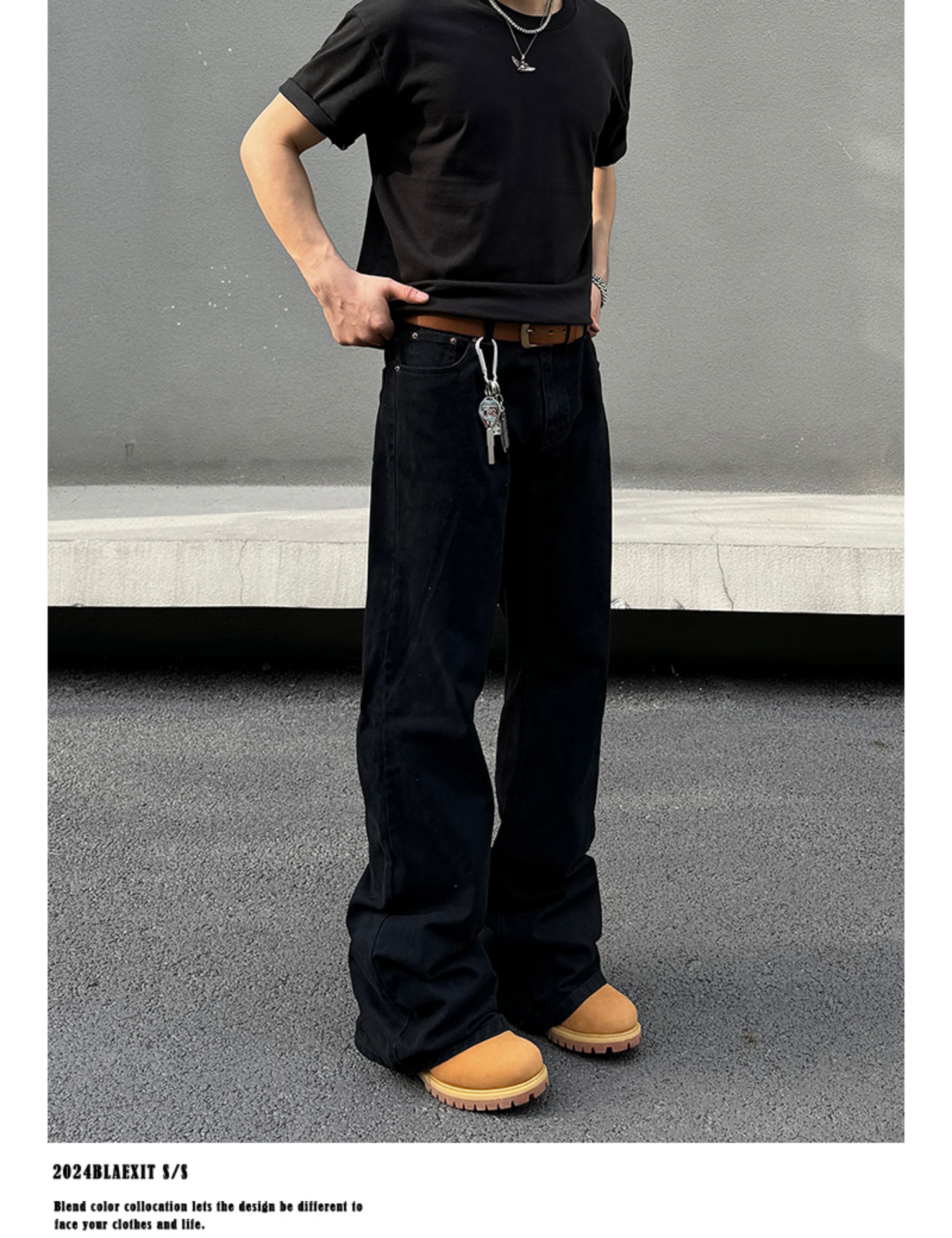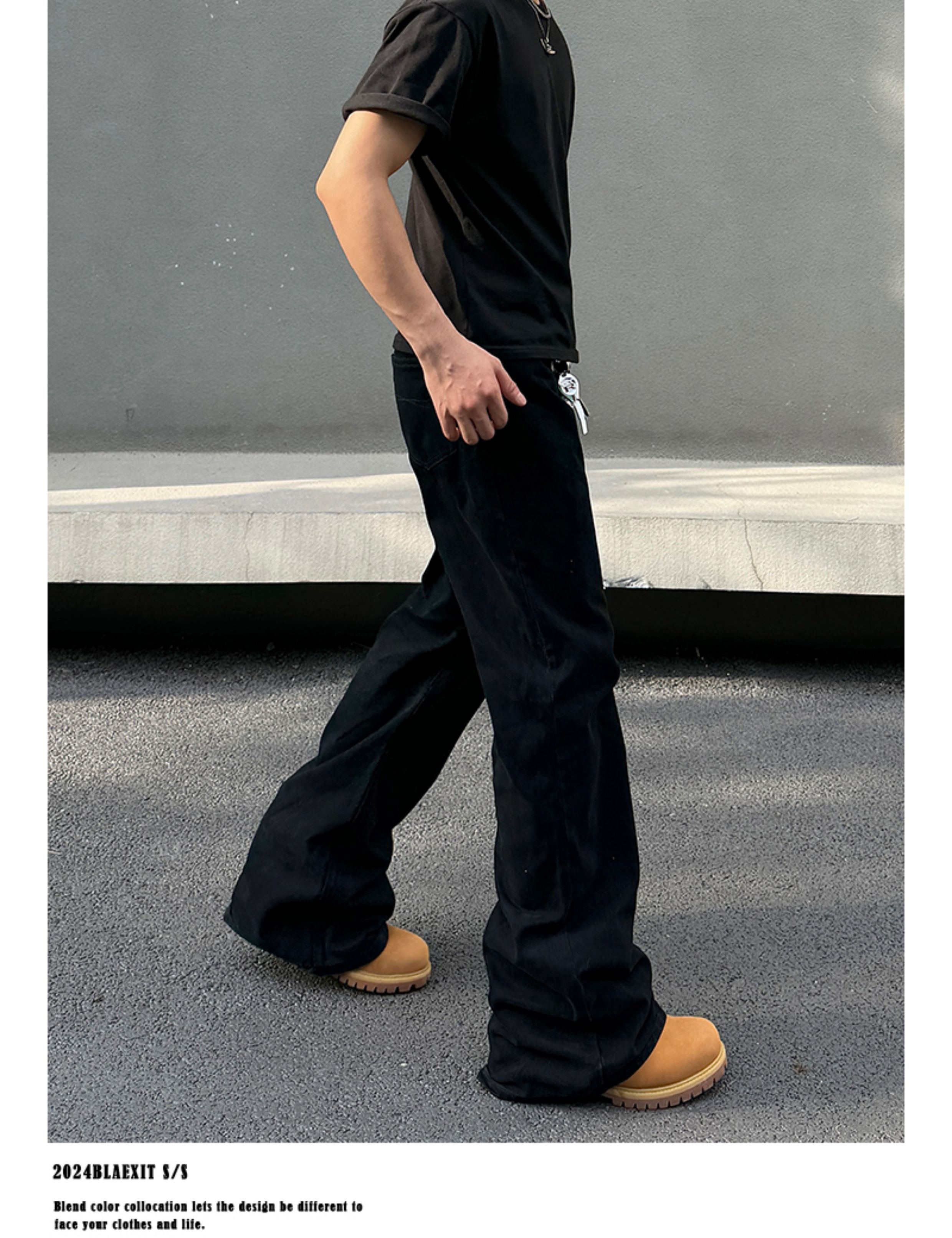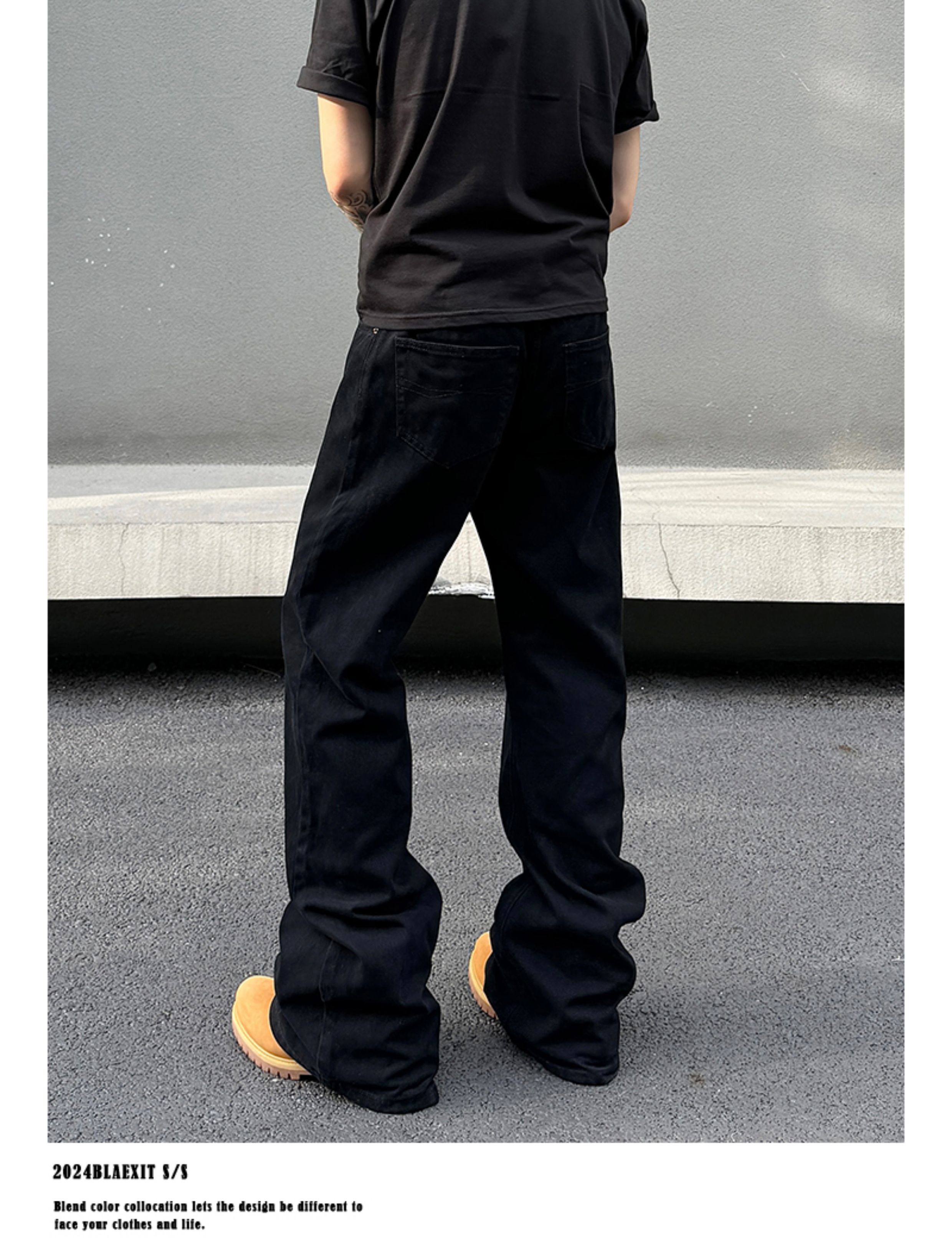 Blaexit Paris Bootcut Black Curved Hem Flared Jeans American Retro Distressed Slimming Straight Pants