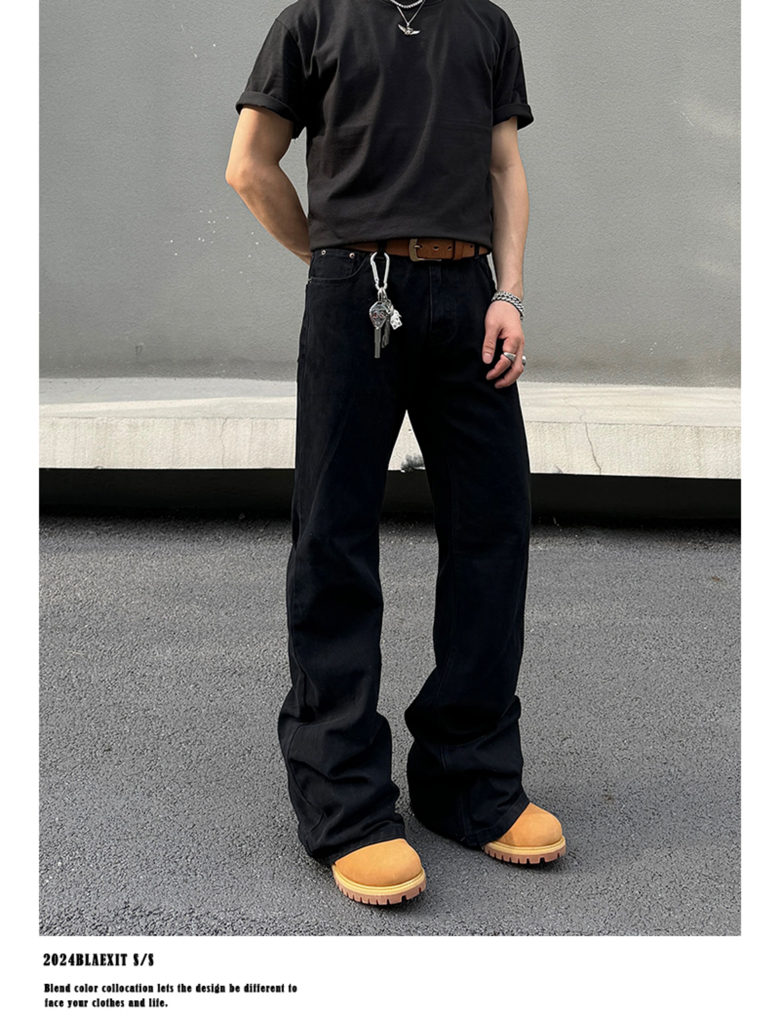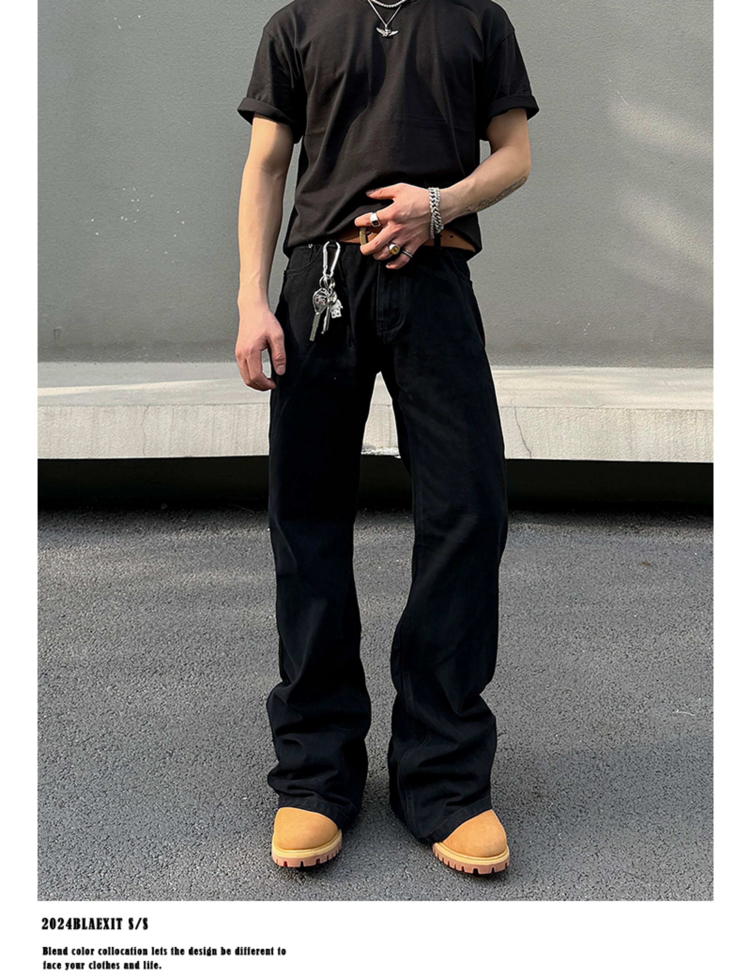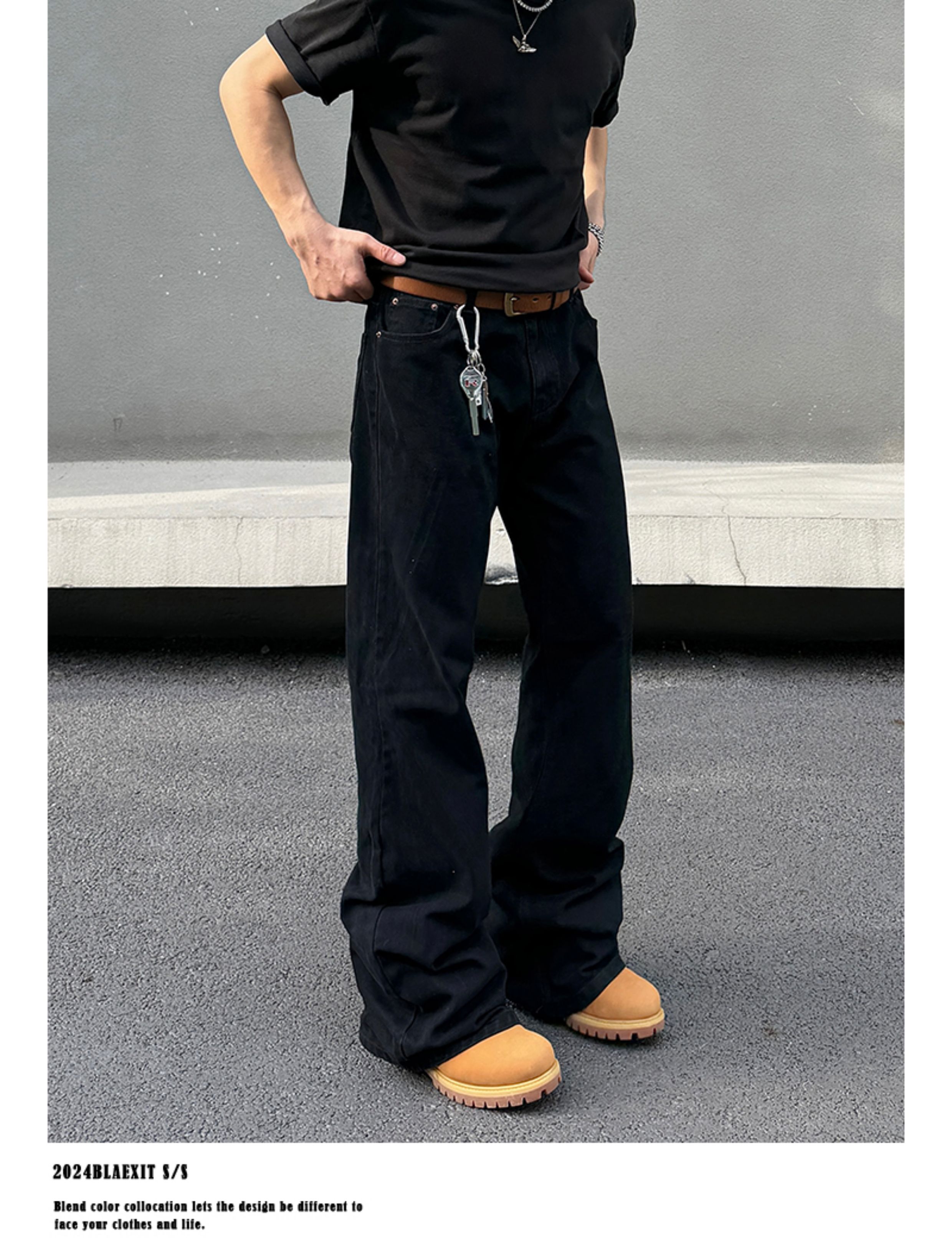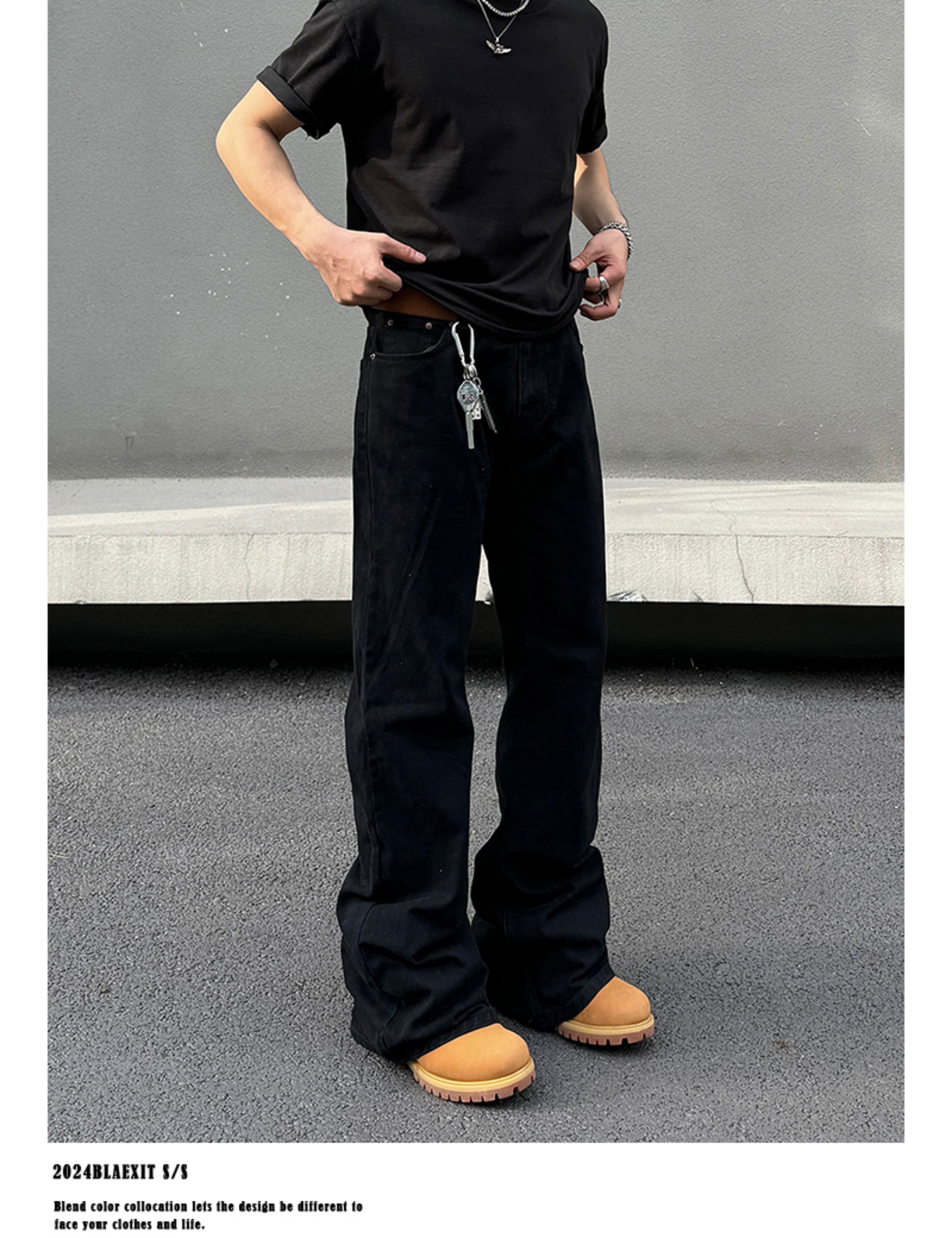 Blaexit Paris Bootcut Black Curved Hem Flared Jeans American Retro Distressed Slimming Straight Pants