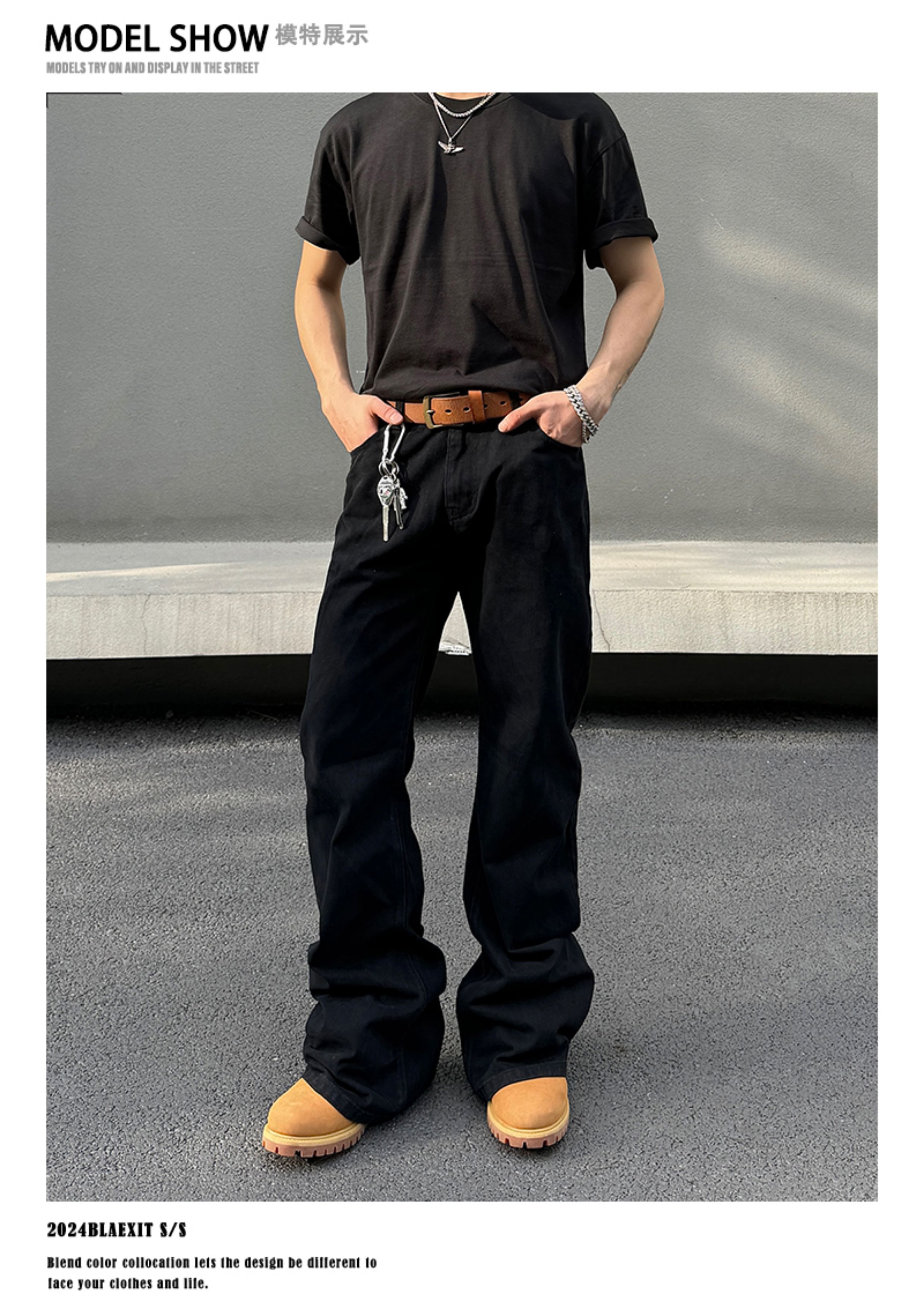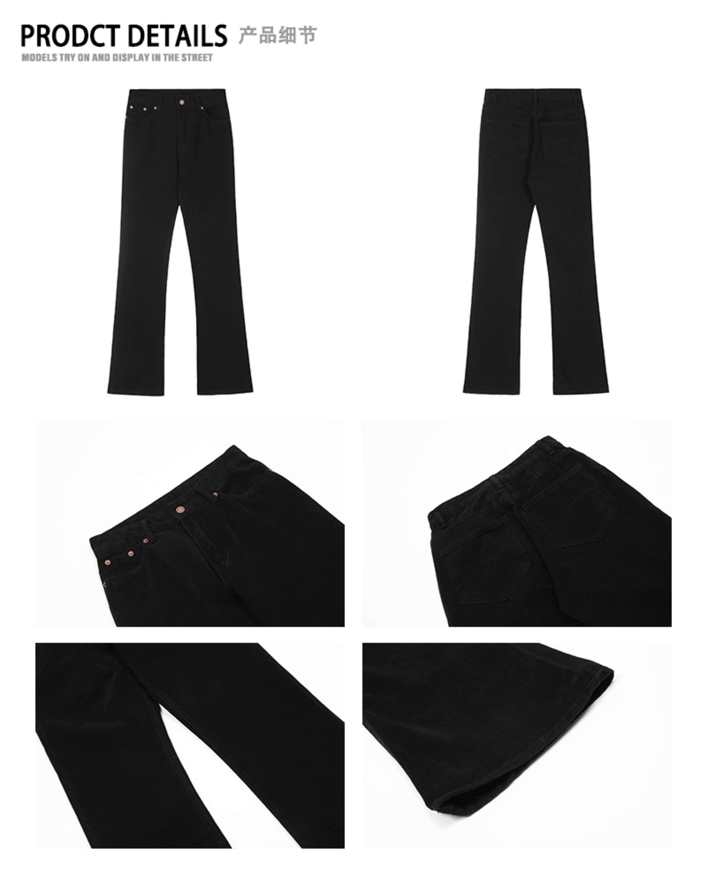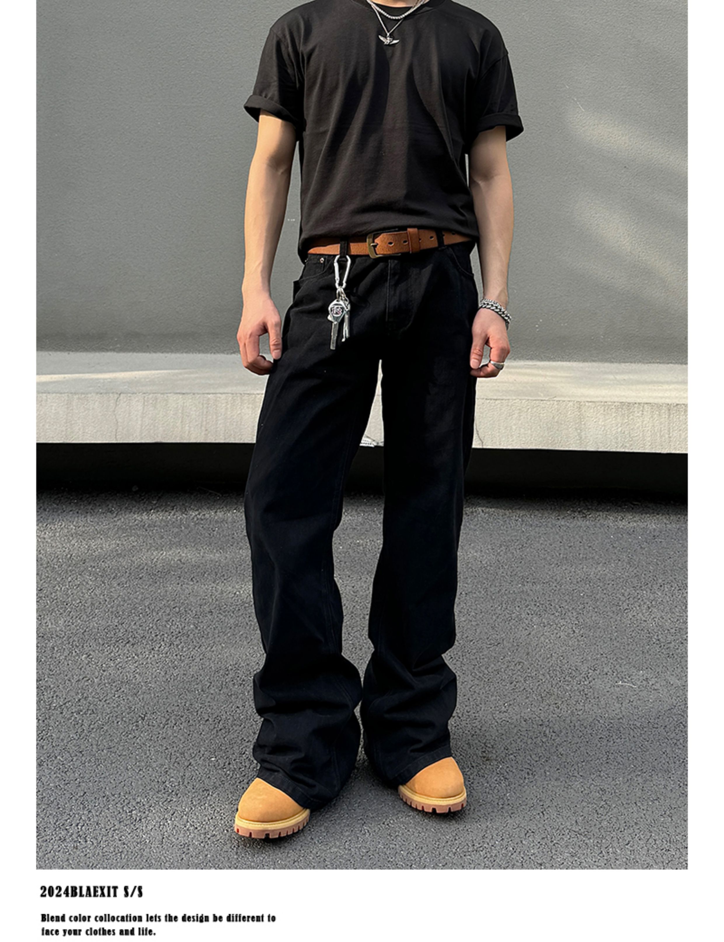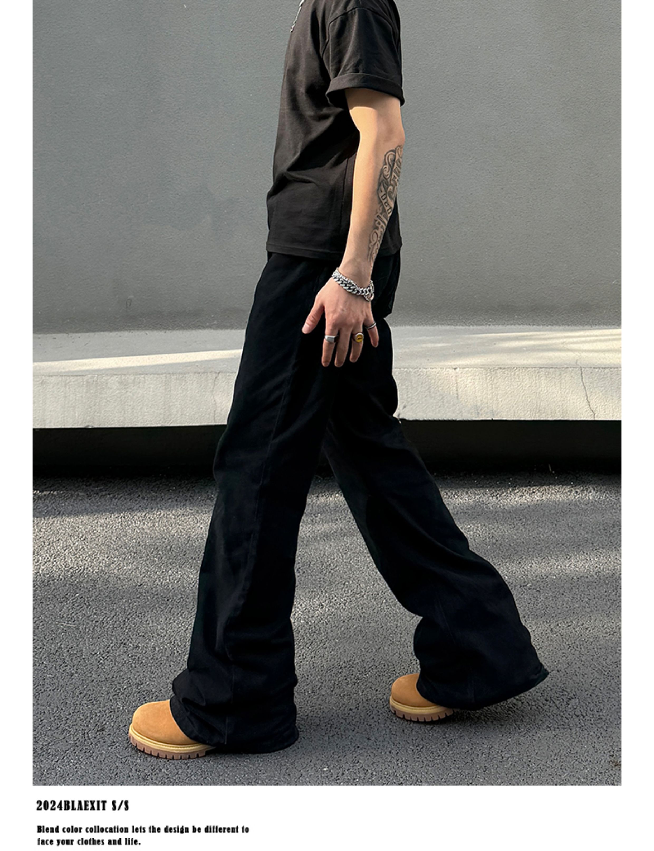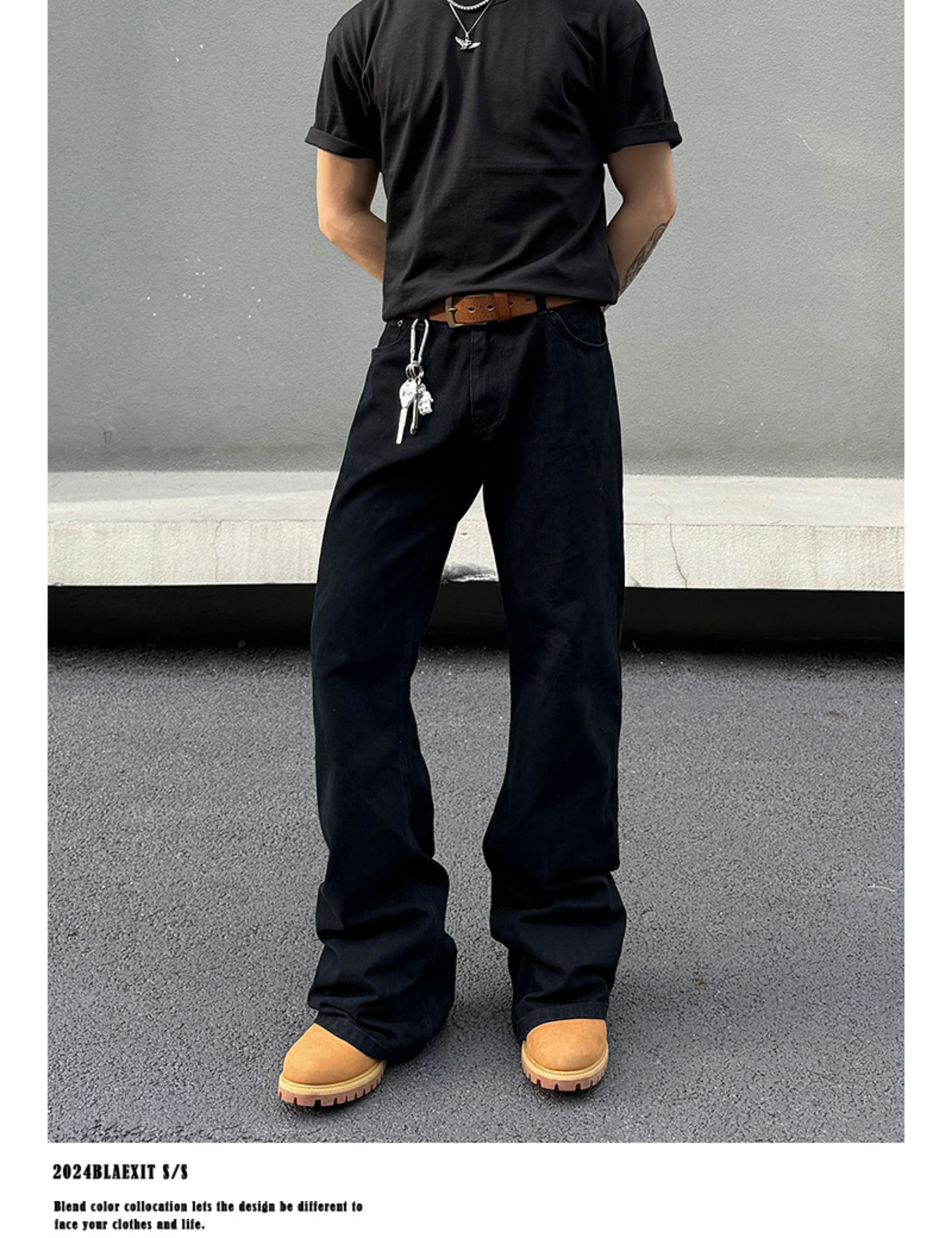 Blaexit Paris Bootcut Black Curved Hem Flared Jeans American Retro Distressed Slimming Straight Pants