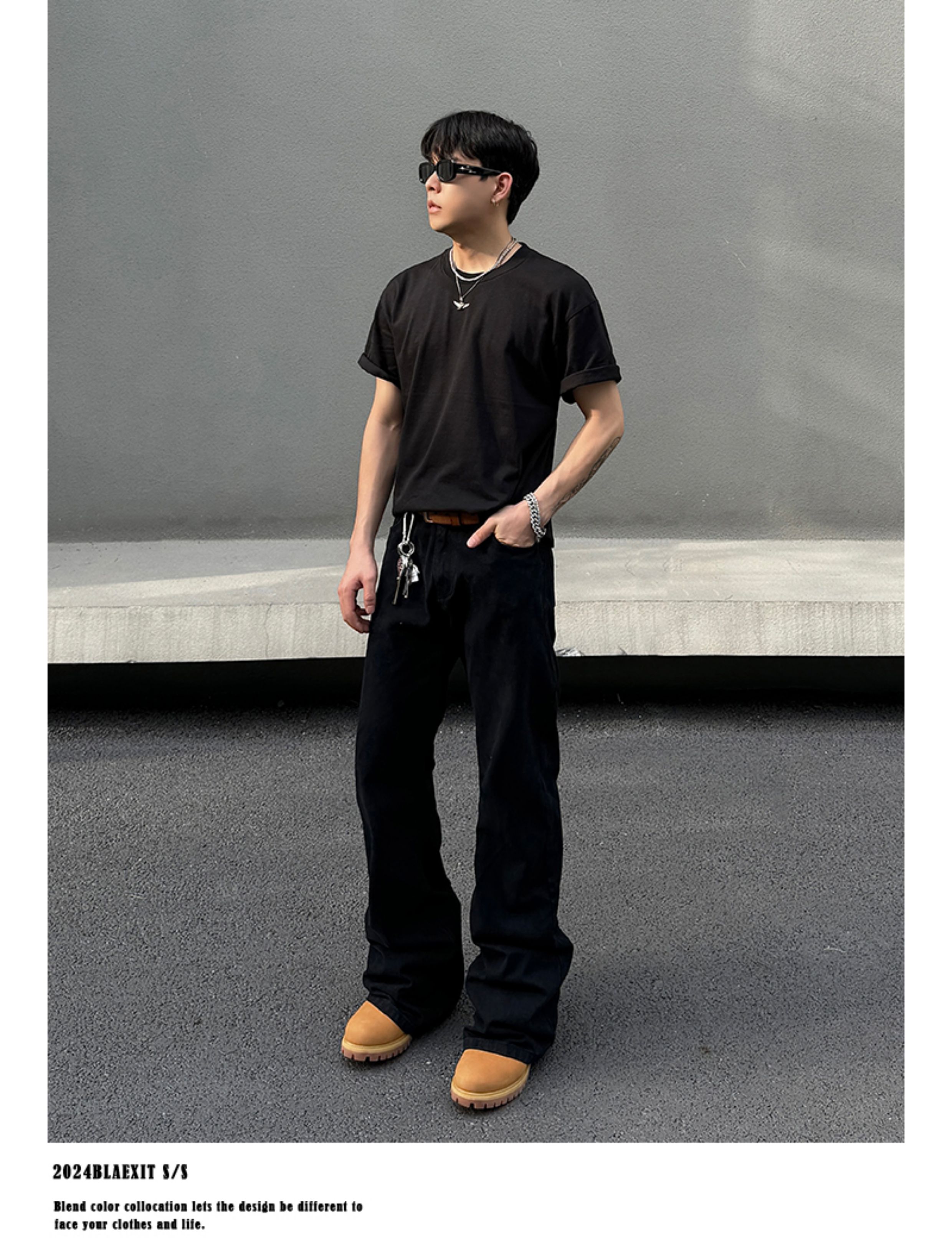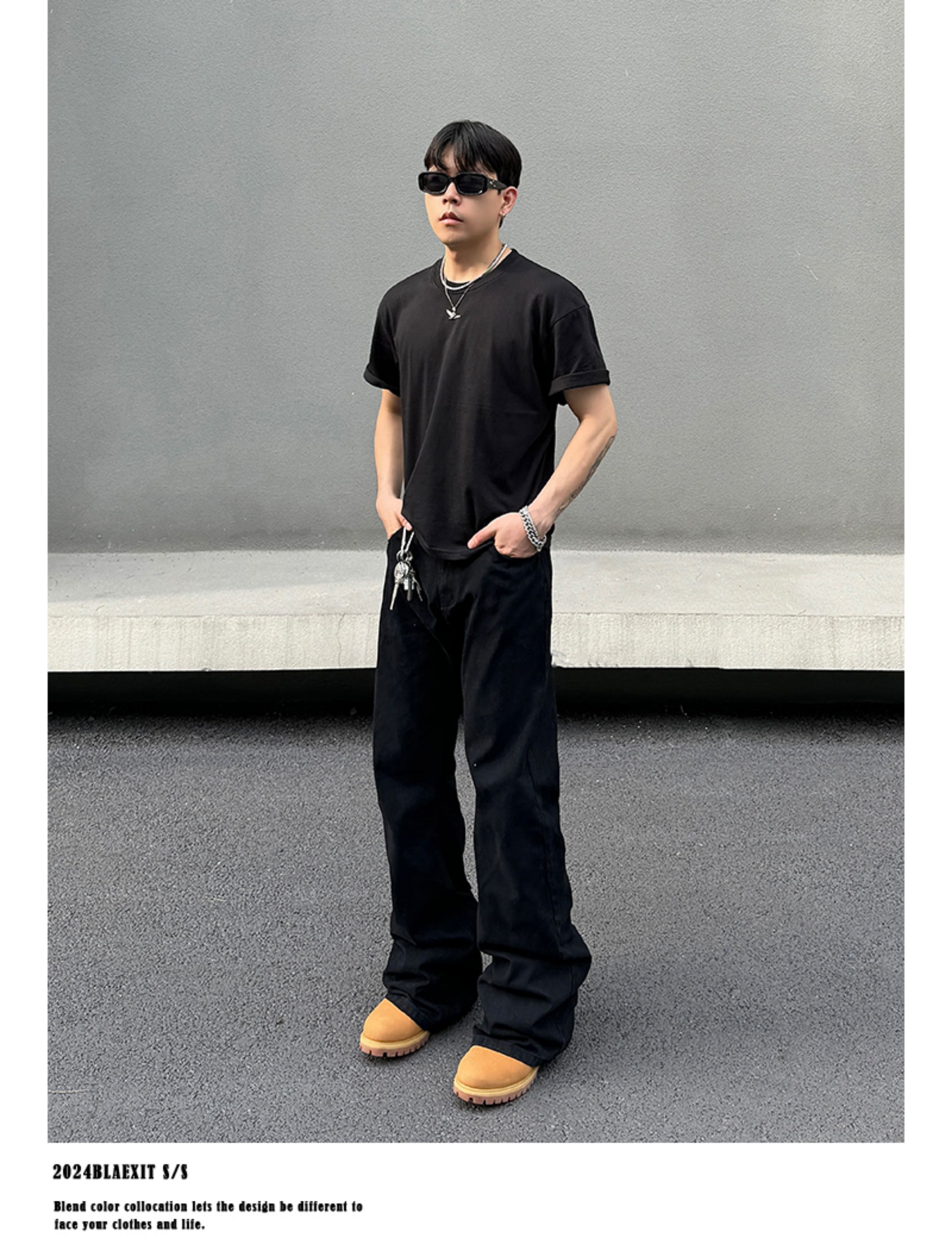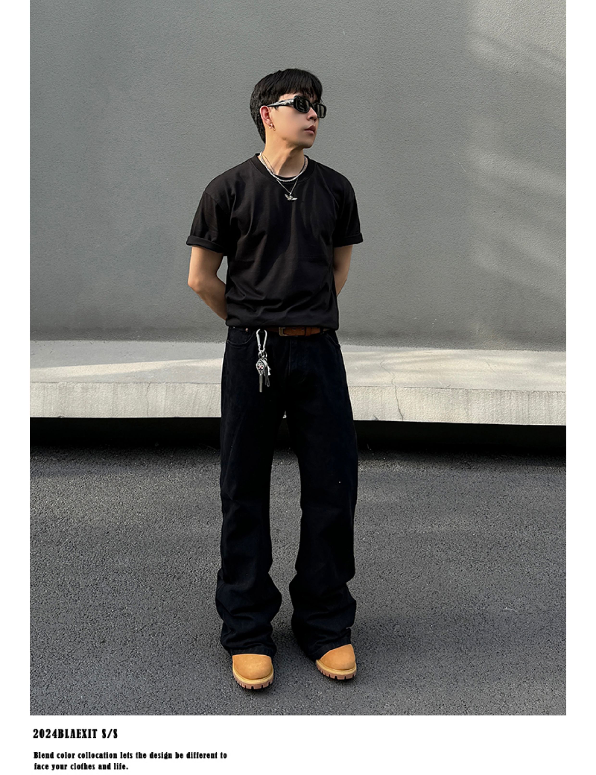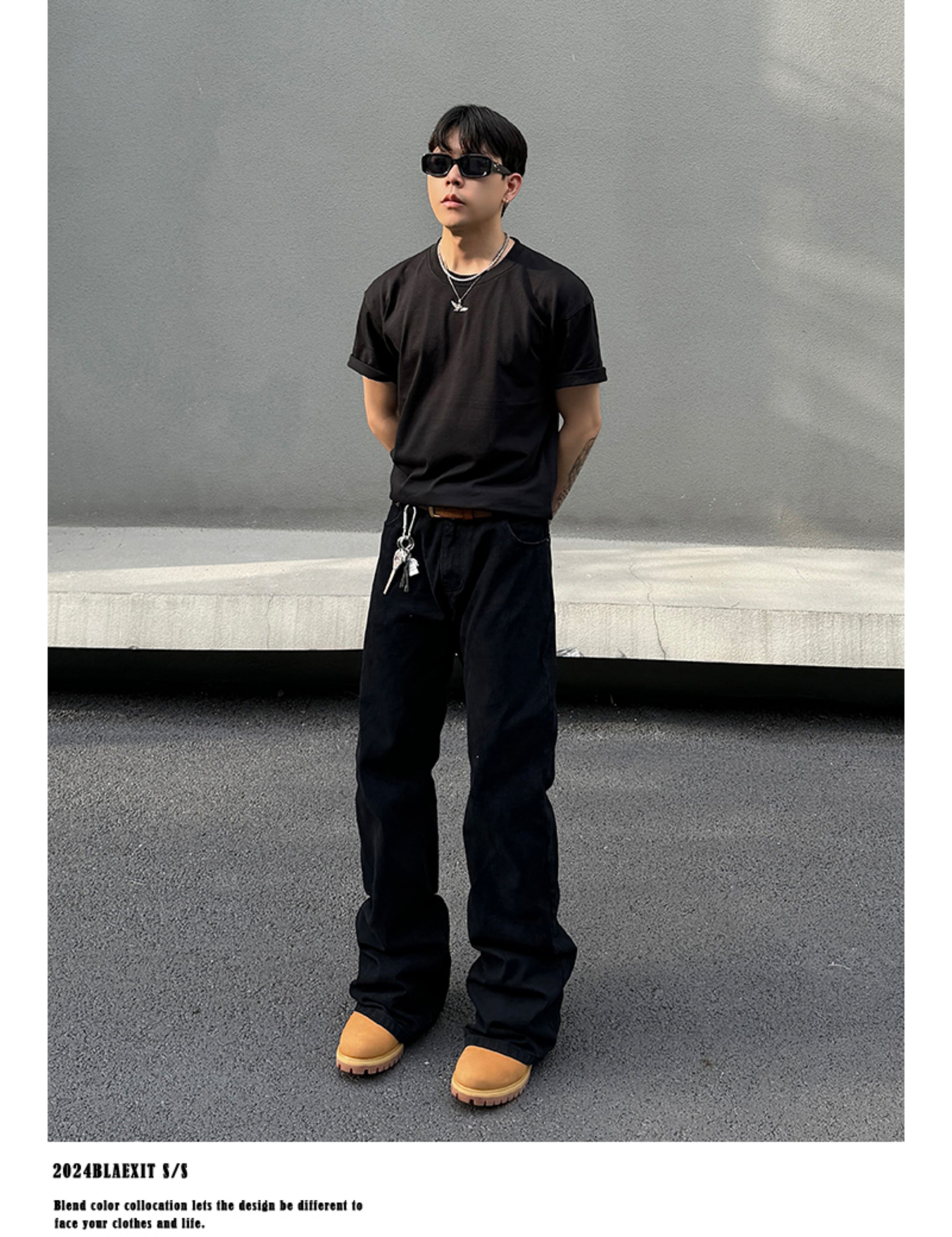 Blaexit Paris Bootcut Black Curved Hem Flared Jeans American Retro Distressed Slimming Straight Pants