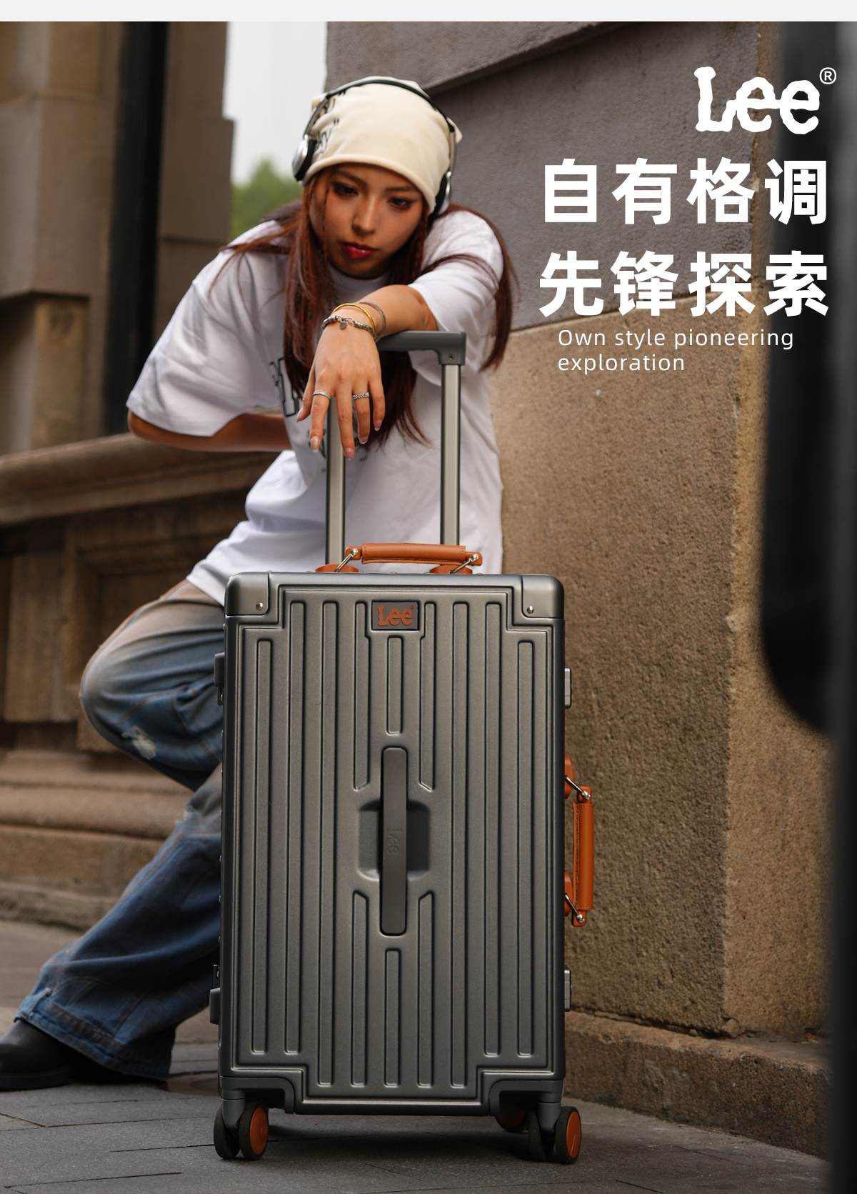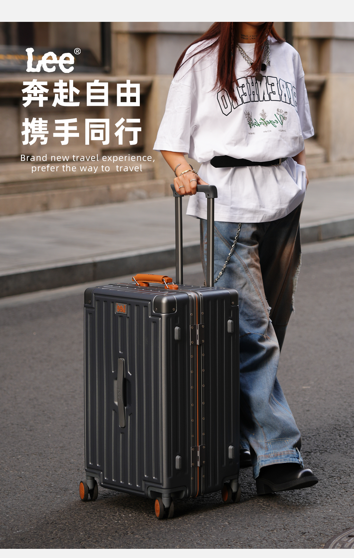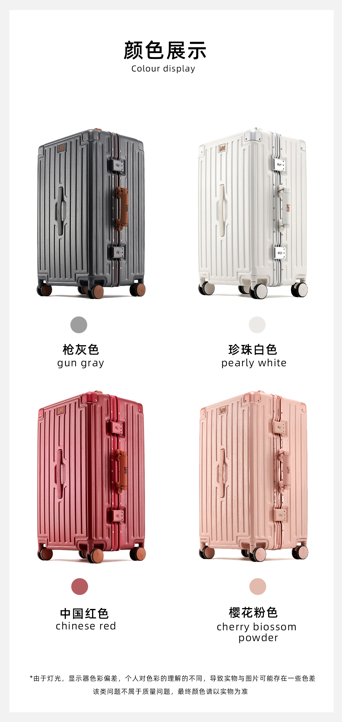 Lee Aluminum Frame Trolley Suitcase, Thickened and Large Capacity, 24inch Travel Password Box, 2025 New Model Carry-On Suitcase for Men and Women