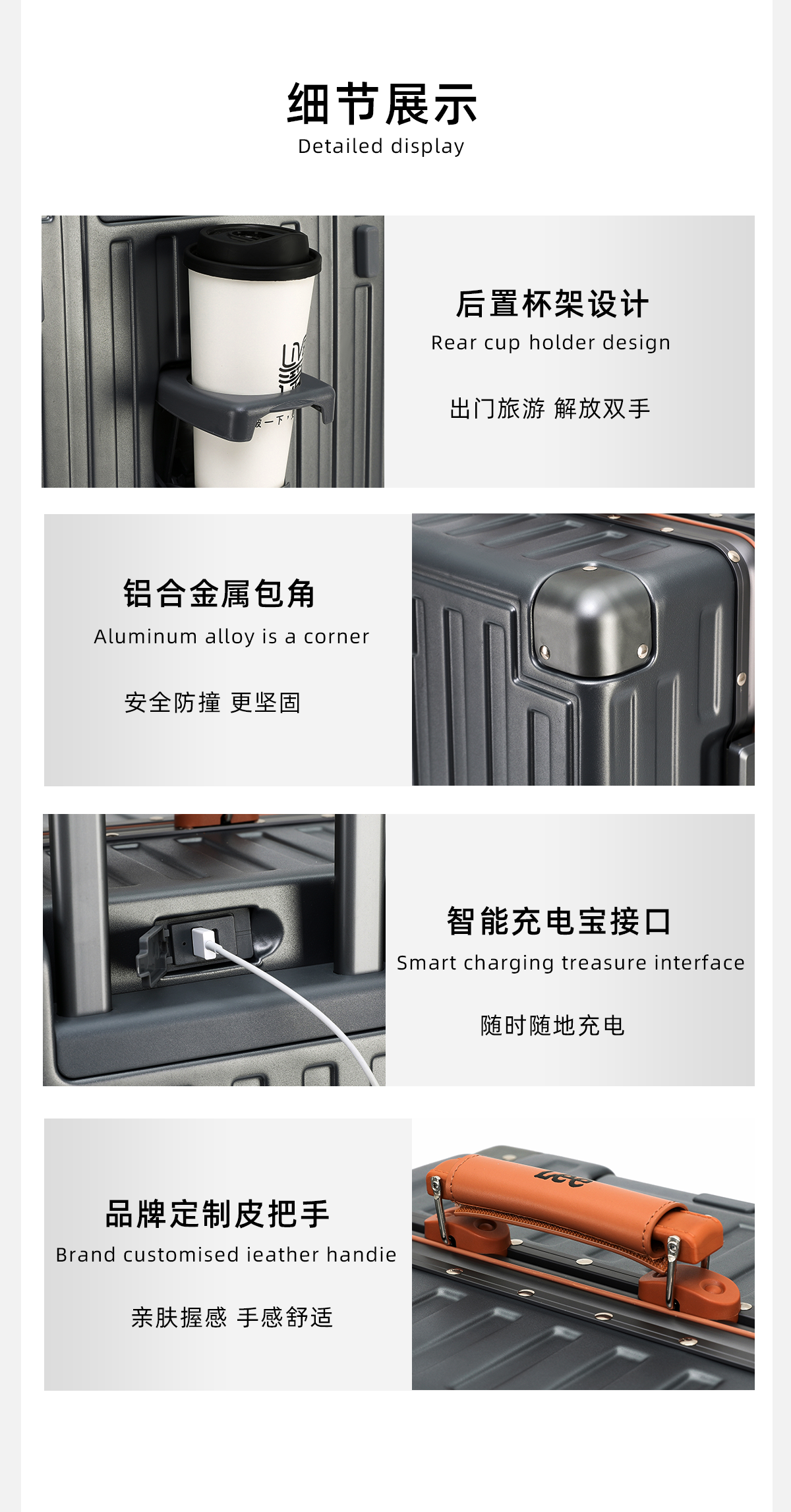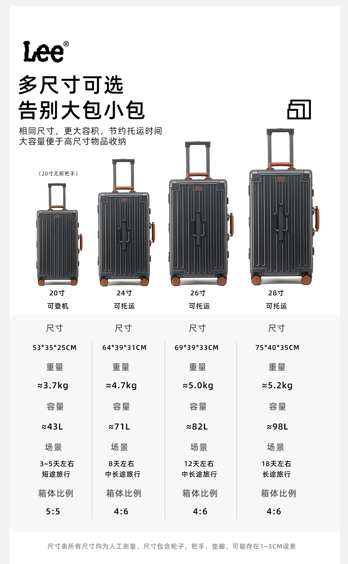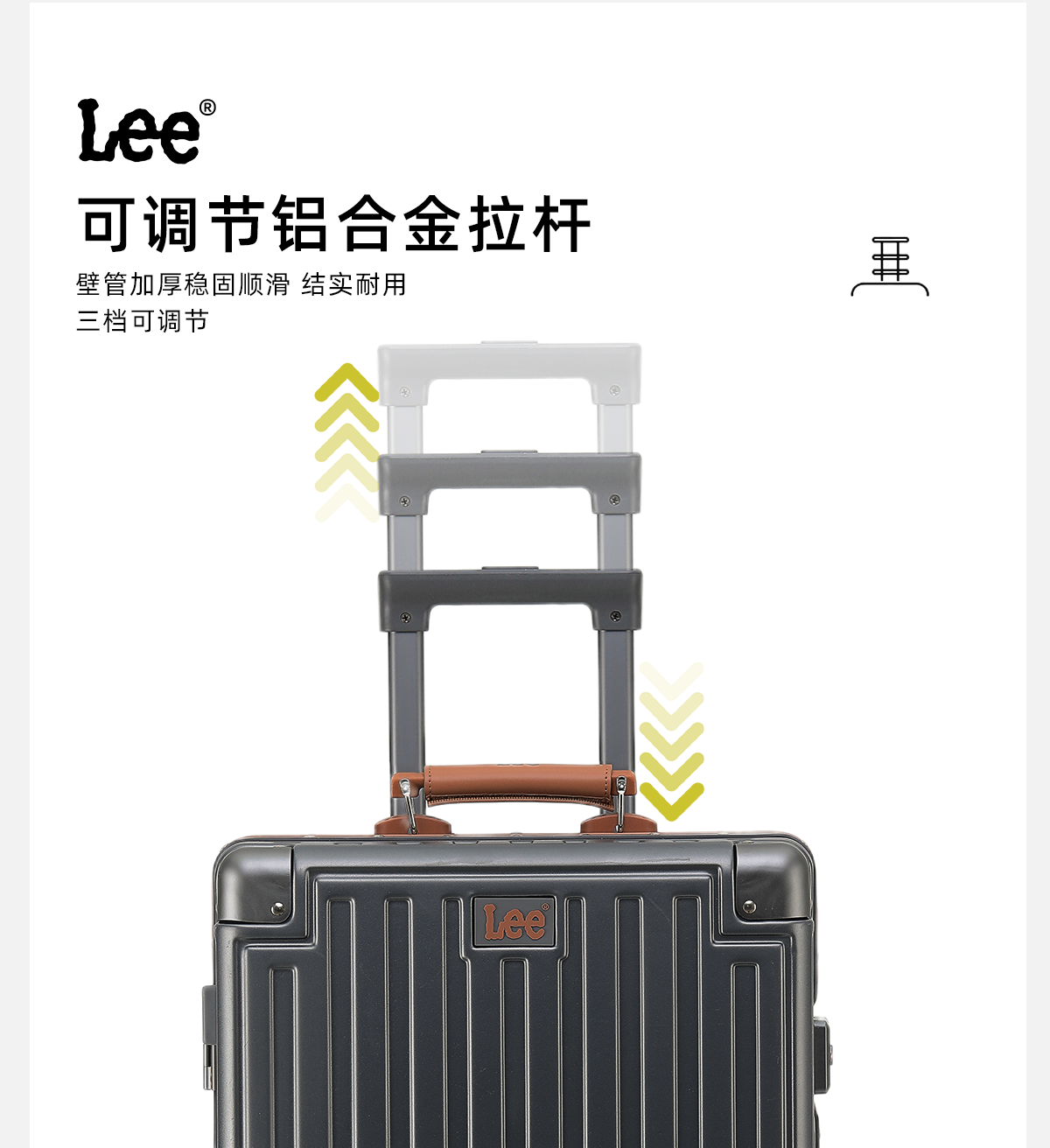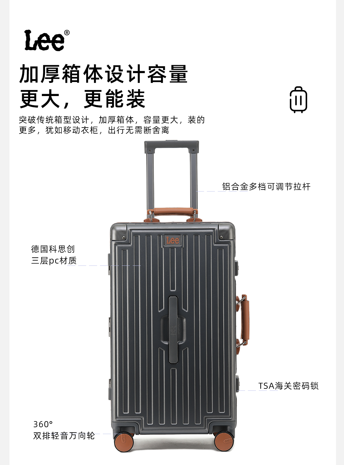 Lee Aluminum Frame Trolley Suitcase, Thickened and Large Capacity, 24inch Travel Password Box, 2025 New Model Carry-On Suitcase for Men and Women
