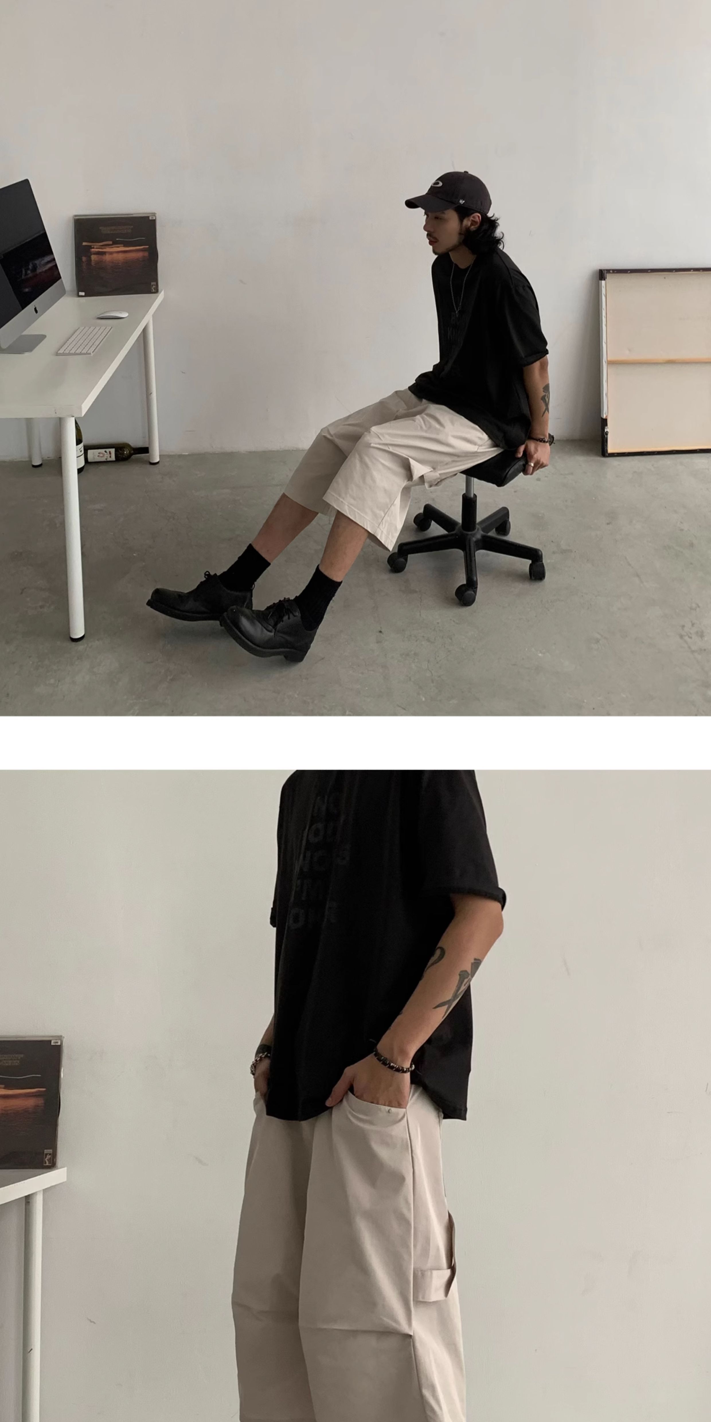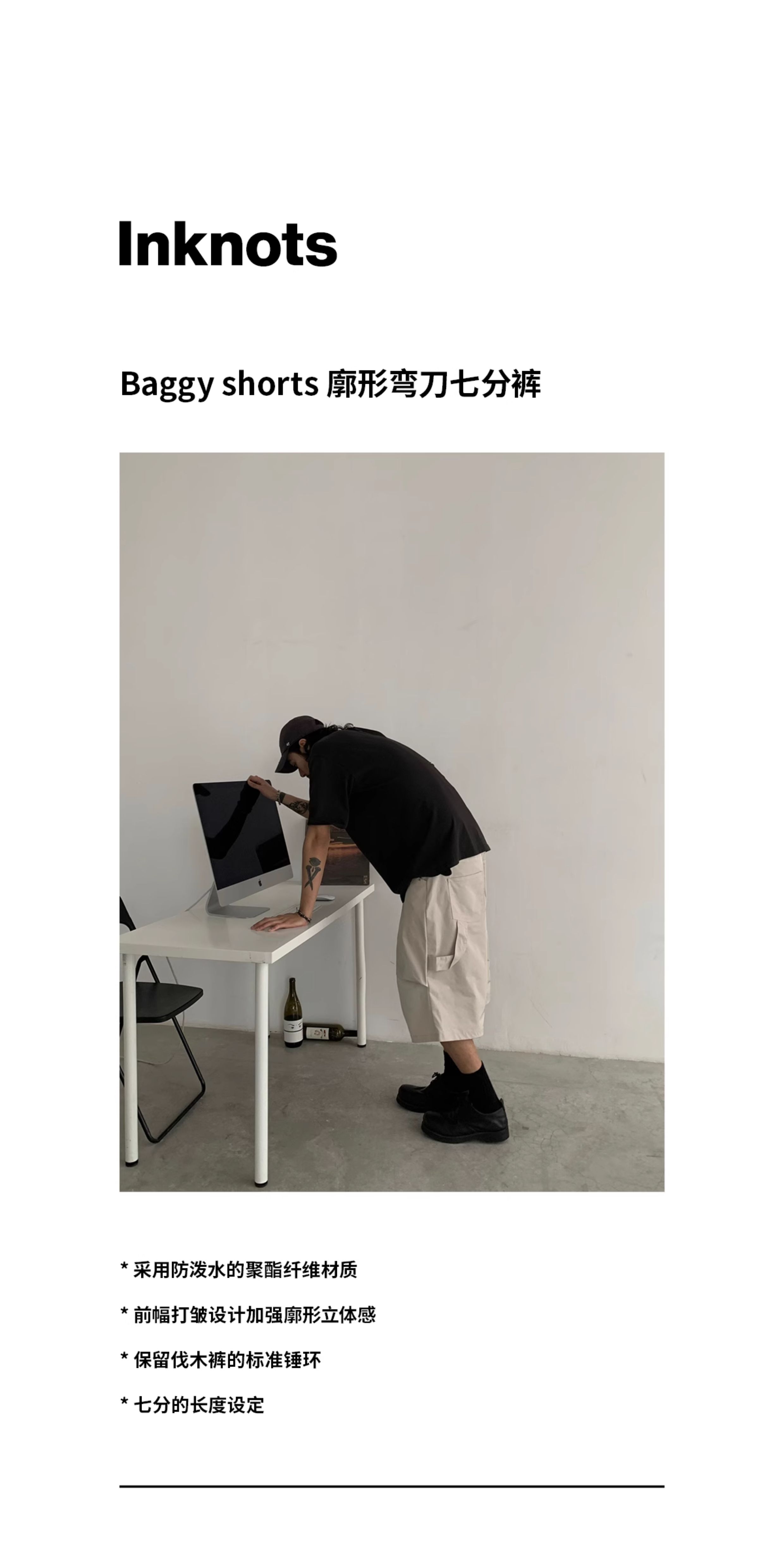 Inknots American Retro Three-Dimensional Design Silhouette Scimitar Cropped Pants Unisex Loose Lumberjack Work Shorts