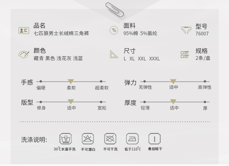 Septwolves Men's Underwear Pure Cotton Breathable Men's Briefs Xinjiang Long-Staple Cotton Men's Elastic Underpants Summer Men's