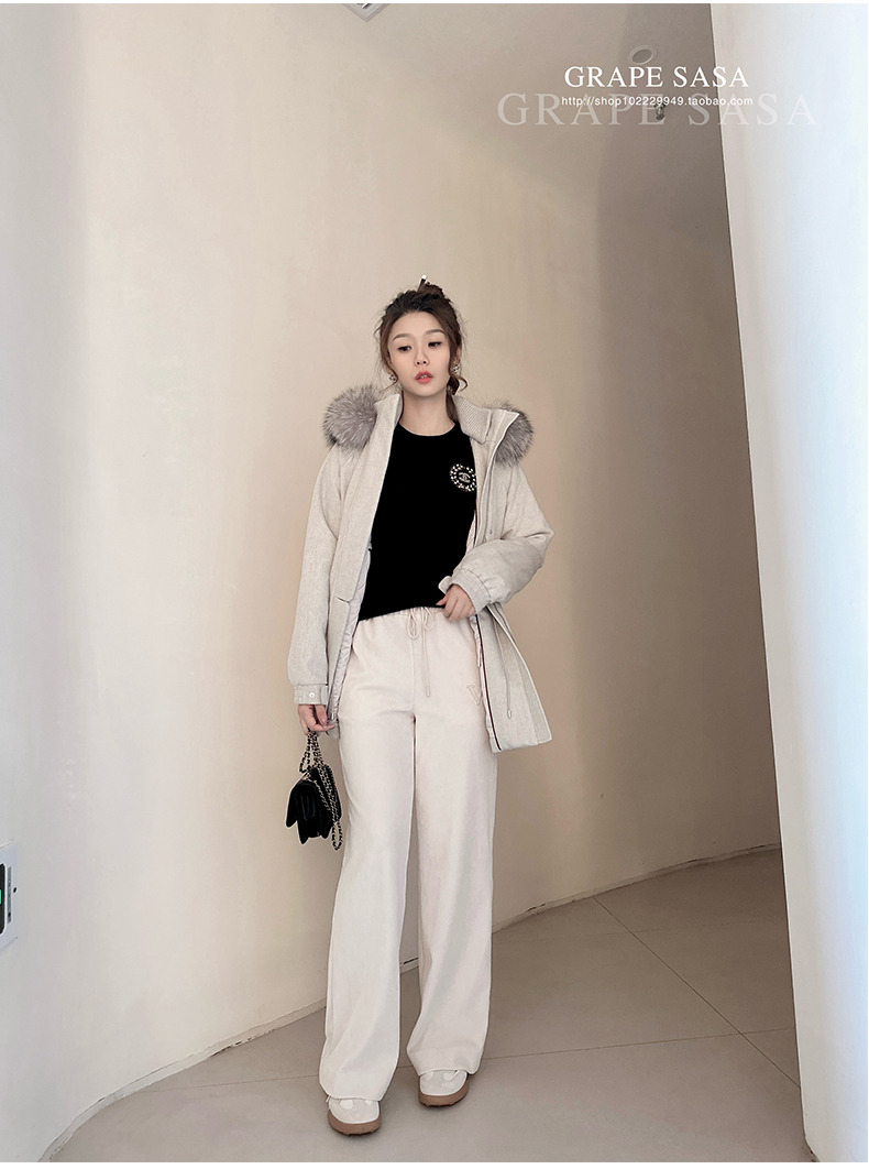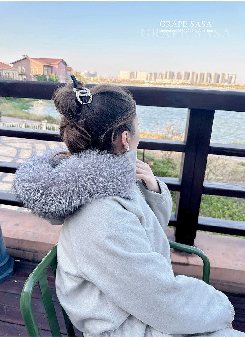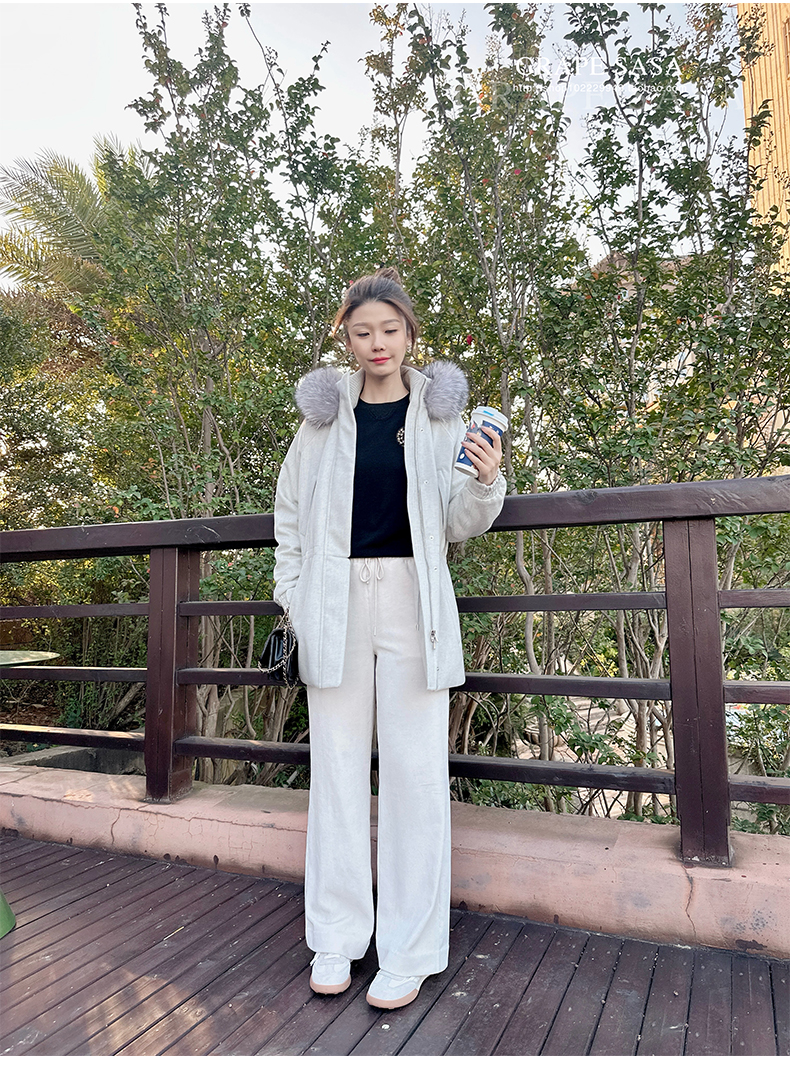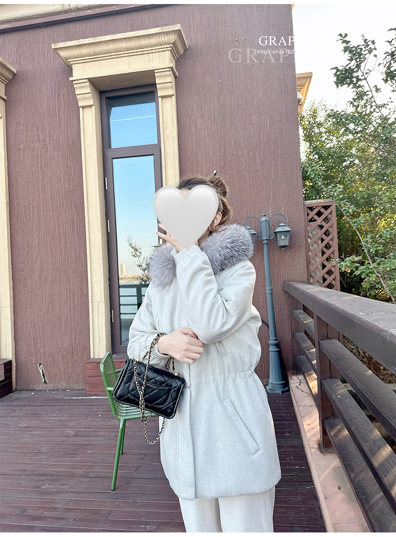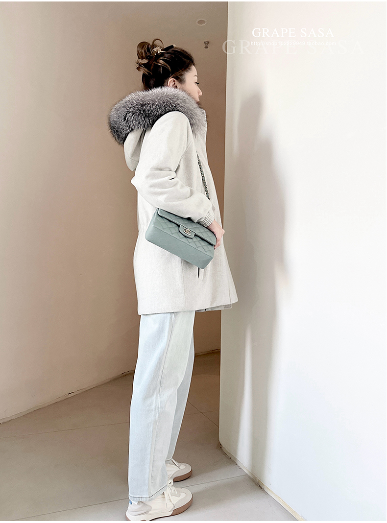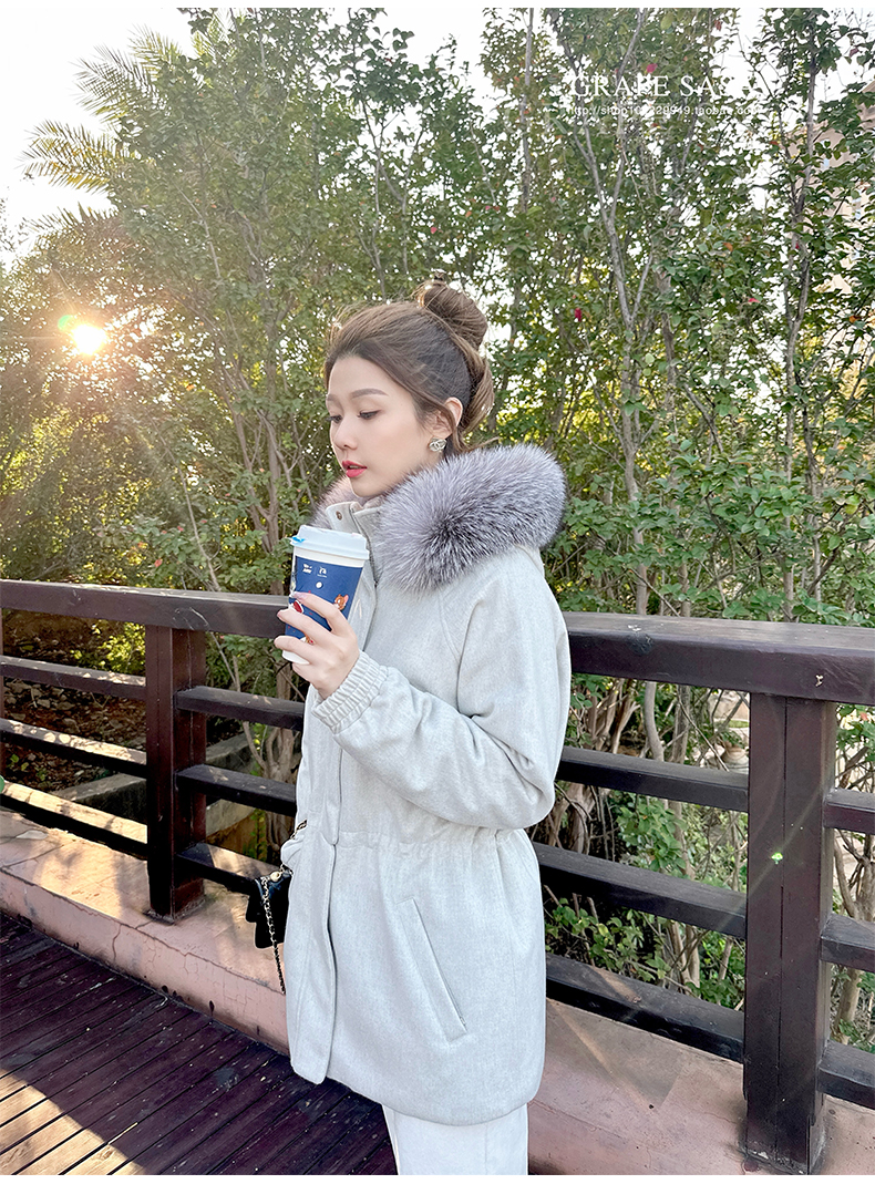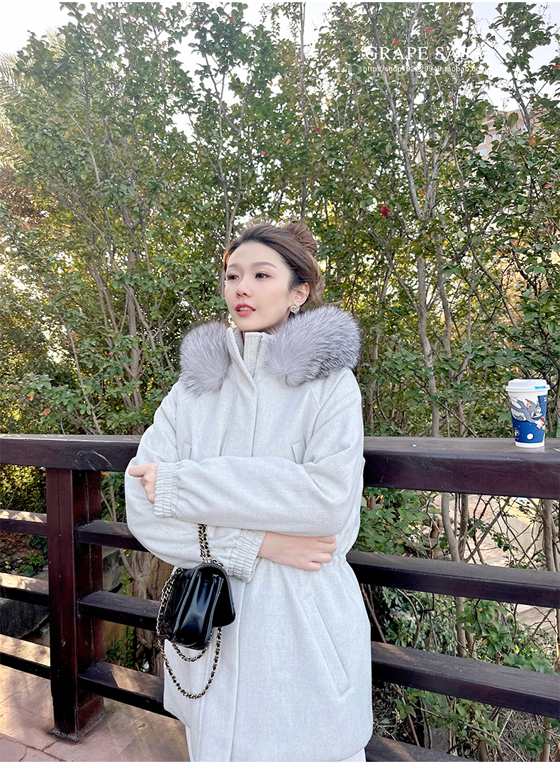 Lp的Icery面料是100%山羊绒(也很耗料)领口针织也是100%山羊绒、帽子又是银蓝狐狸毛。