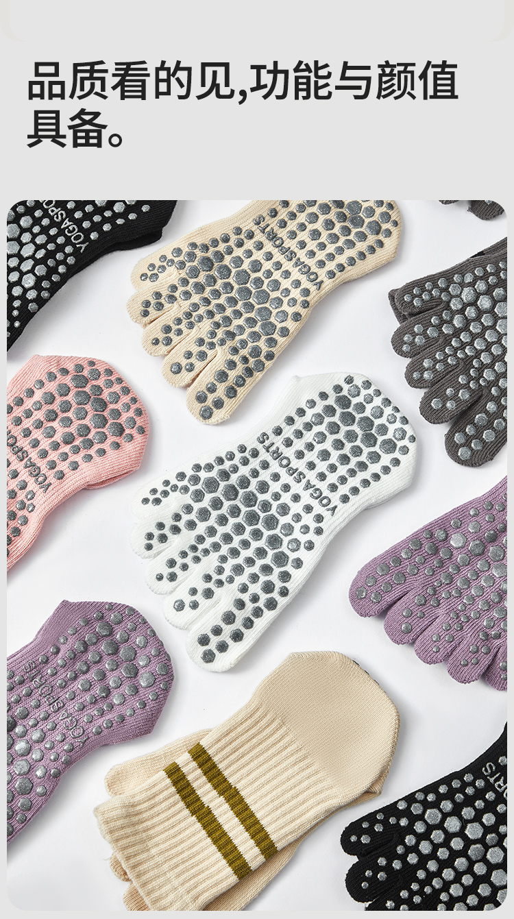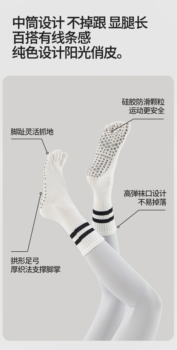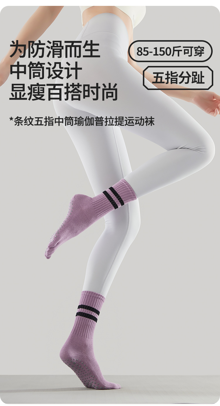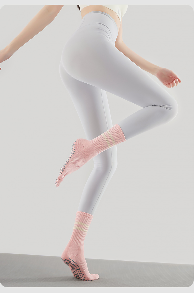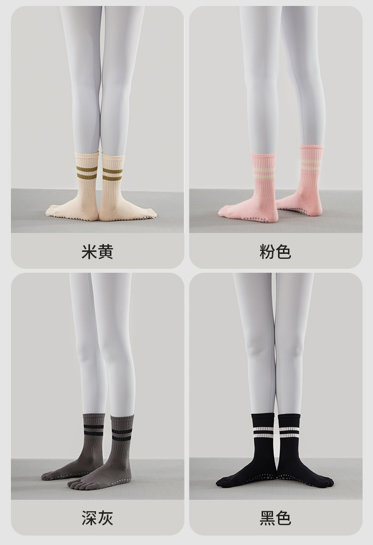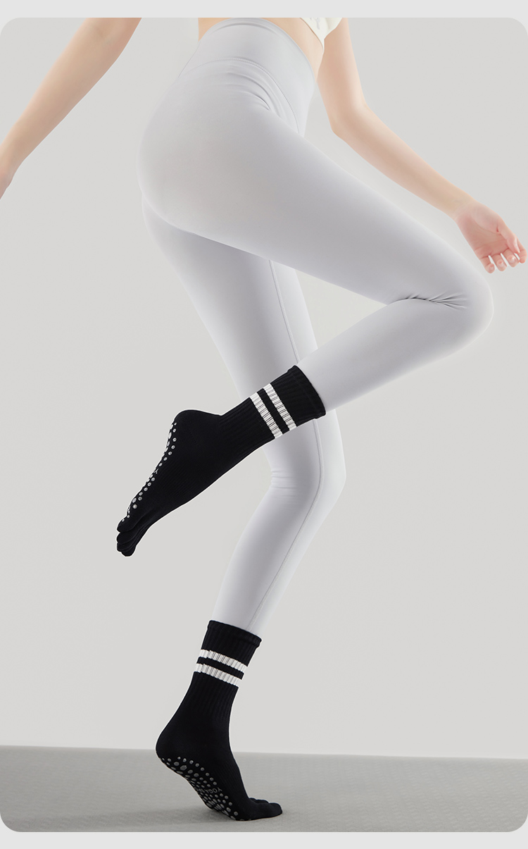 Autumn and Winter Yoga Socks, Non-Slip, Professional Women's Pilates-Specific Socks, Mid-Length, Indoor Sports Fitness Training, Split-Toe