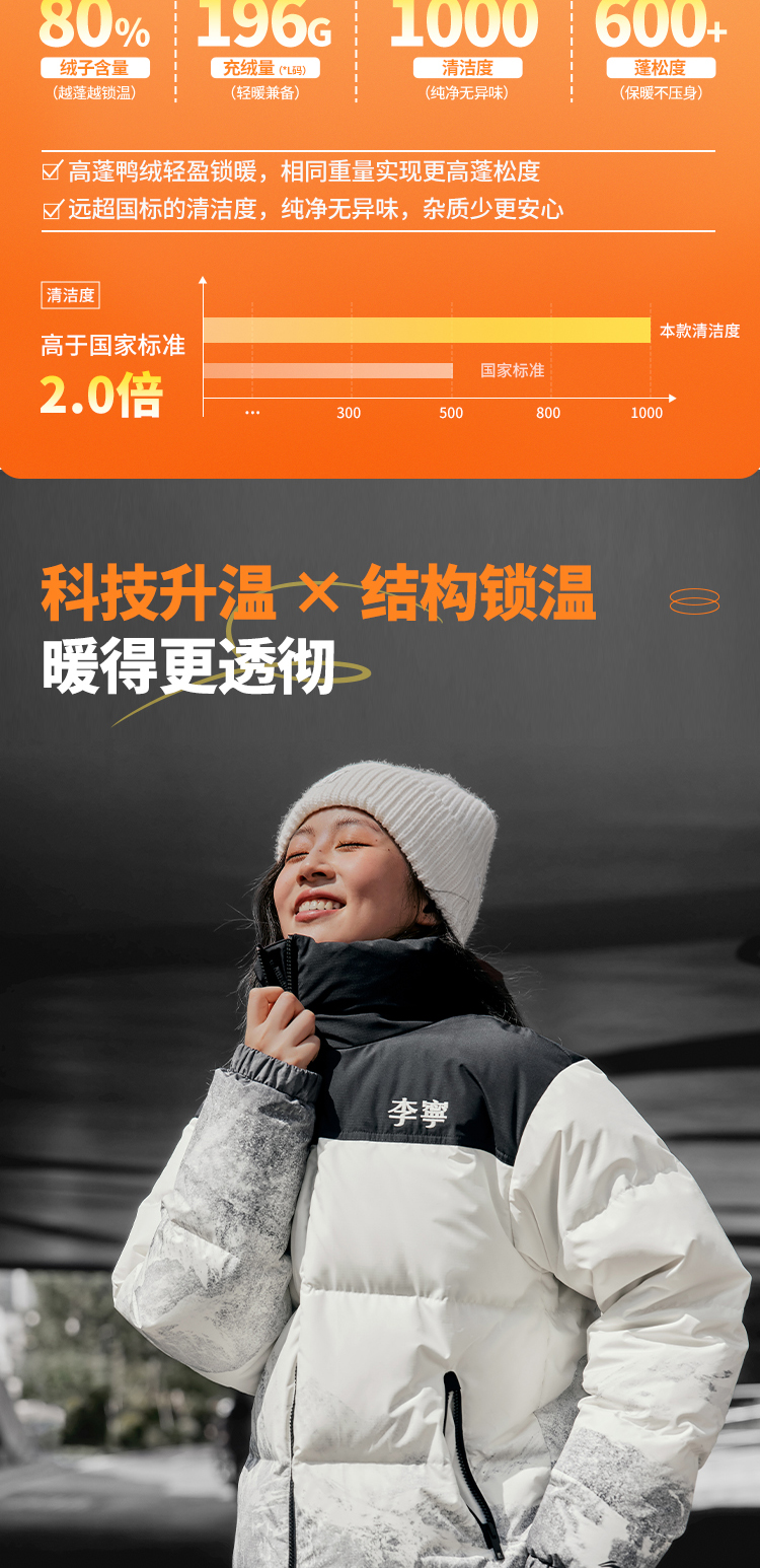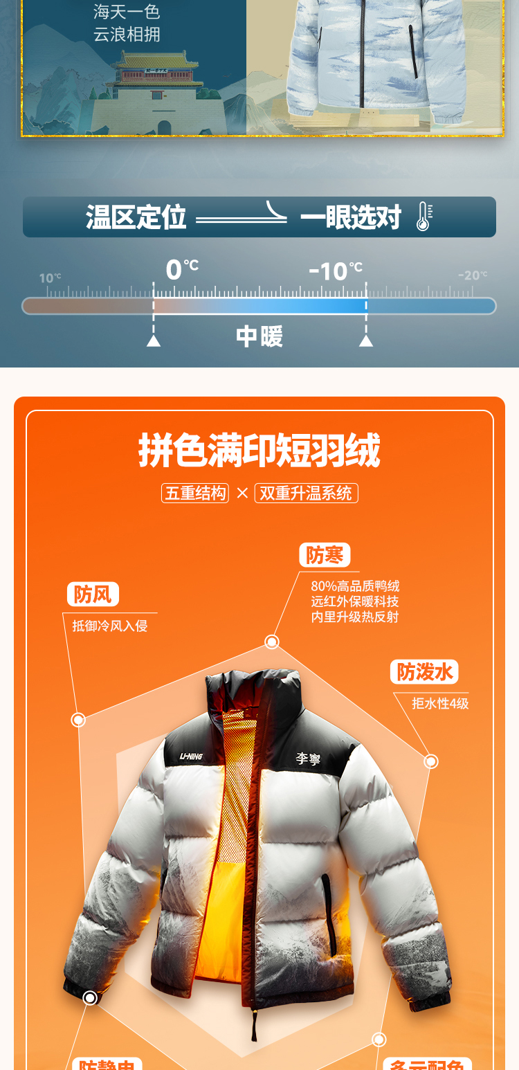 Li-Ning Hot Pot down Jacket | Water-Repellent, Anti-Static, Warm Winter Short down Jacket for Men and Women, Couple's Four-Proof down Jacket