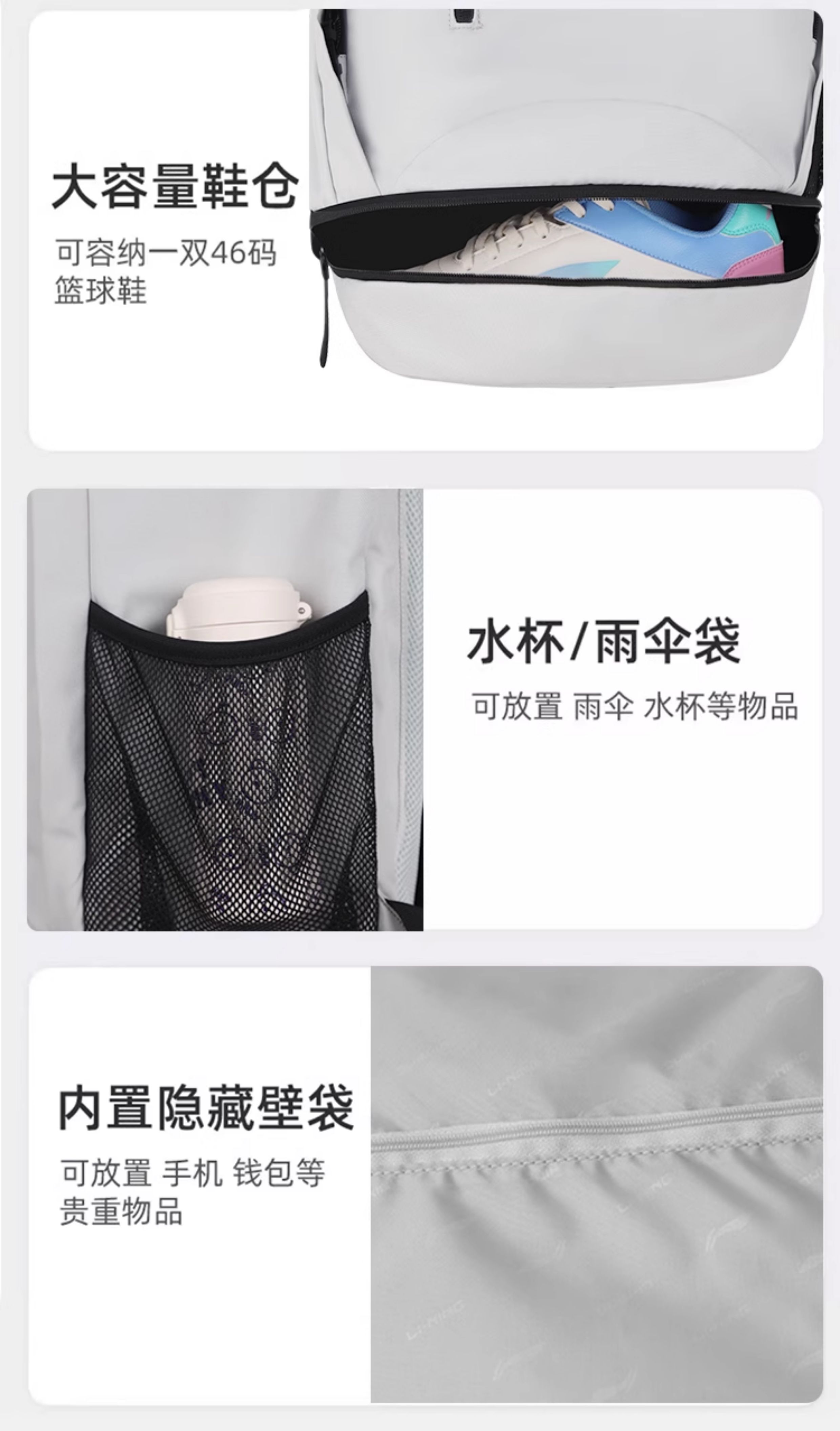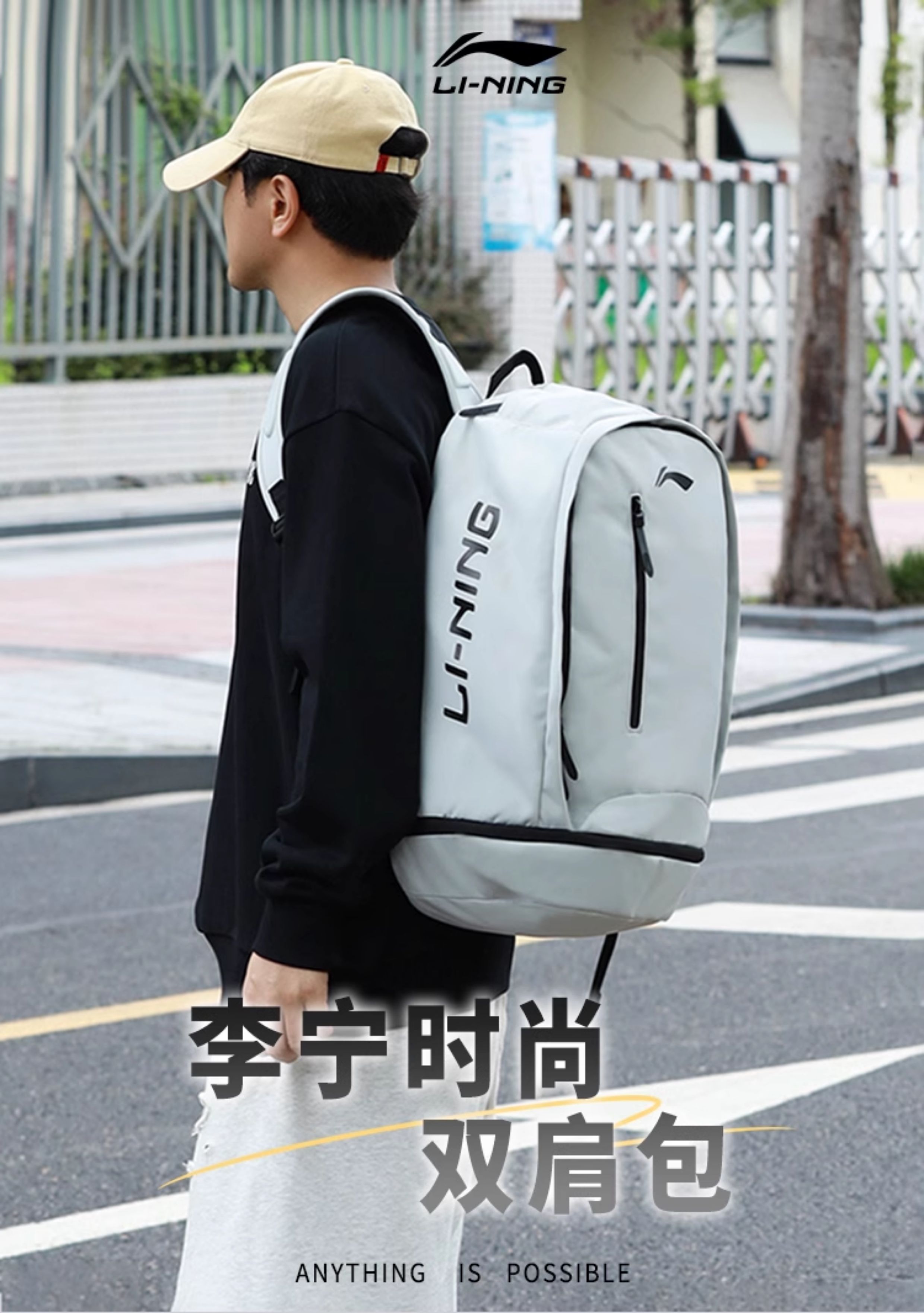 Li Ning Backpack Large Capacity School Bag for Men, Suitable for Junior High, High School, and College Students, Outdoor Basketball Sports, Travel, and Laptop Backpack