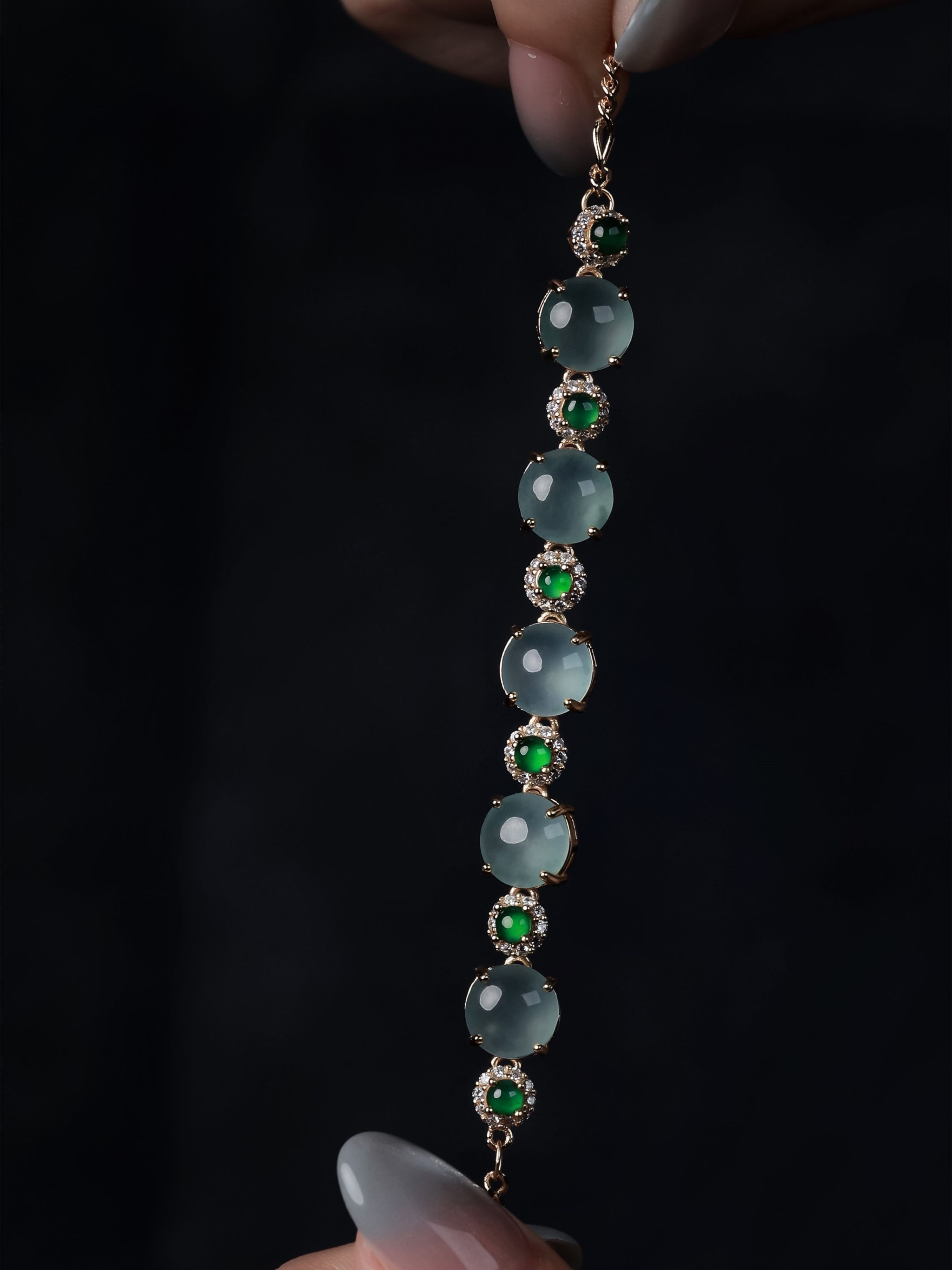 Tianxi [Luoshen Fu] New Chinese Style Natural Jade Bracelet Ice Type High Transparency Round Beads Blue Jade Bracelet Pure Silver