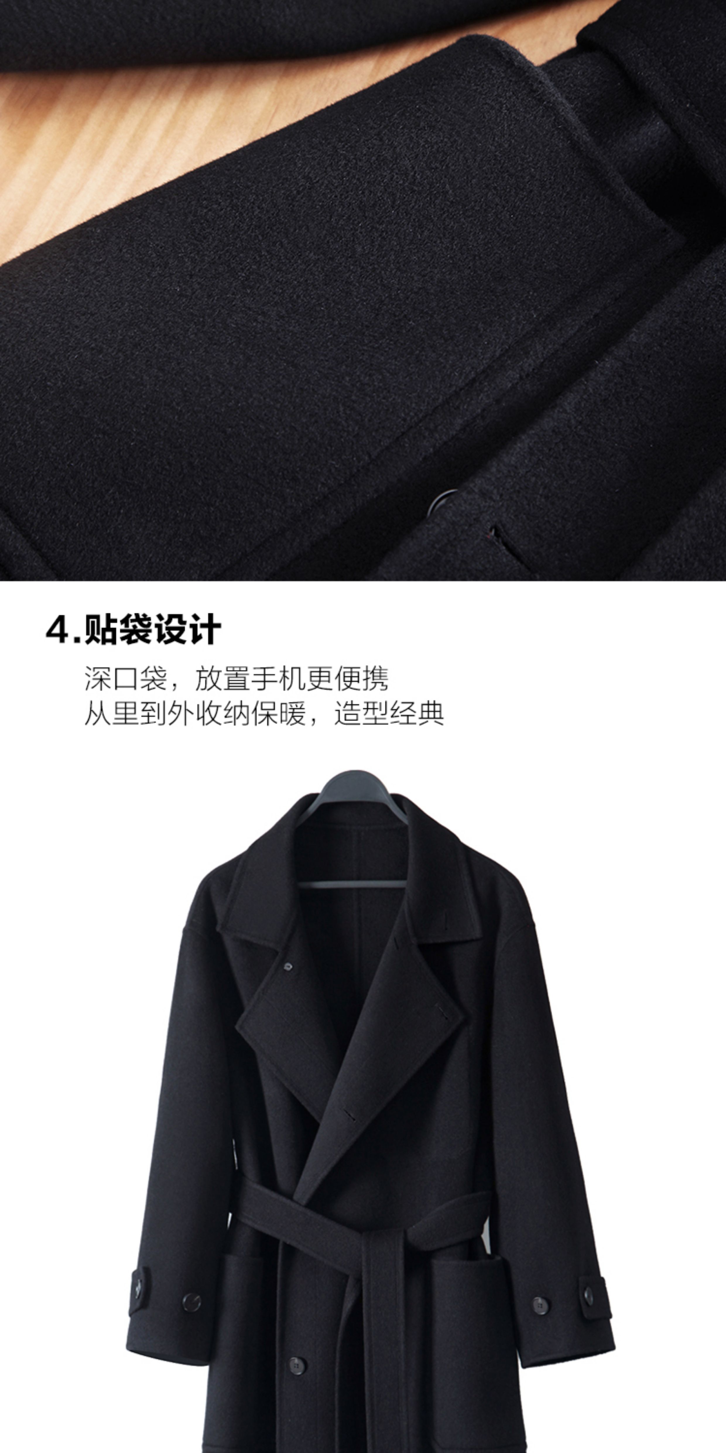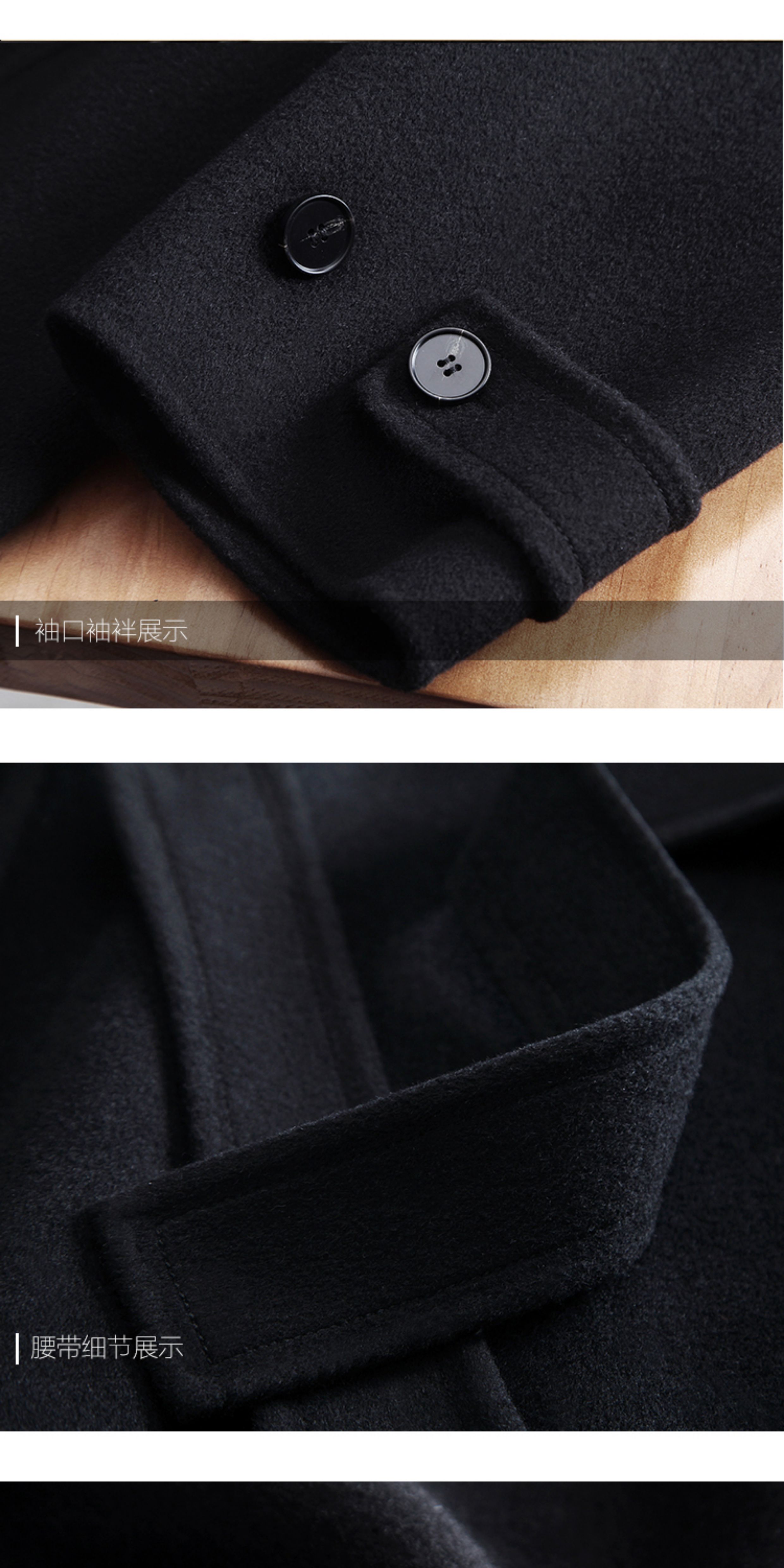 Stand Collar, Diagonal Placket, Long Double-Sided Cashmere Coat for Men, with Belt, Woolen Fabric, Extra Large Size, Plus Size, Loose Fit Jacket