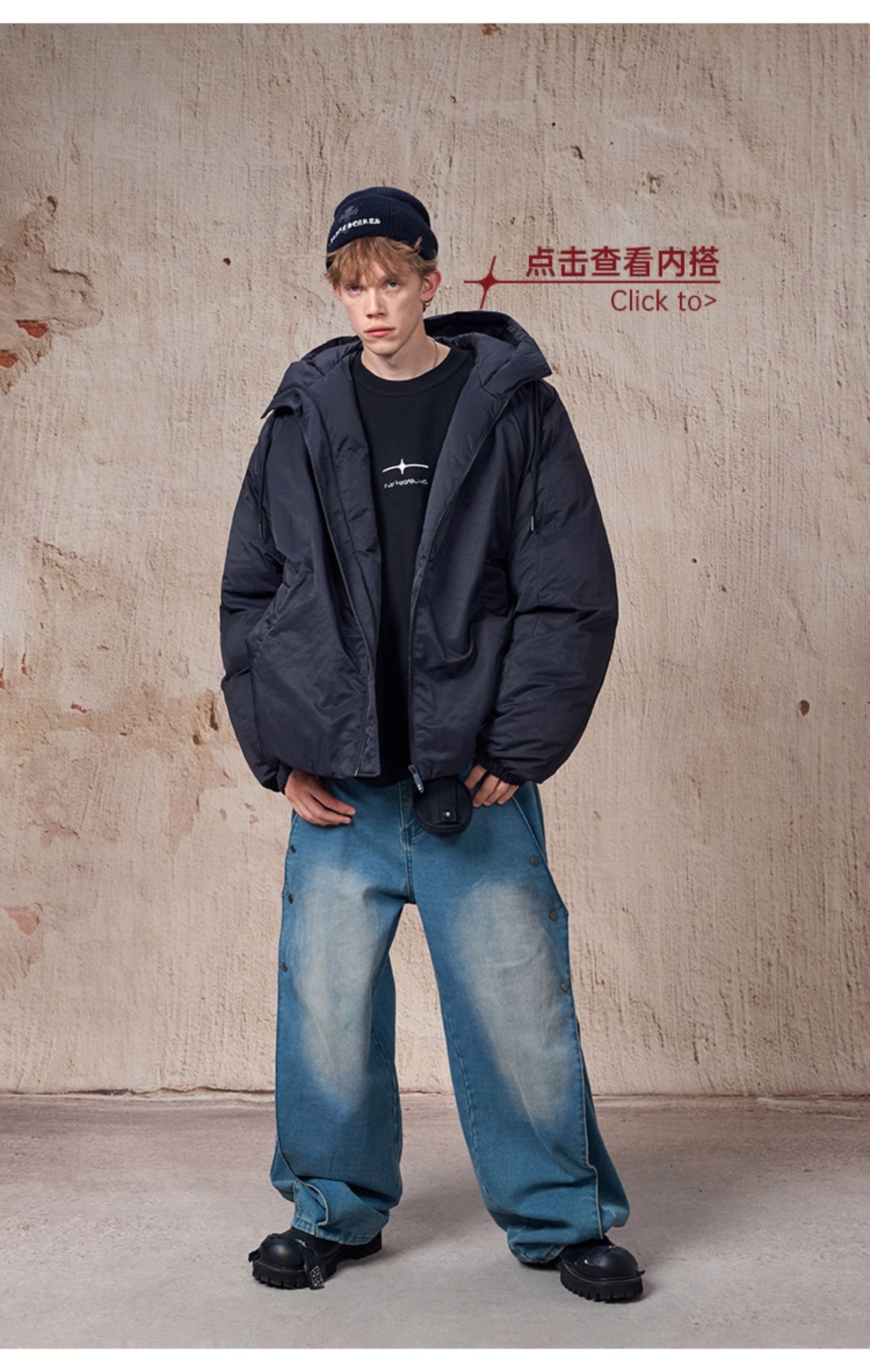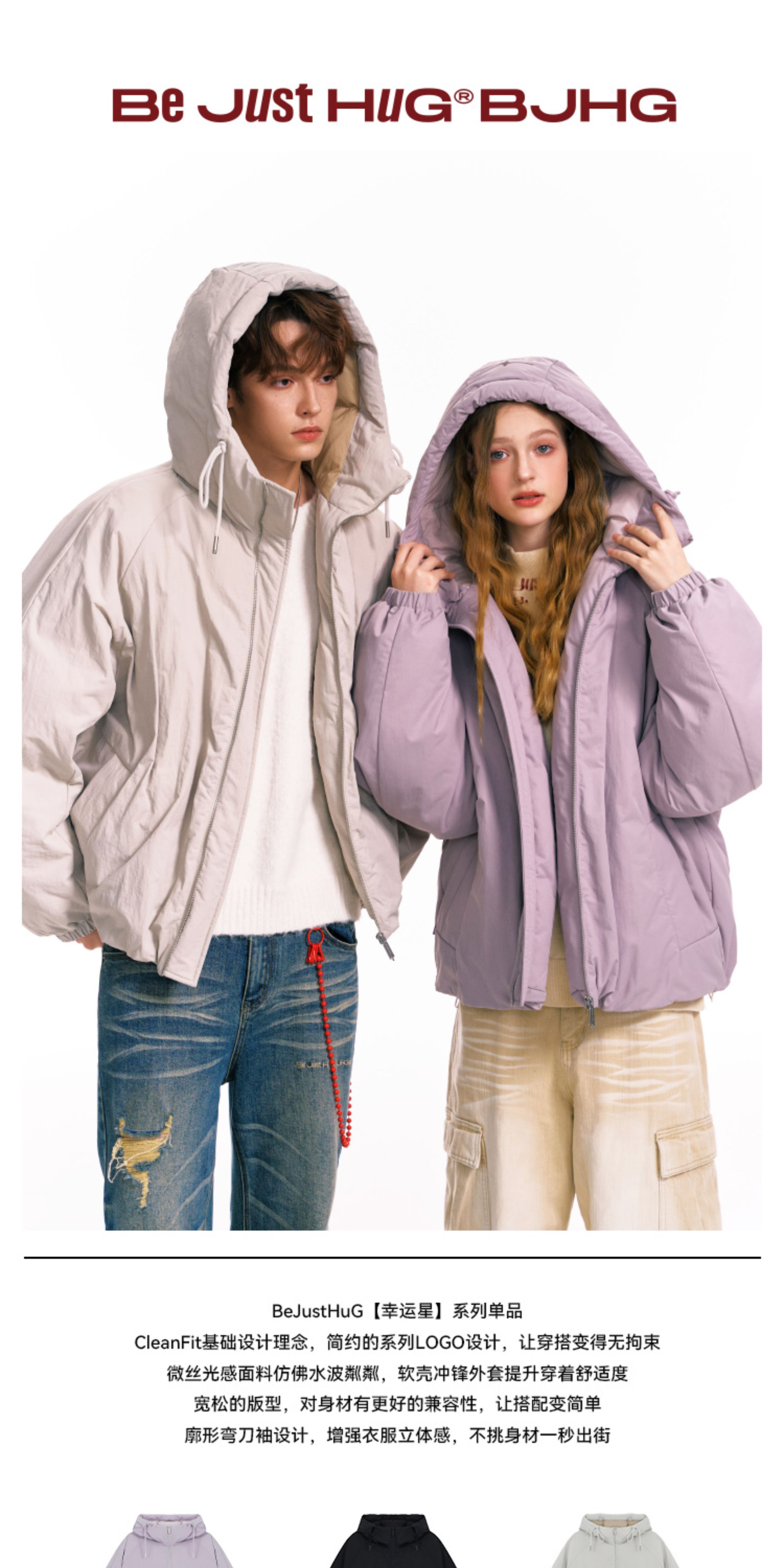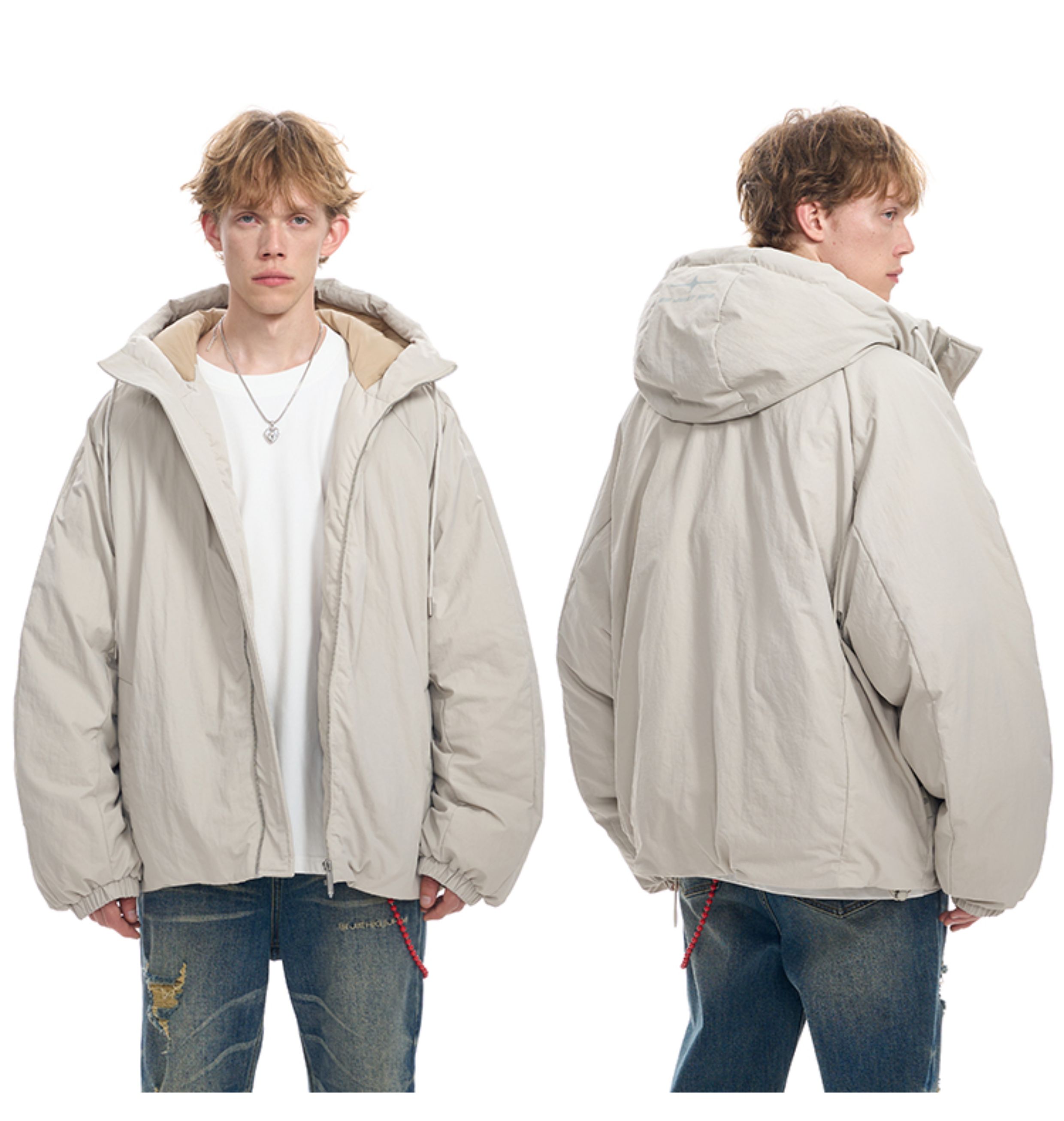 Bjhg Reckless Minimalist High-End Gray Cotton Jacket for Men and Women, Winter Coat, Cotton-Padded Jacket, Cold-Proof, Thickened Winter Clothing, Cotton Coat